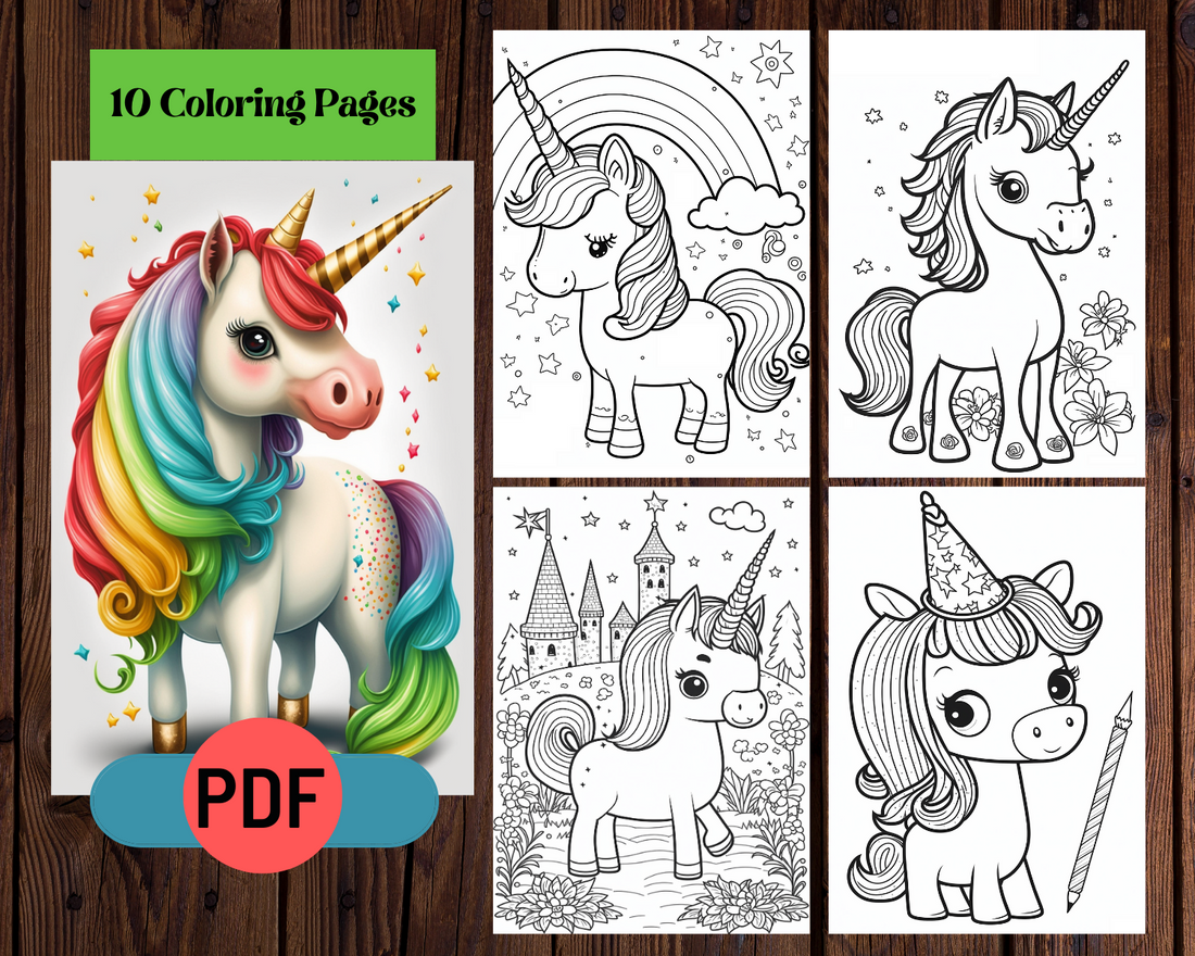 Unicorn Printable Coloring Pages For Kids, Kids Coloring Book, Instant Download
