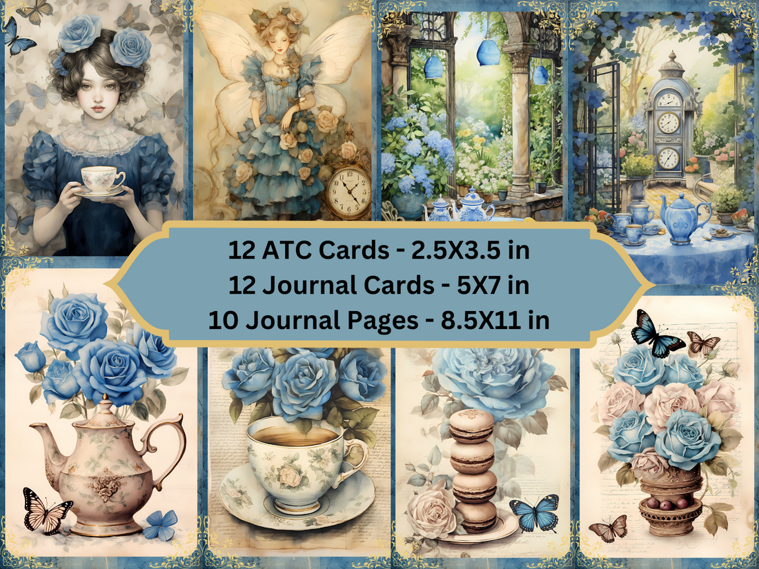 My Teatime Party- Printable Junk Journal Kit, Journal Cards, ATC Cards, Digital Download