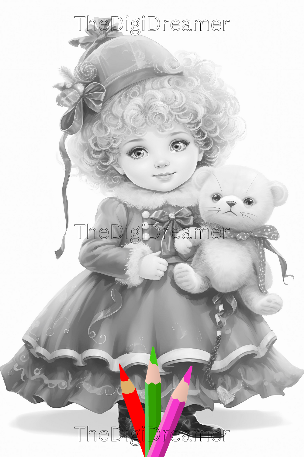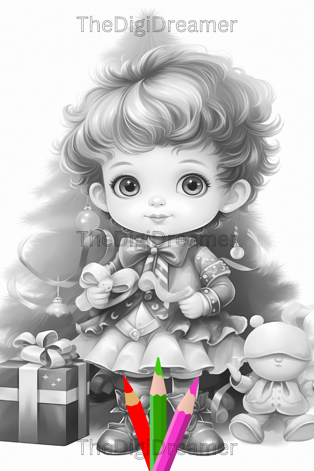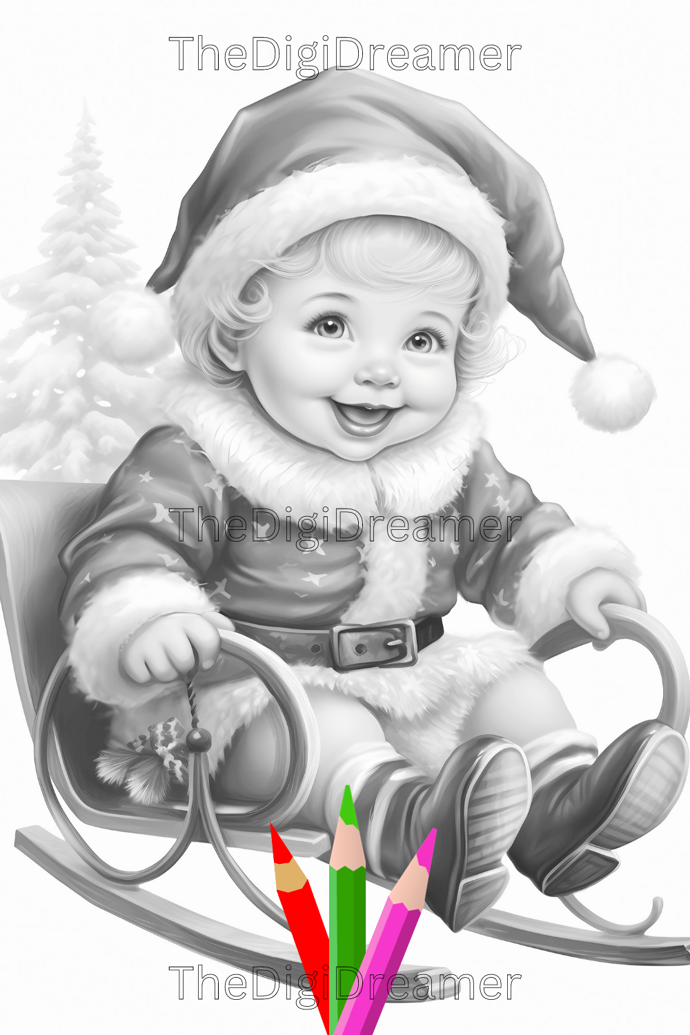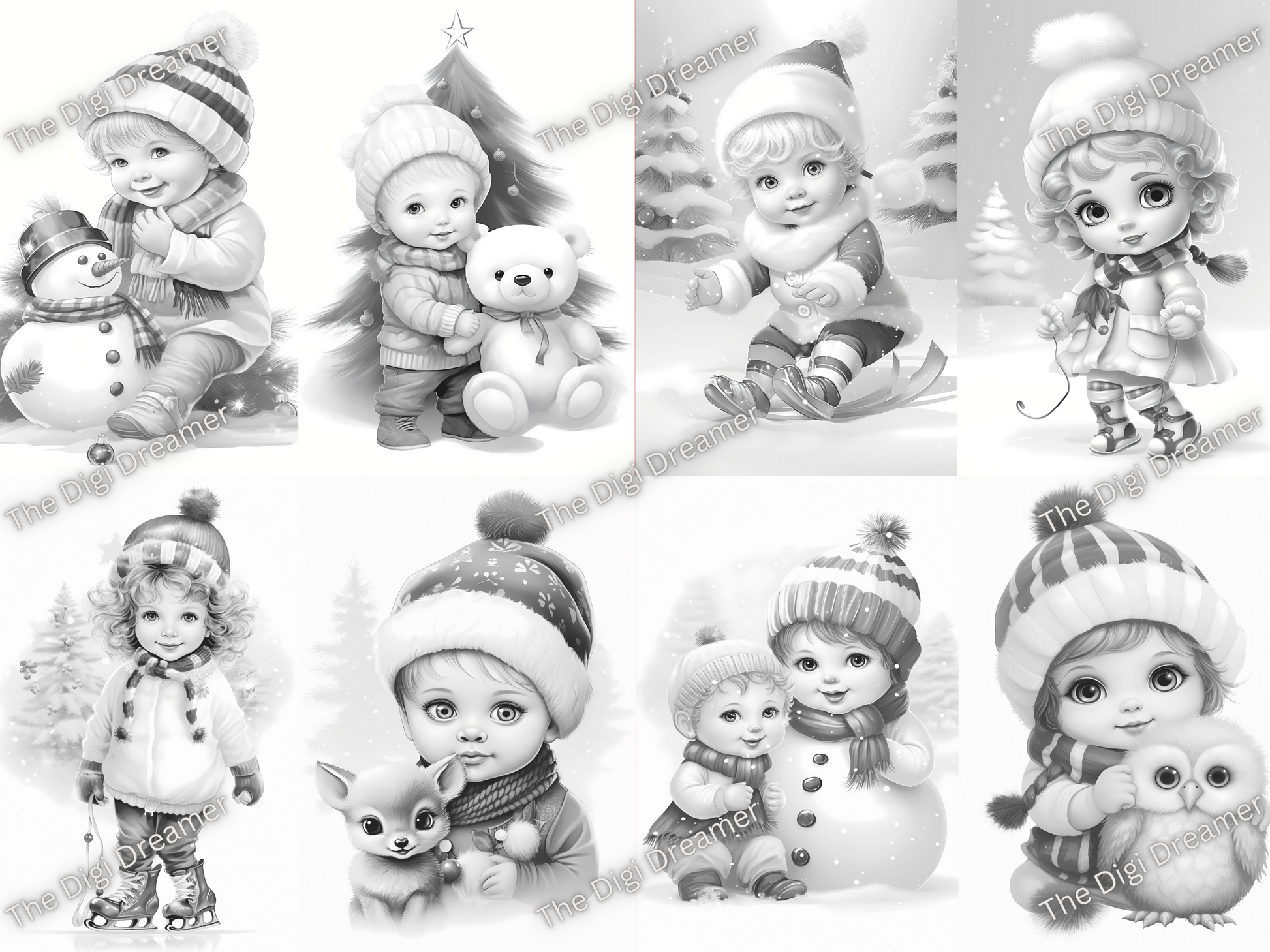 60 Christmas Babies Set 1-Printable Grayscale Coloring Pages, Digital download