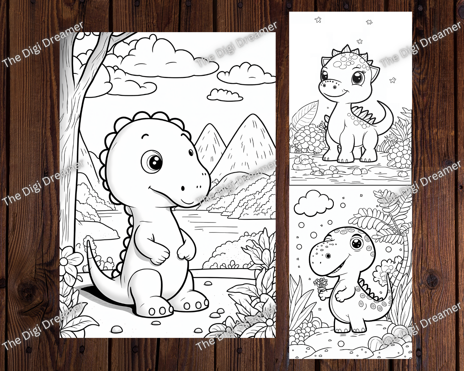 15 Cute Dinosaur Coloring Pages for Kids, Kids Coloring Pages, Instant Download