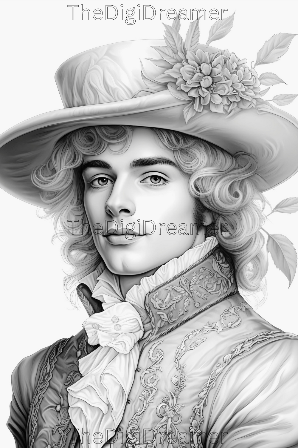 50 Baroque Men And Women Grayscale Printable Coloring Pages For Adults