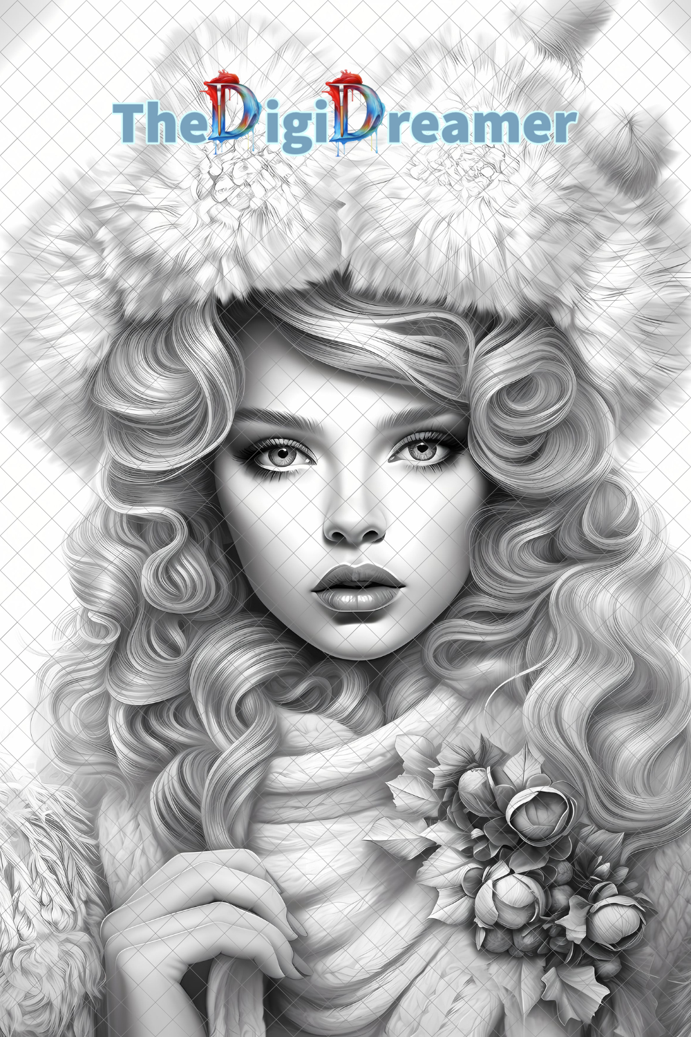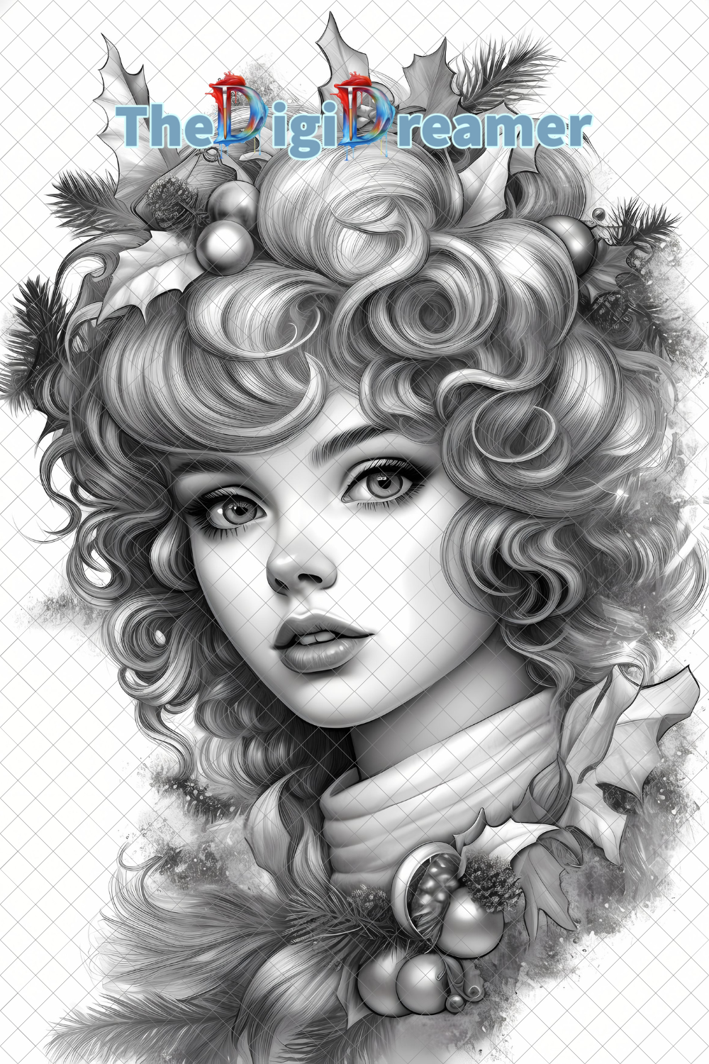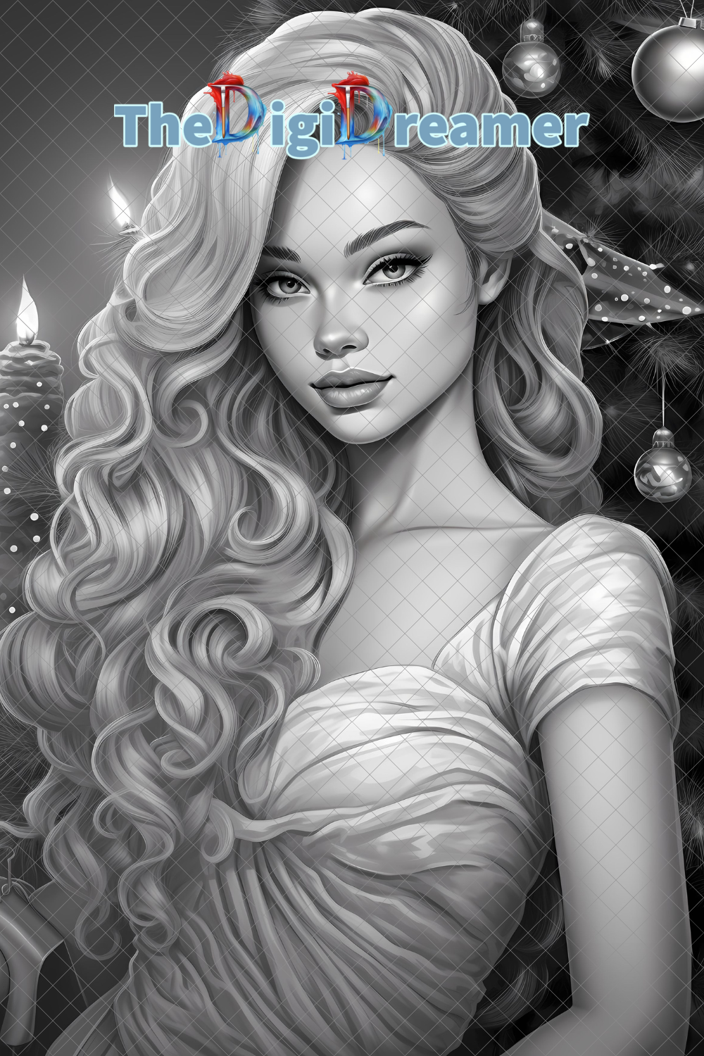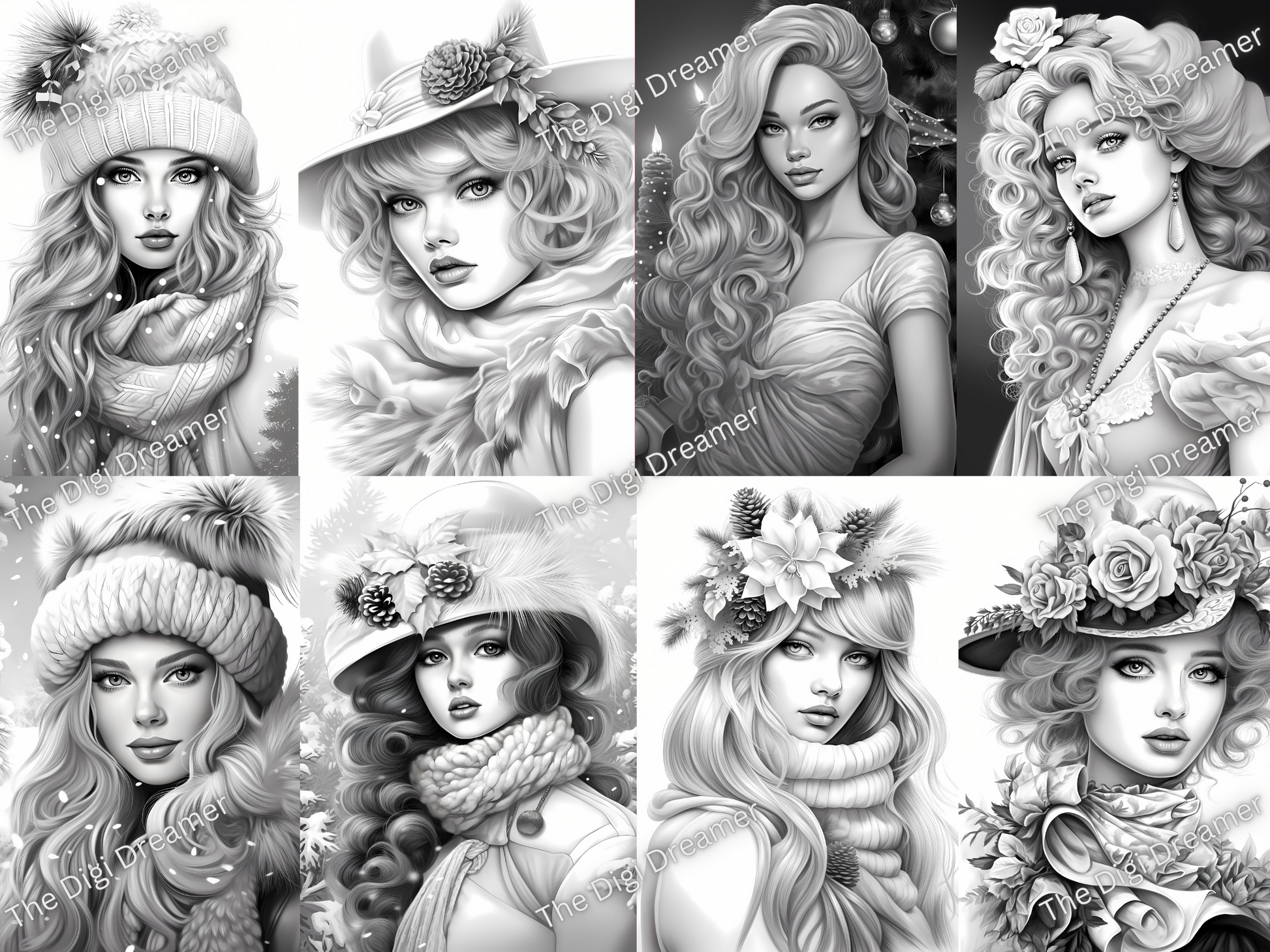 50 Christmas Fashion Week-Printable Grayscale Coloring Pages, Digital download