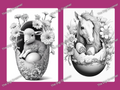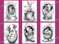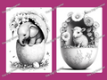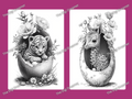 Animals in Broken Eggs Grayscale Coloring Pages