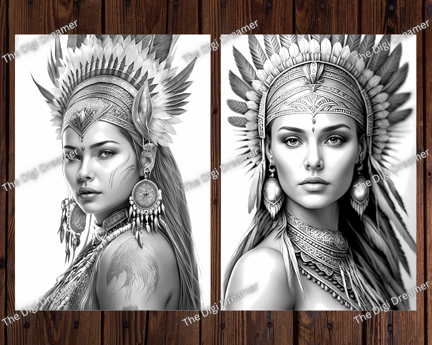 Whether you're a fan of bohemian style or simply appreciate the beauty of American Native women, our grayscale coloring pages are sure to delight. Add them to your collection today and let your creativity soar!