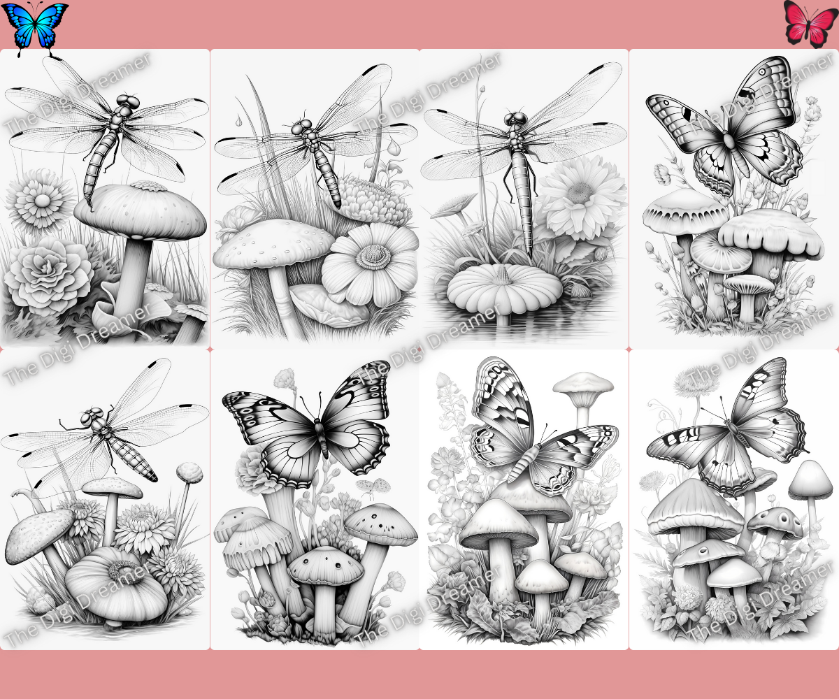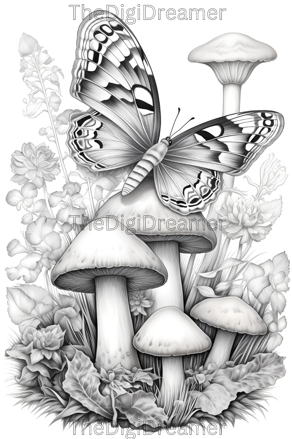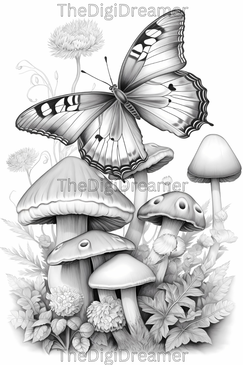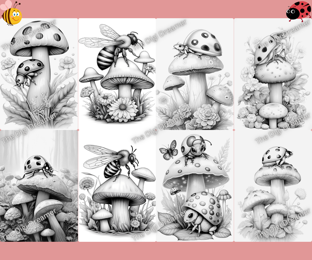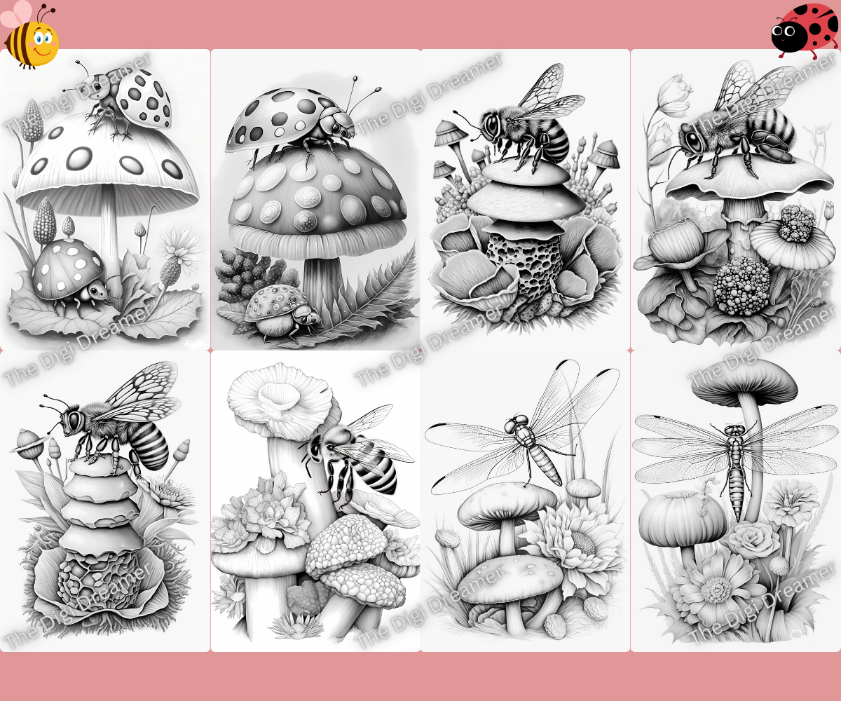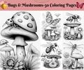 Embark on a captivating coloring journey with our bugs and mushrooms grayscale coloring pages. Delve into the intricate world of nature's tiny wonders as you bring to life the exquisite details of these bugs and mushrooms. This coloring book includes 50 coloring pages.