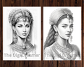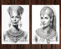 Egyptian Beauties Grayscale Coloring Pages for Adults