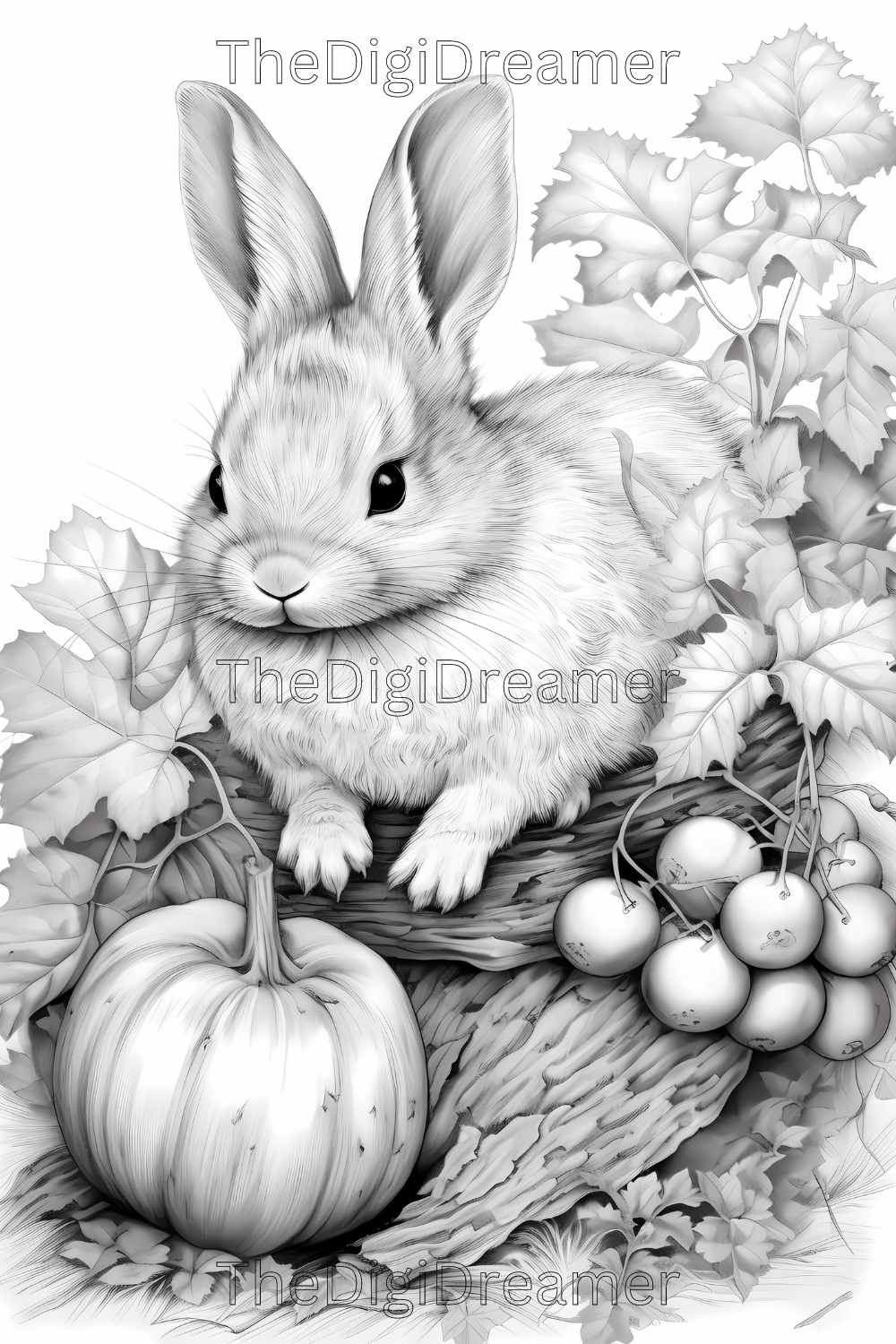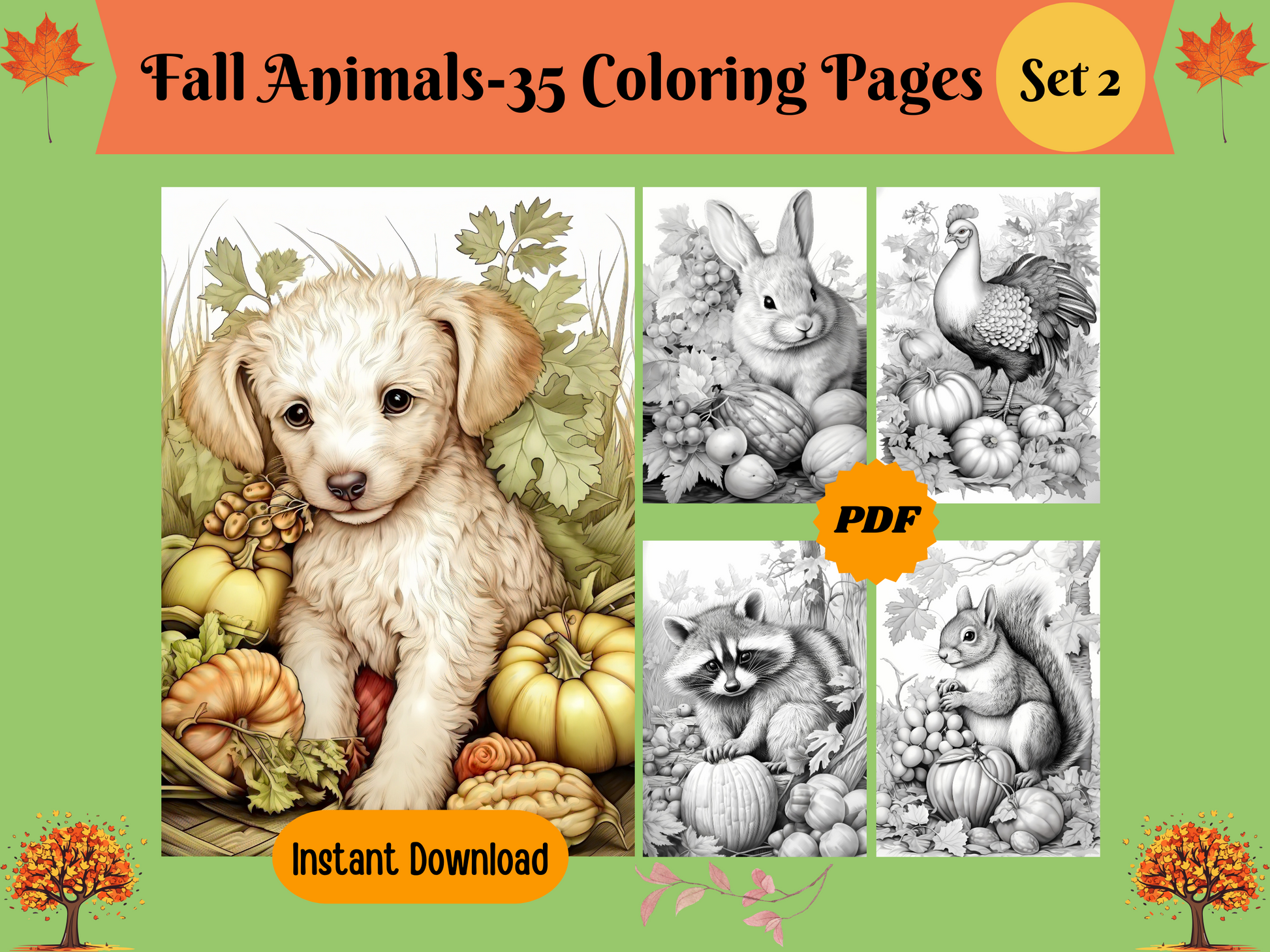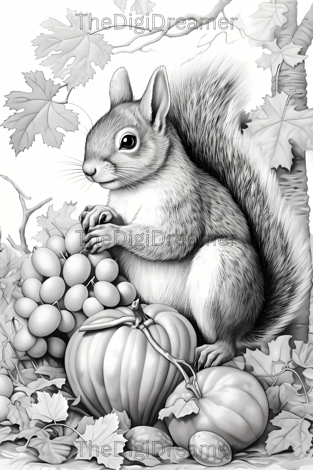Fall Animals Set2-Printable Grayscale Coloring Pages, Digital download