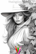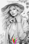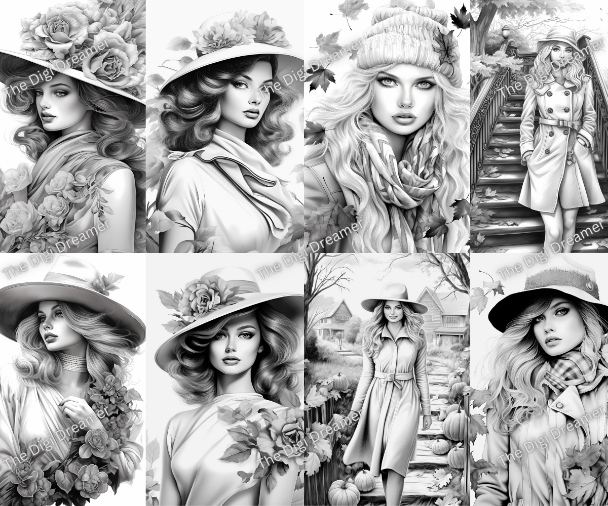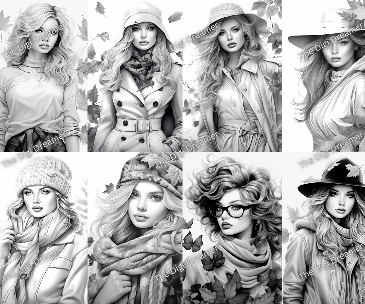 Fall Fashion - Printable Grayscale Coloring Pages, Digital download