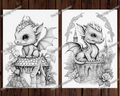Welcome to our collection of adorable fantasy dragon and castles grayscale coloring pages! These printable pages feature charming illustrations of whimsical dragons that are perfect for kids and adults alike.