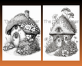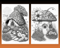 Fantasy Mushroom Hobbit Houses Grayscale Printable Coloring Pages