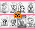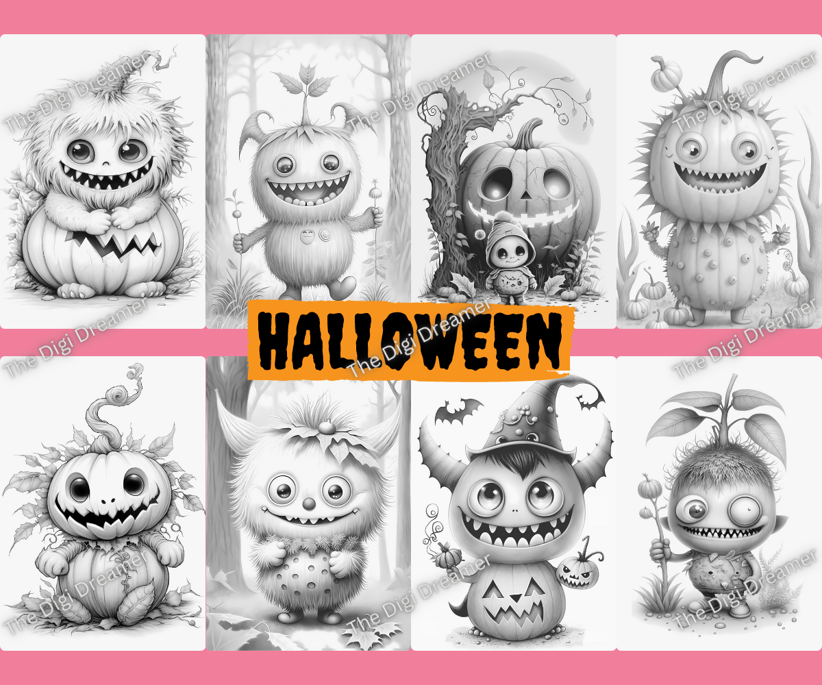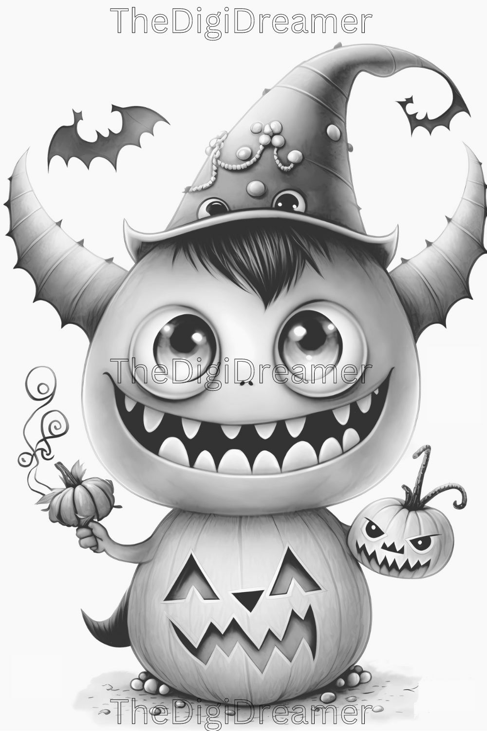 Step into a realm of eerie enchantment with our collection of Halloween monsters grayscale coloring pages. Unleash your creativity as you bring to life an array of these spooktacular creatures. This coloring book includes 25 coloring pages.
