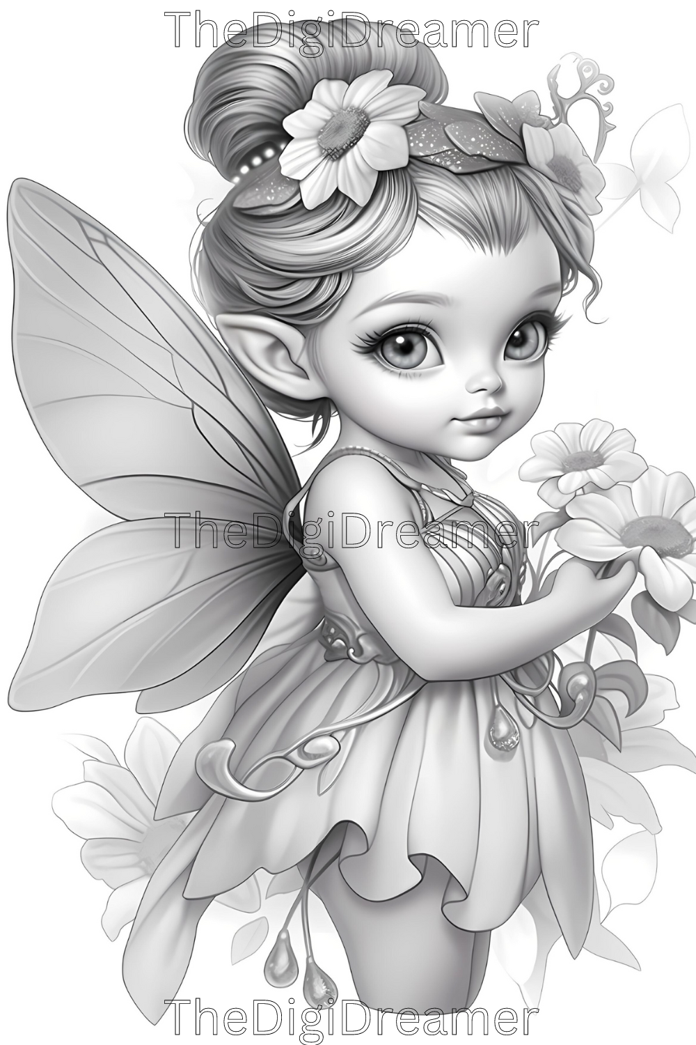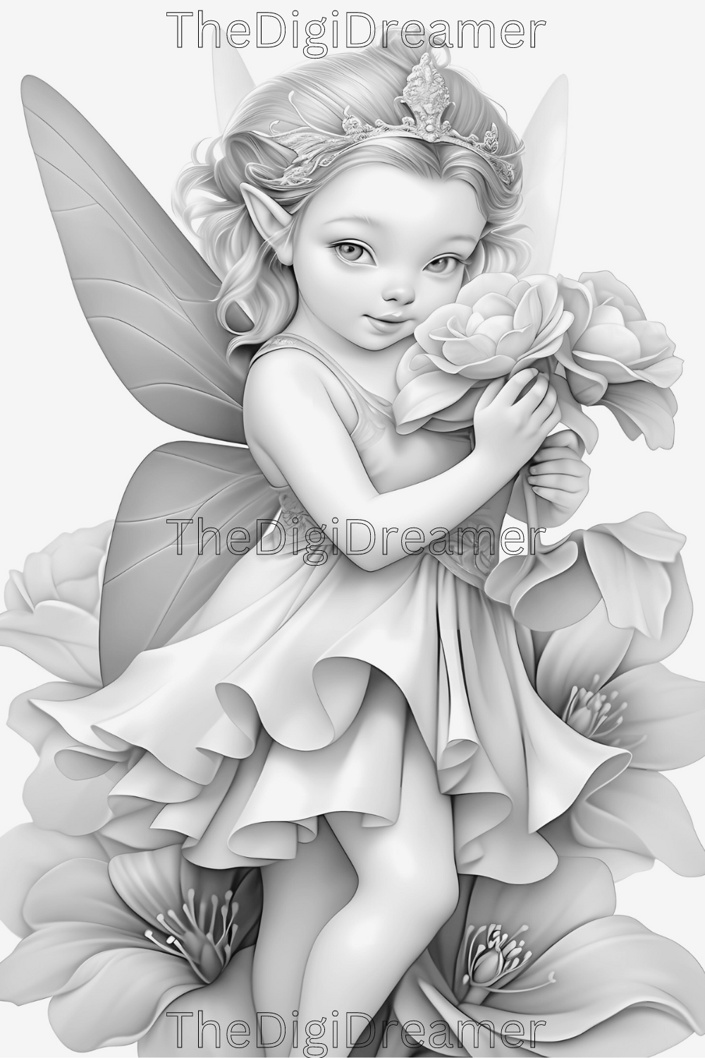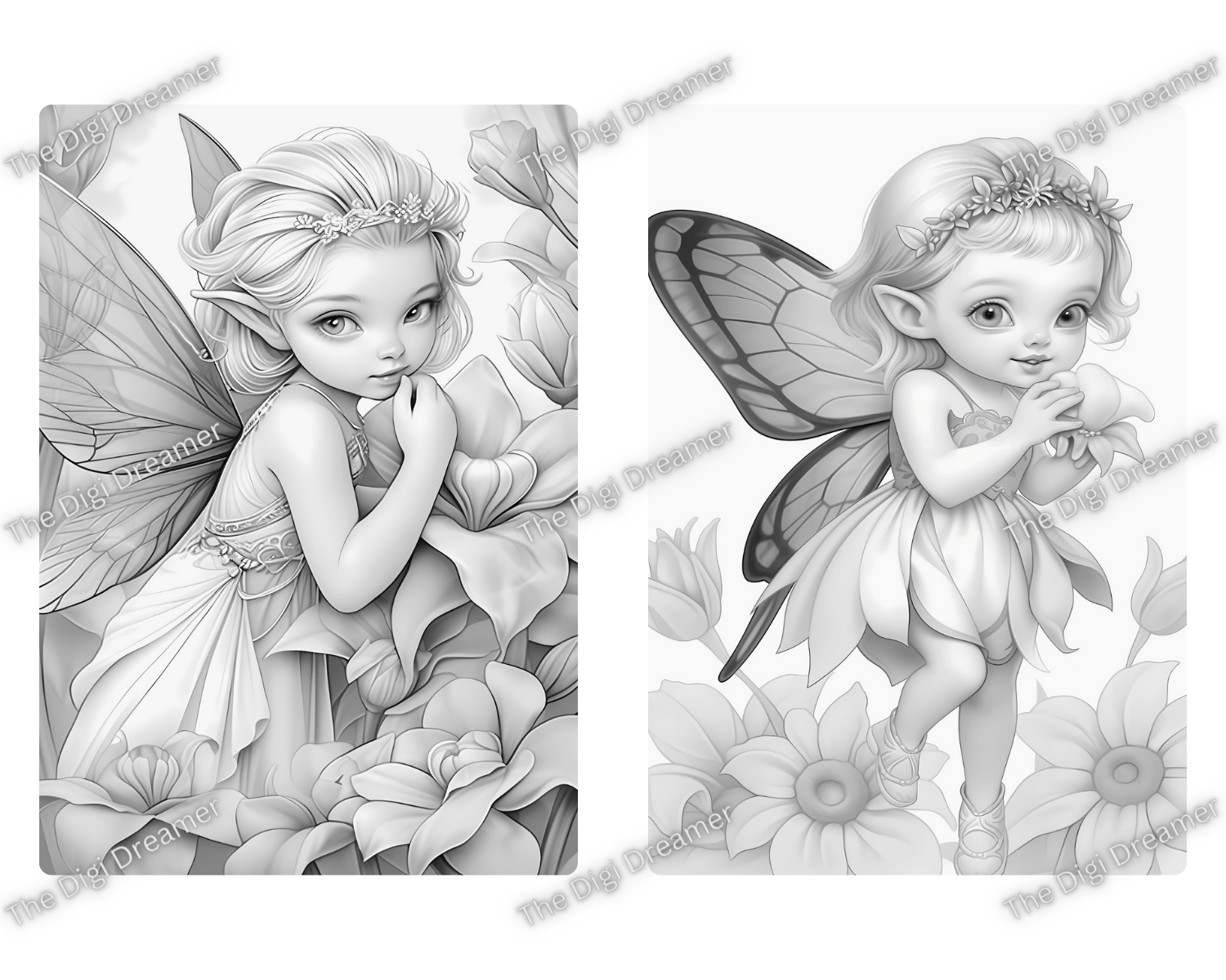 Immerse yourself in the magical world of these garden elf fairies amidst enchanting flowers. Each page is a window into a realm of fantasy and charm. Lose yourself in the calming and meditative process of grayscale coloring. Share the enchantment with friends and family by gifting them these delightful grayscale pages. Perfect for fairy enthusiasts, these pages make for a thoughtful and imaginative present.