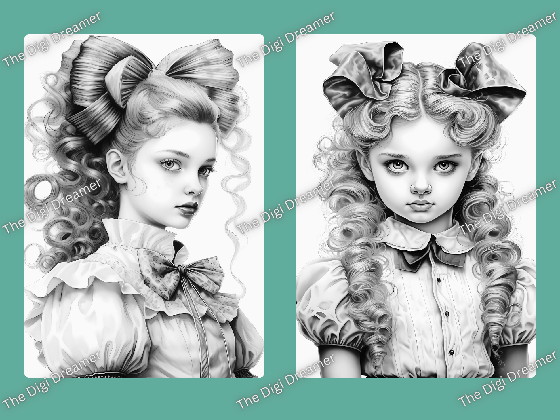 Unleash your creativity with our captivating grayscale coloring pages featuring delightful girls adorned with bows. These unique and enchanting illustrations are perfect for both adults and kids alike. These grayscale coloring pages make fantastic gifts for birthdays, holidays, or any occasion. They can be framed as standalone artwork or used to create personalized greeting cards, bookmarks, or home decor items. Add a touch of whimsy and beauty to your world with our Girls with Bows grayscale coloring pages.