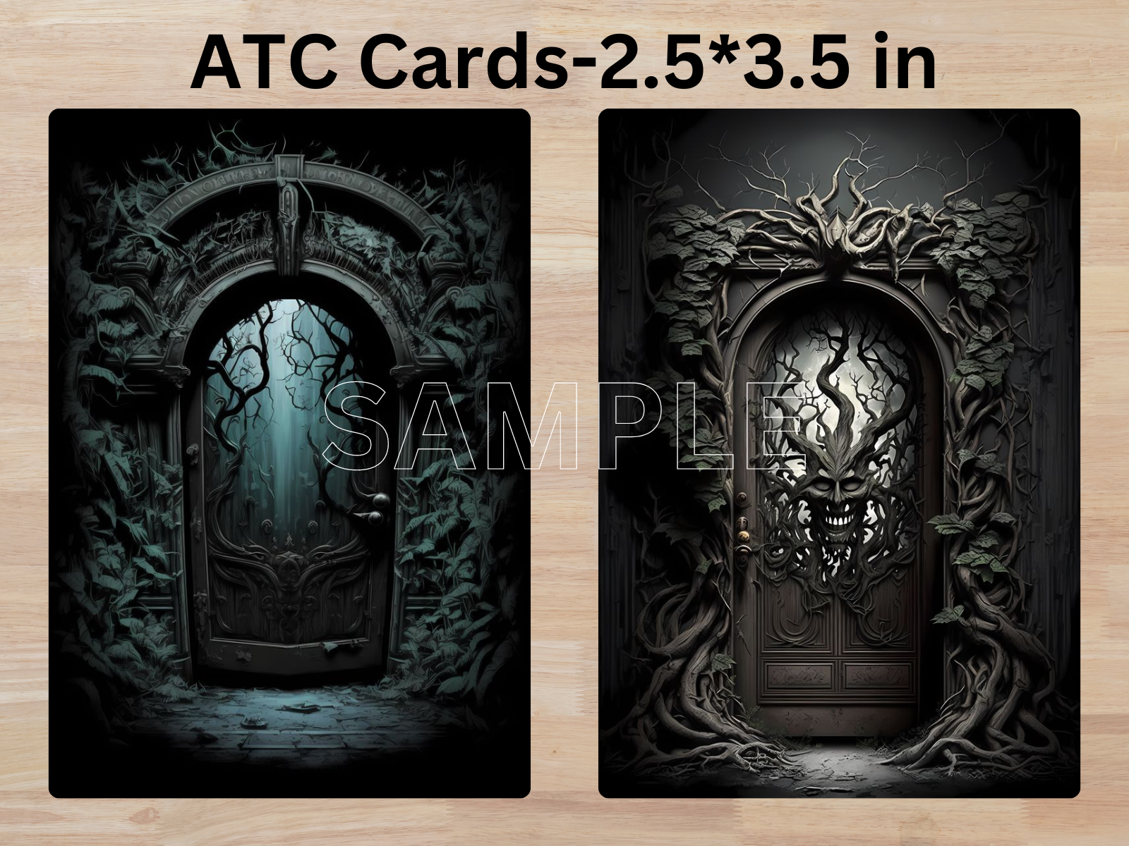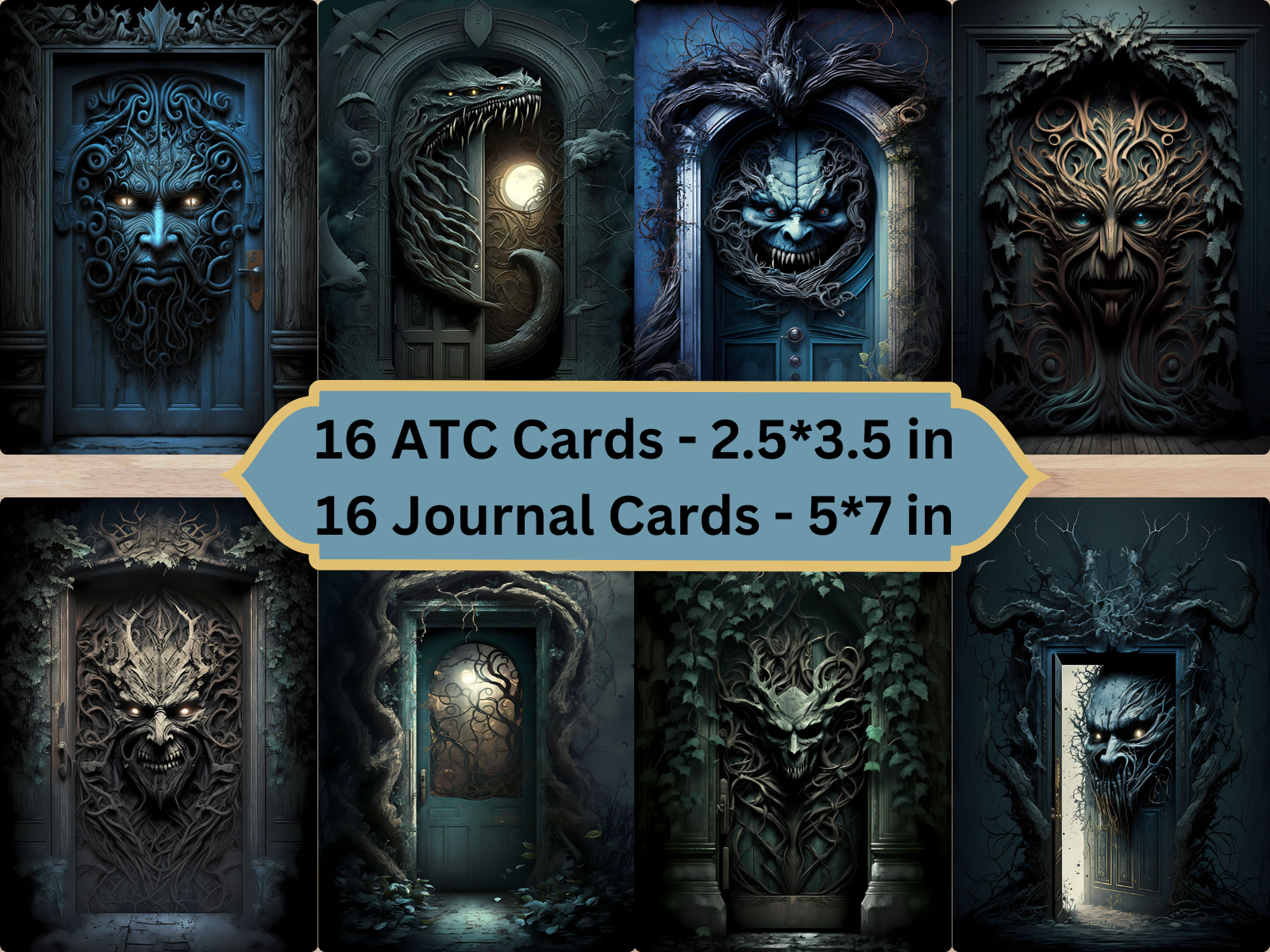Enter a realm of spine-chilling suspense with our collection of "Scary Doors" journal and ATC (Artist Trading Cards) cards. Perfect for journaling, scrapbooking, or creating miniature works of art, our journal and ATC cards will send shivers down your spine and add a touch of suspense to your projects. Use them to create atmospheric collages, haunting bookmarks, or unique gifts for fellow fans of the macabre.