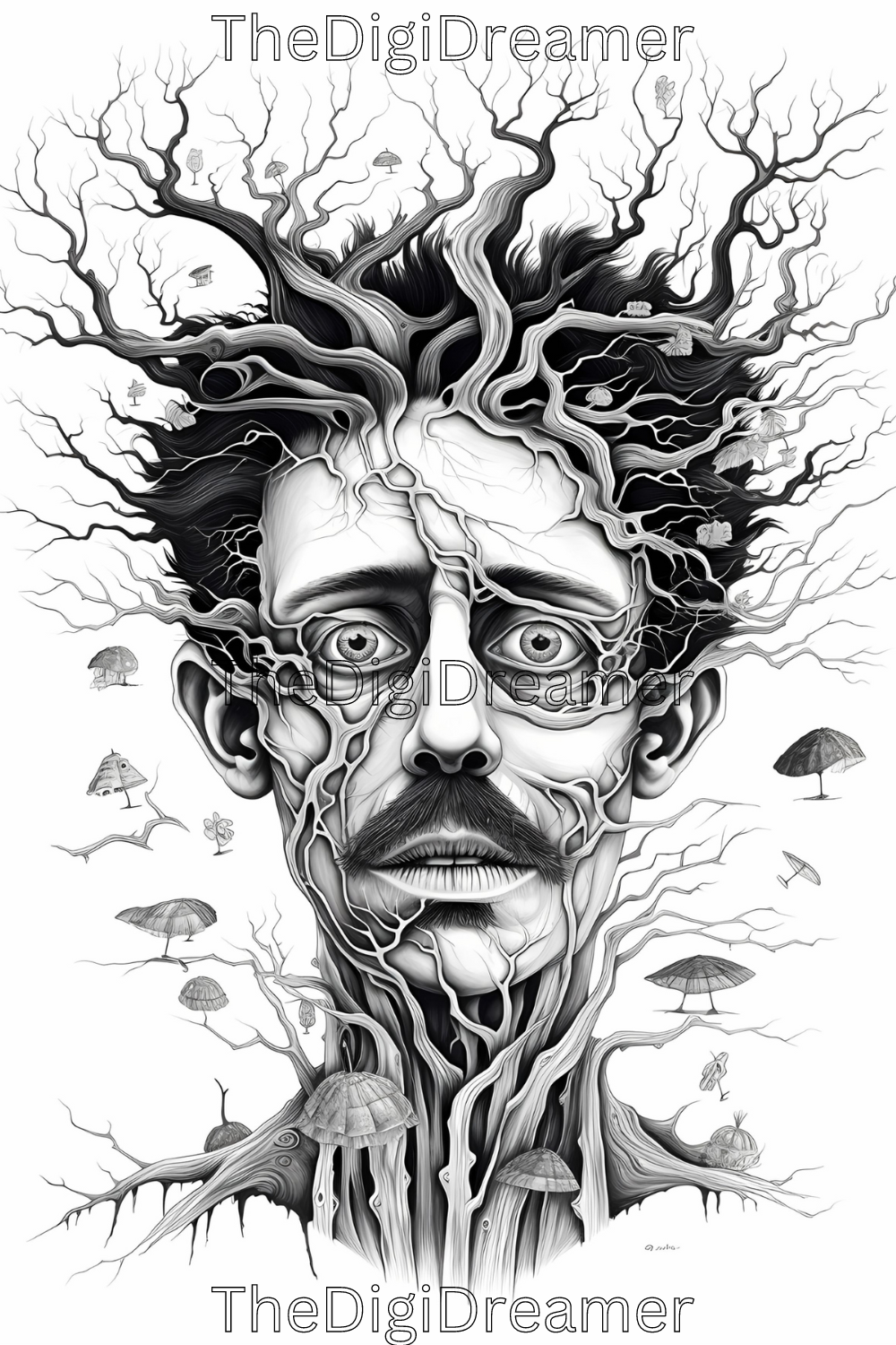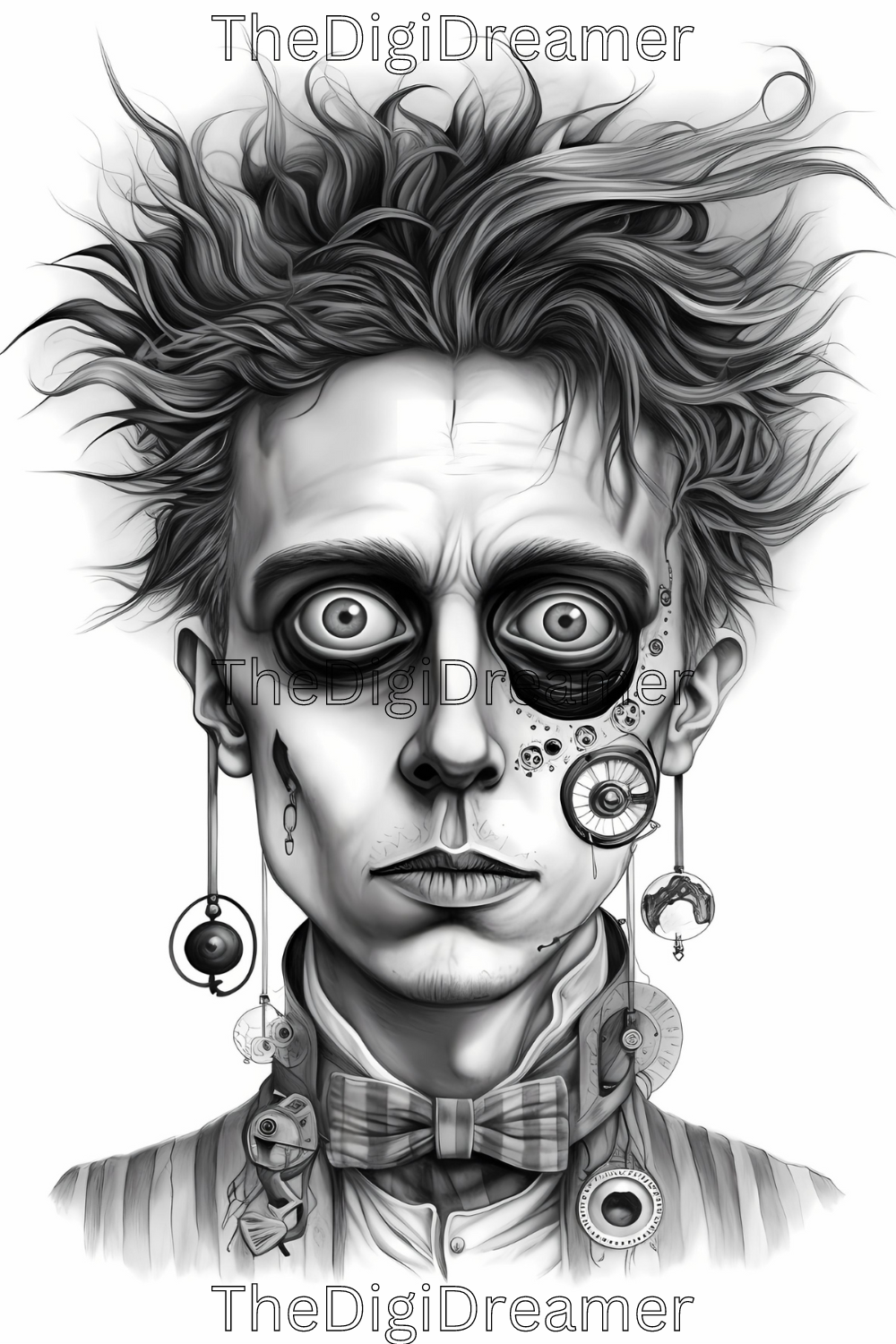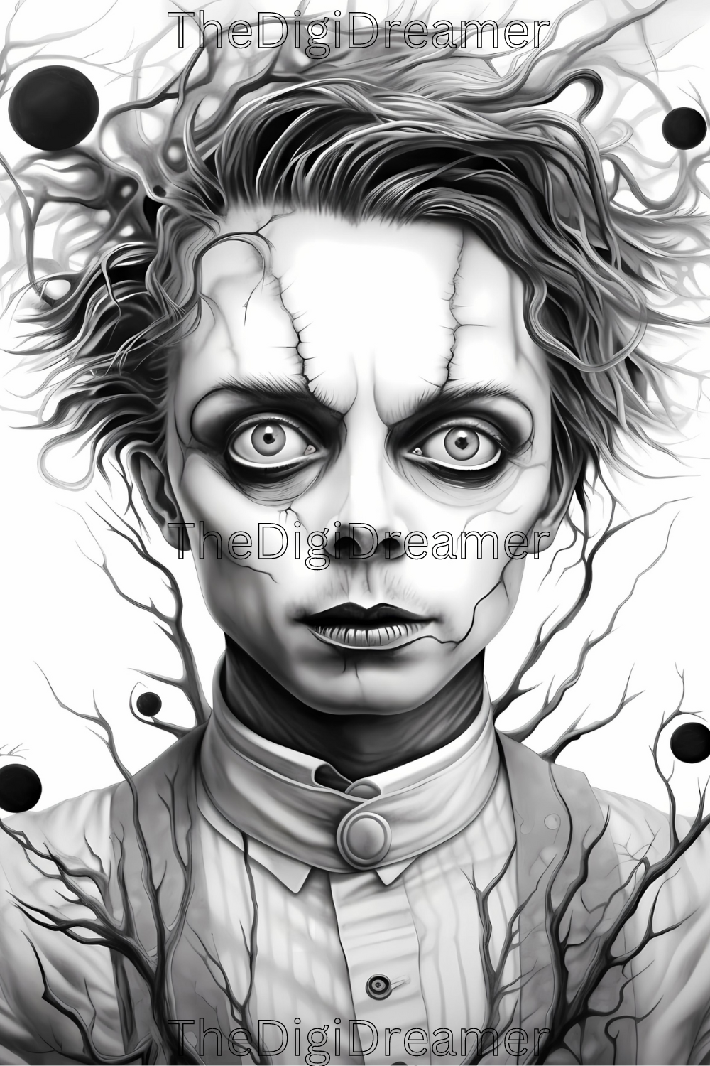 Discover the allure of darkness with our collection of spooky men grayscale coloring pages. Immerse yourself in the enigmatic world of these meticulously detailed designs, featuring brooding figures, haunted landscapes, and eerie atmospheres.