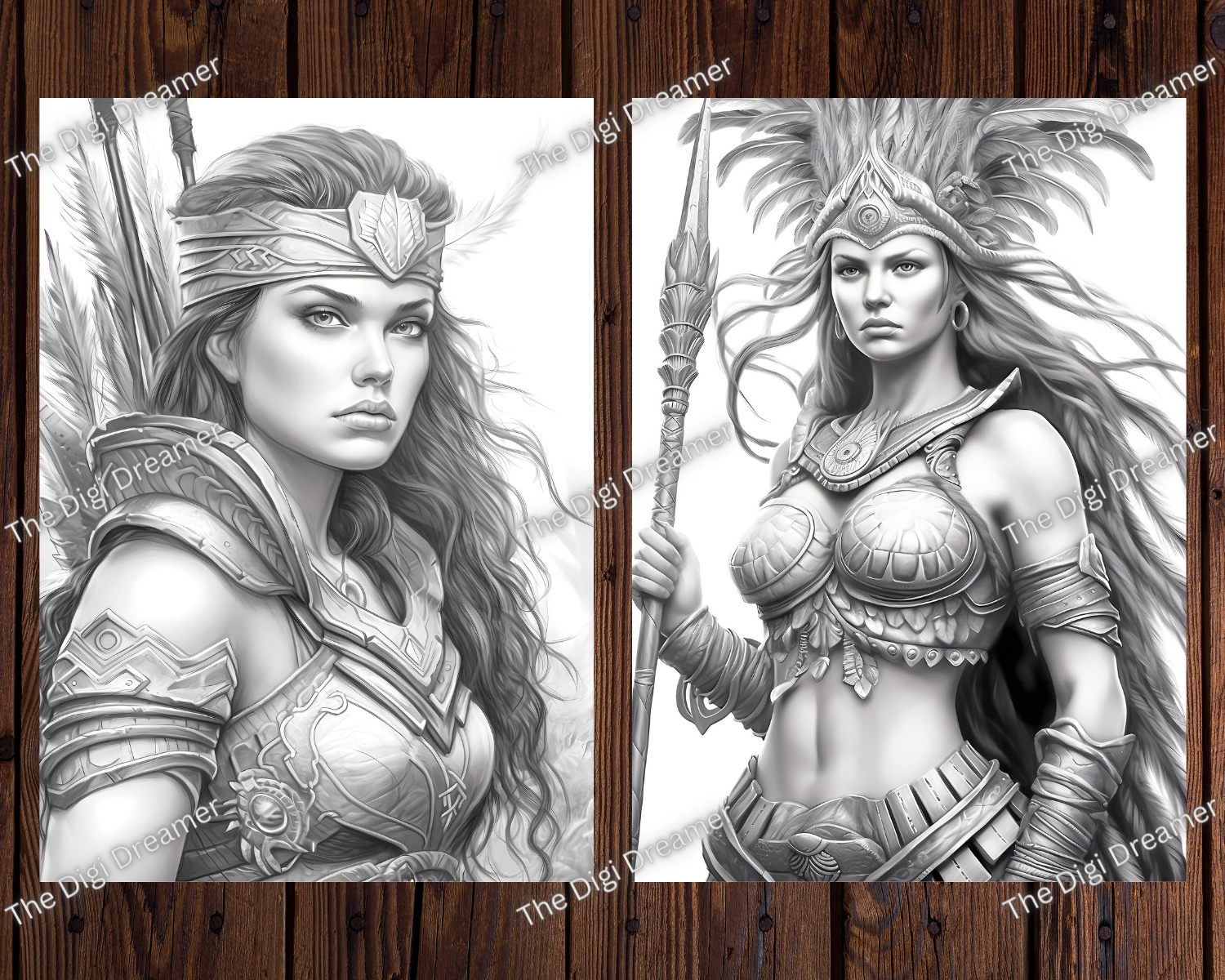 Stunning Amazonian Warrior Princess Grayscale Coloring Pages for Adults