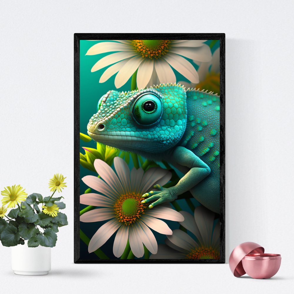 Embrace the whimsical charm of our Chameleon Botanical digital wall art. This captivating artwork combines...
