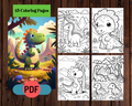 15 Cute Dinosaur Coloring Pages for Kids, Kids Coloring Pages, Instant Download