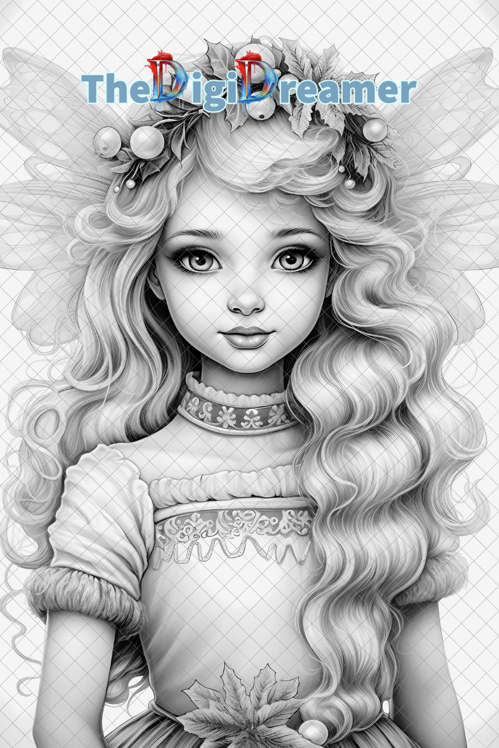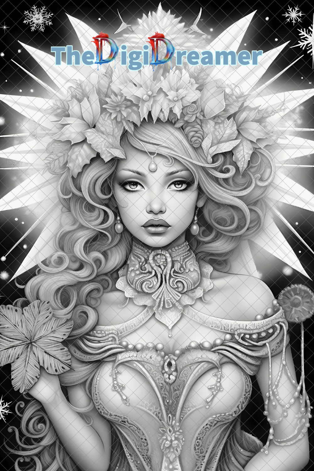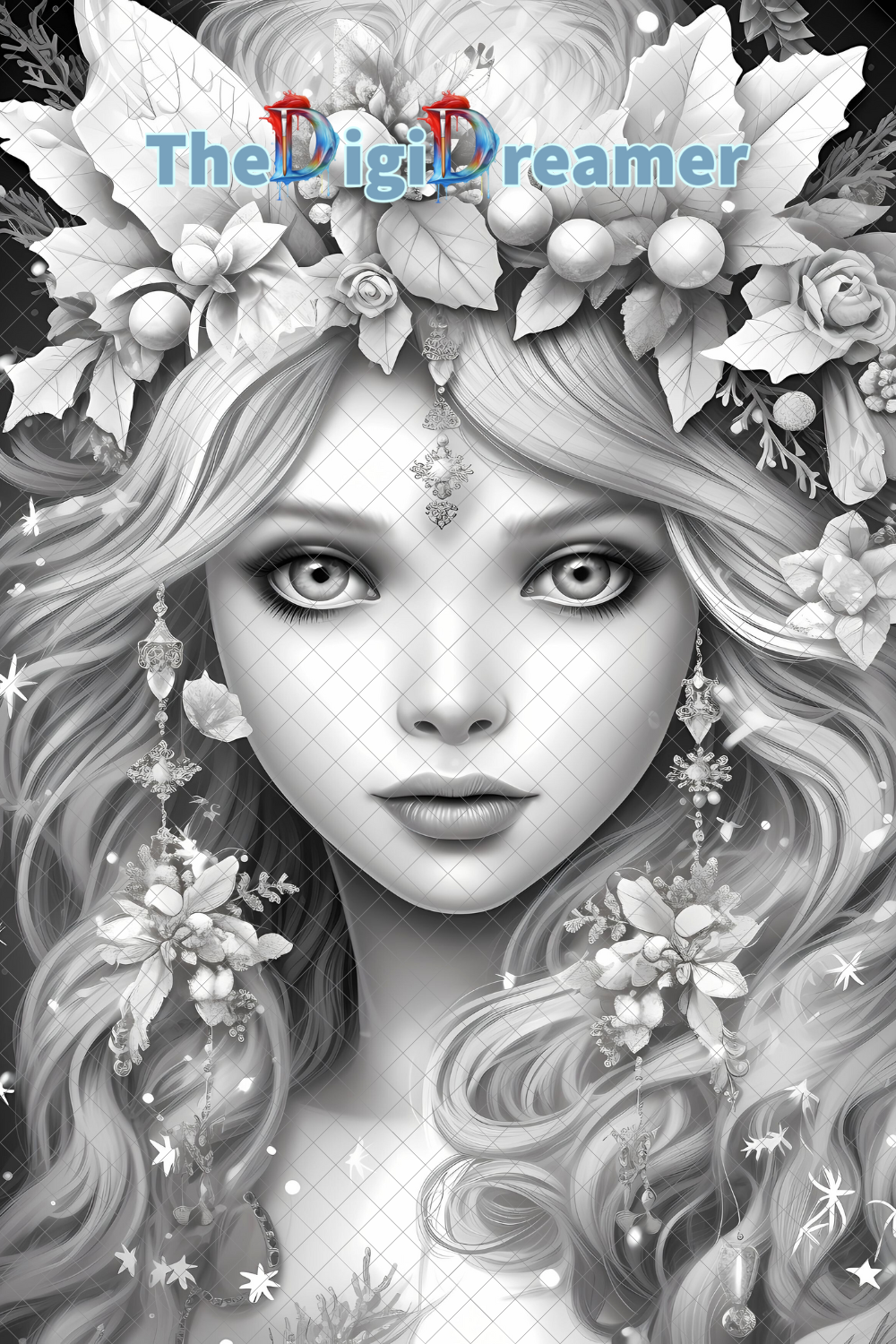 25 Snowflake fairies-Printable Grayscale Coloring Pages, Digital download