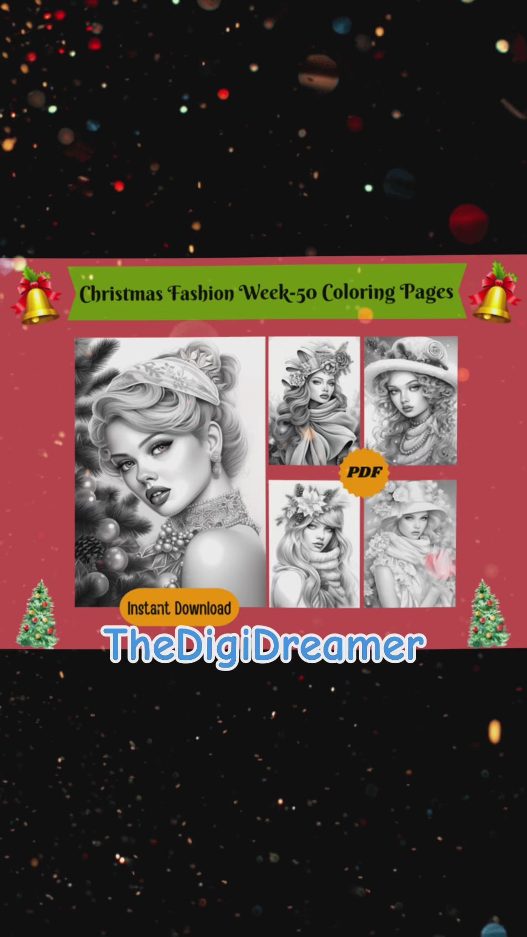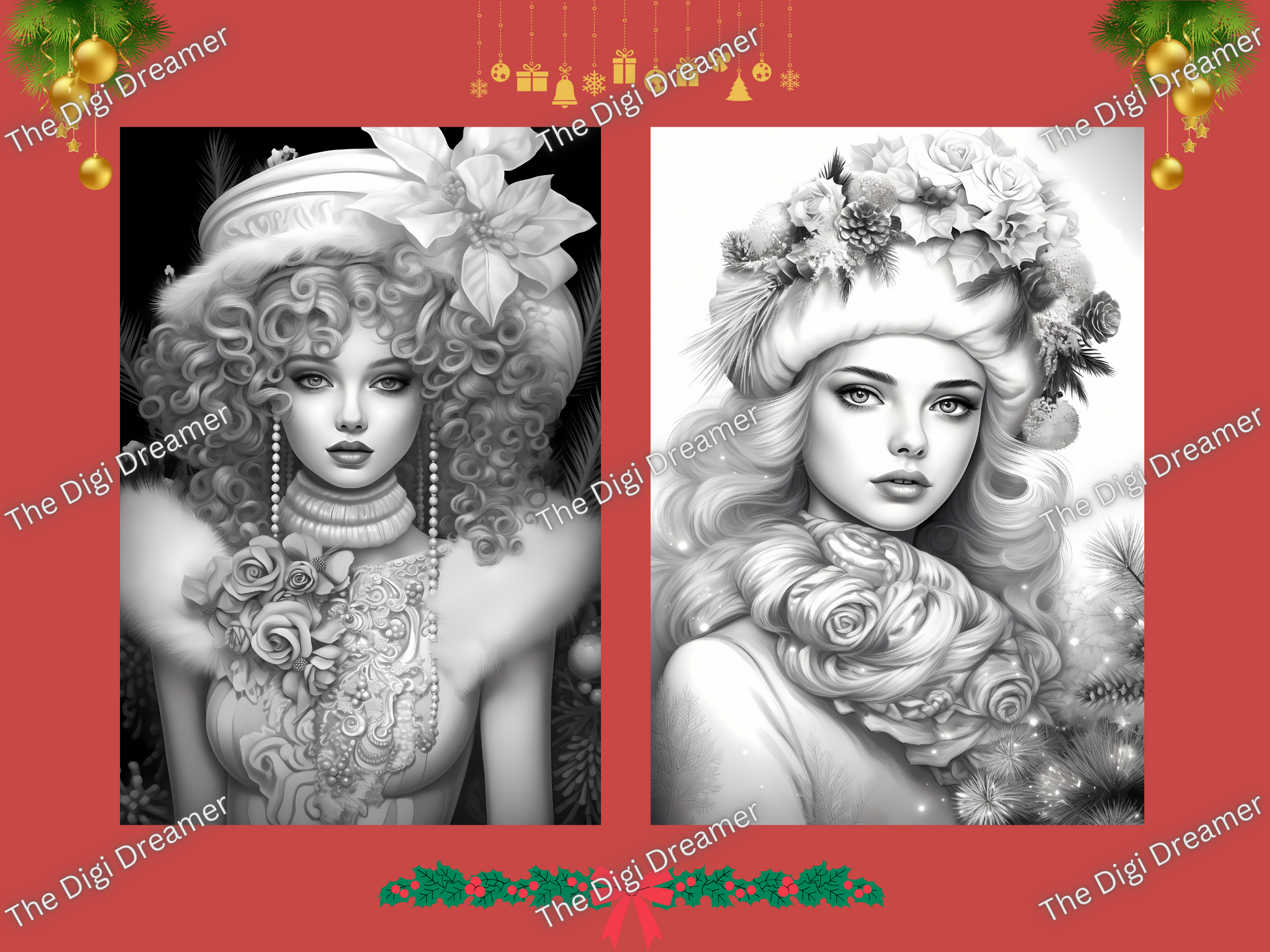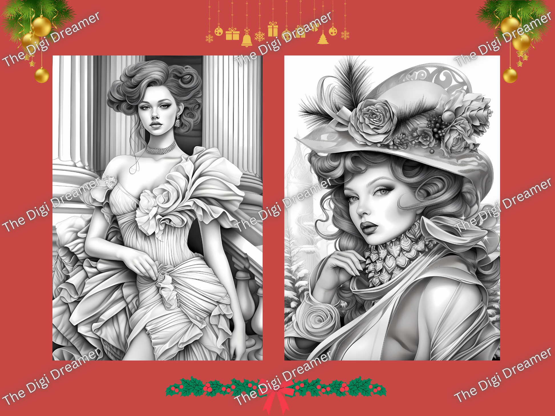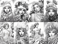 50 Christmas Fashion Week-Printable Grayscale Coloring Pages, Digital download