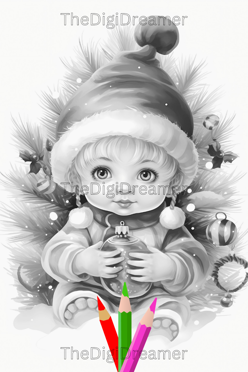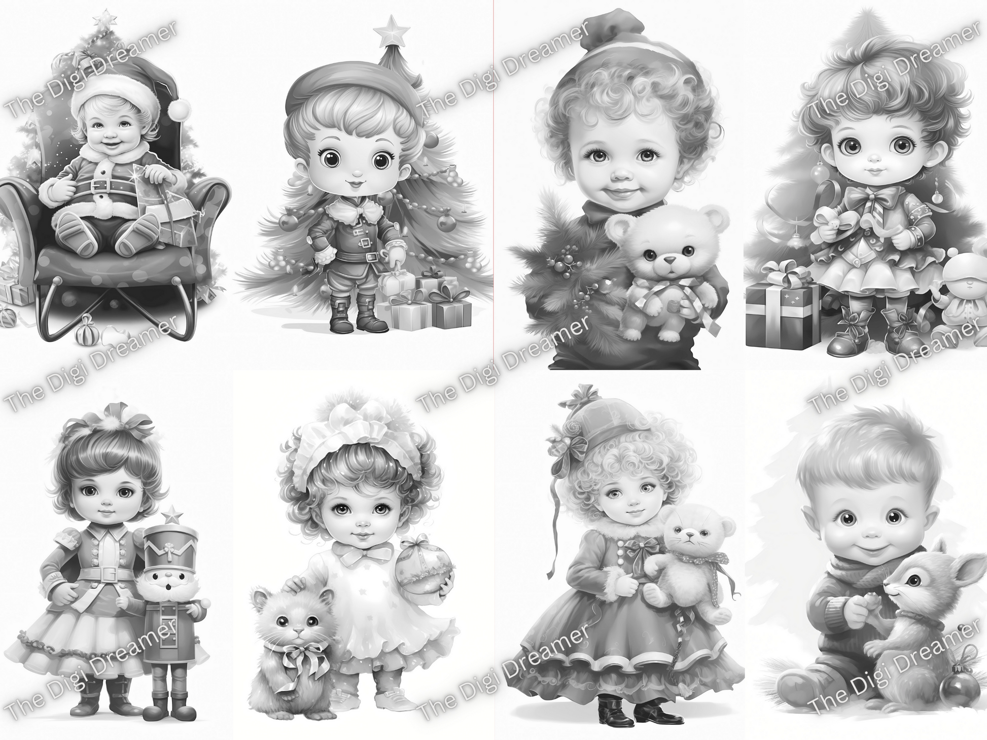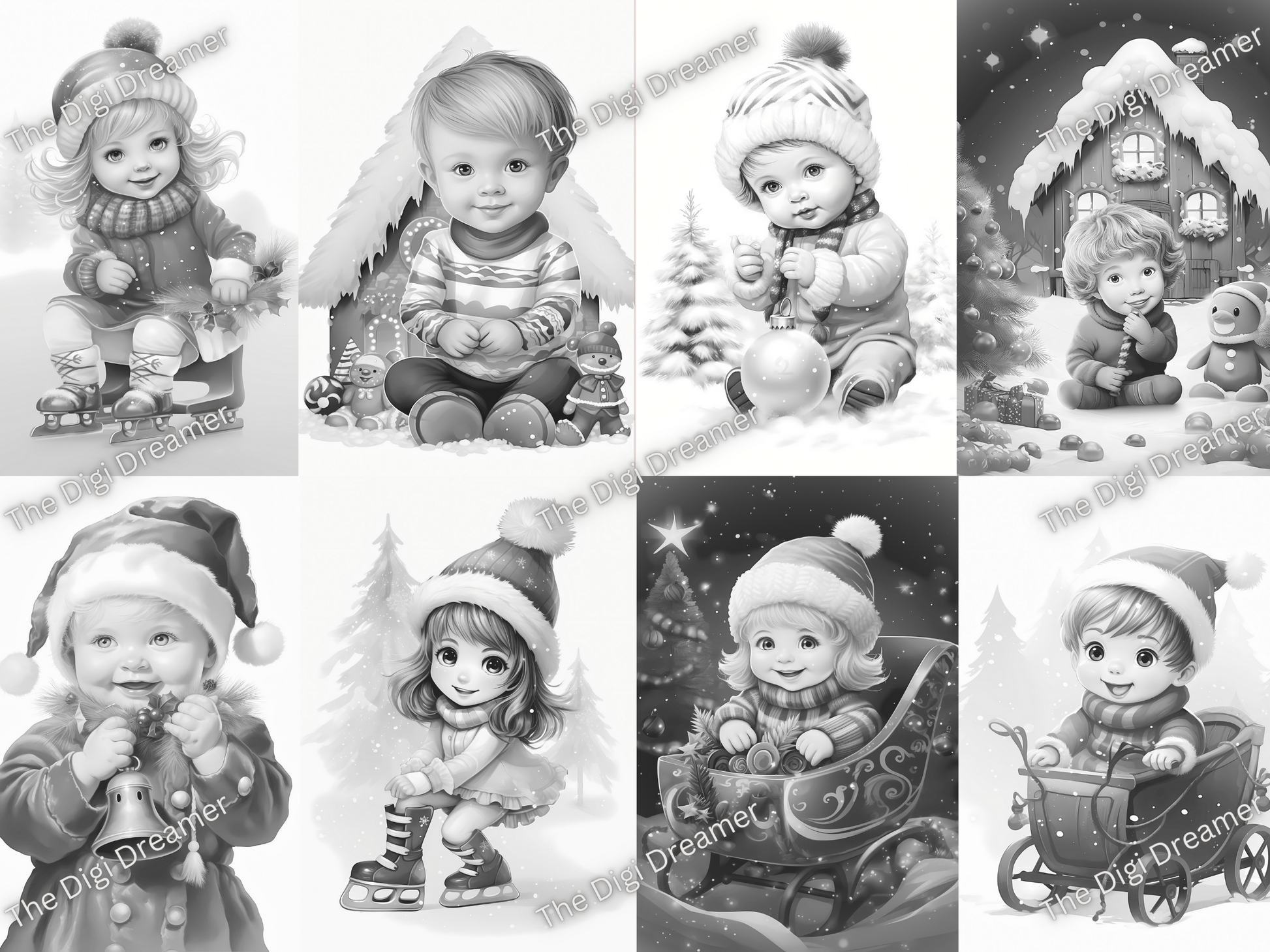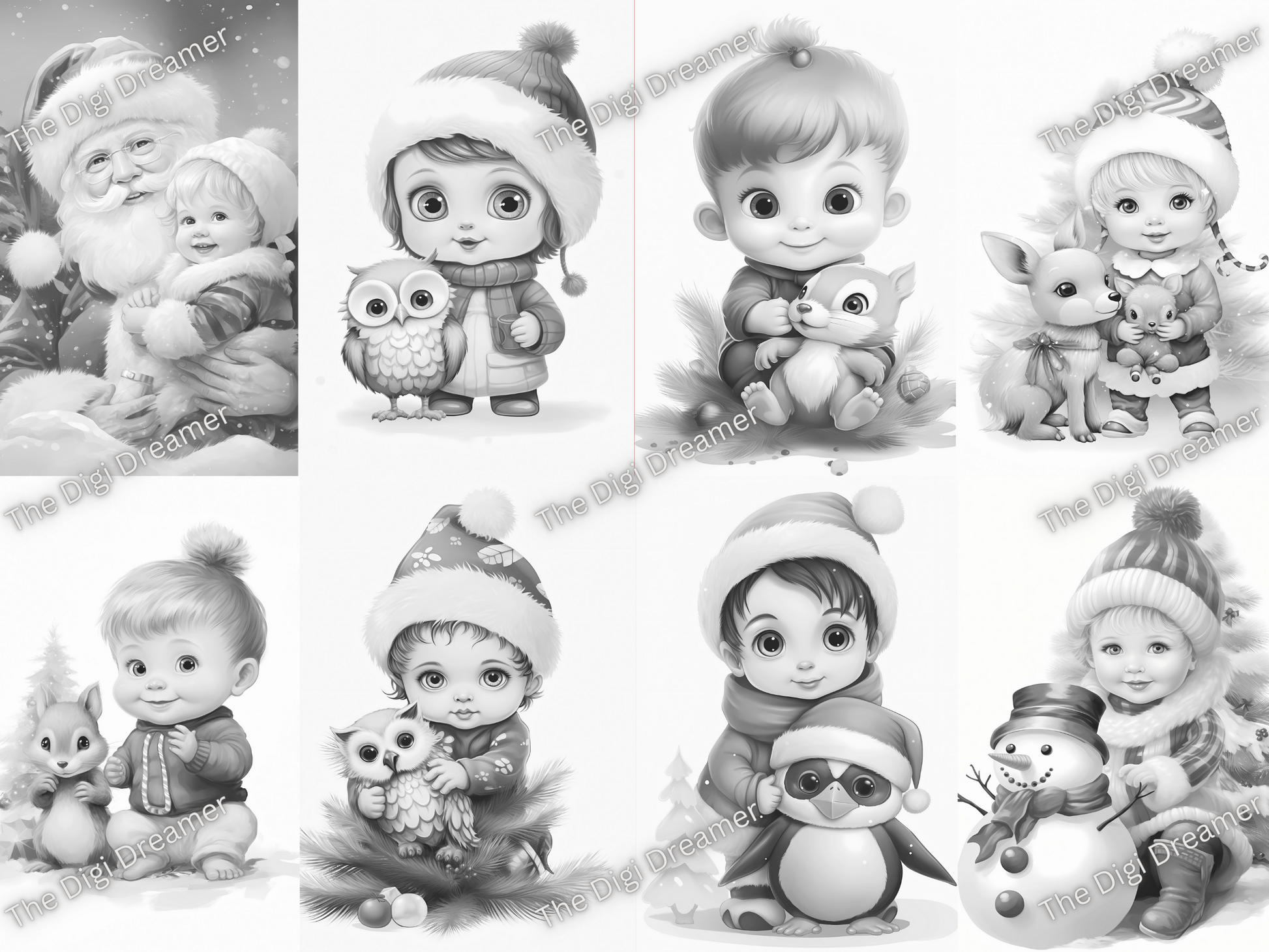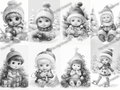 60 Christmas Babies Set 1-Printable Grayscale Coloring Pages, Digital download