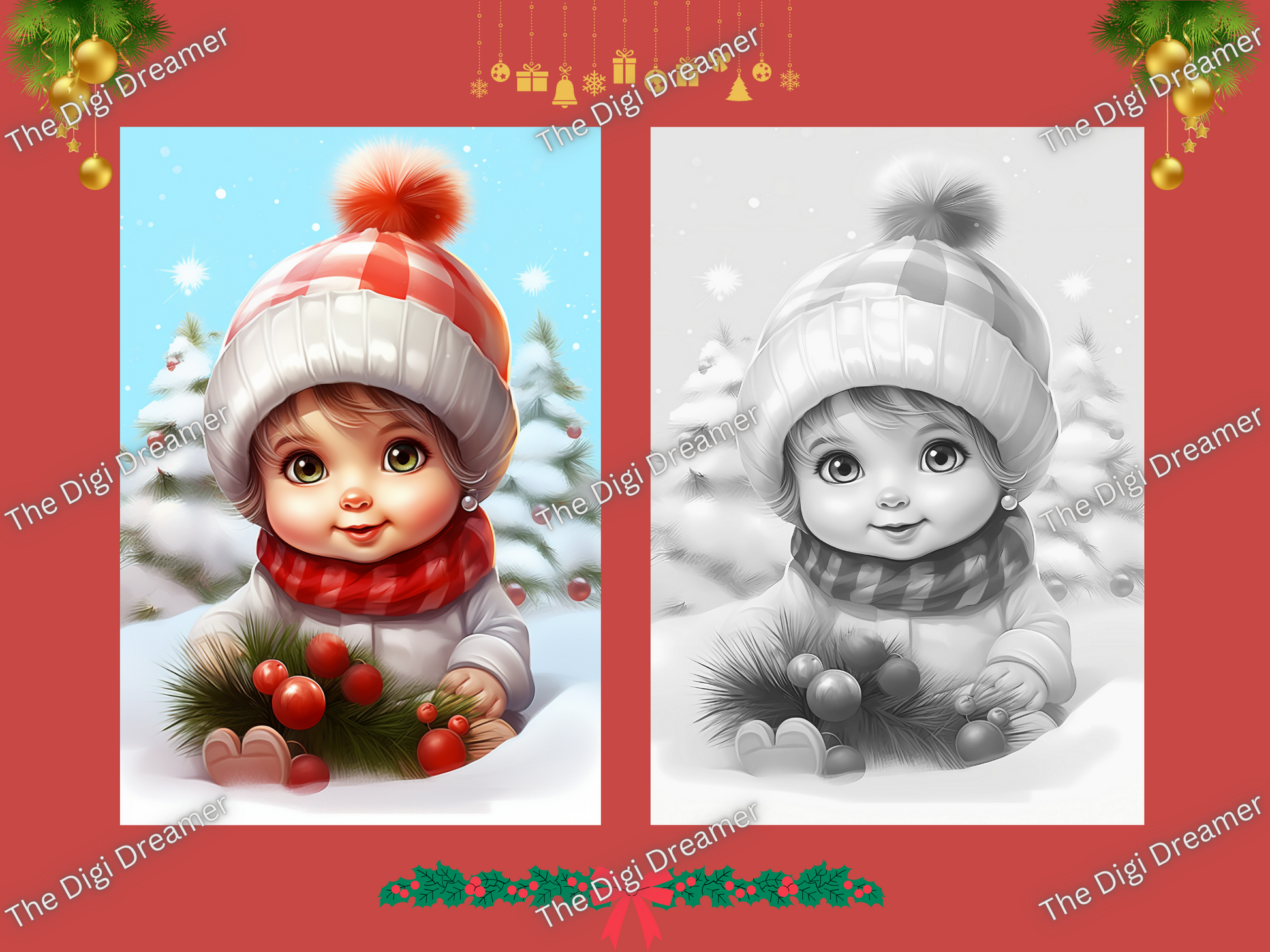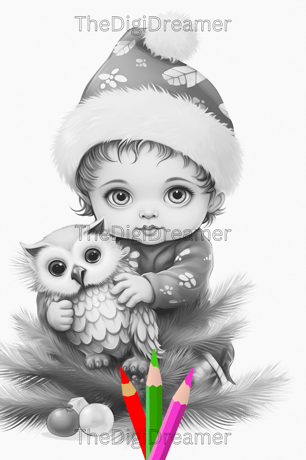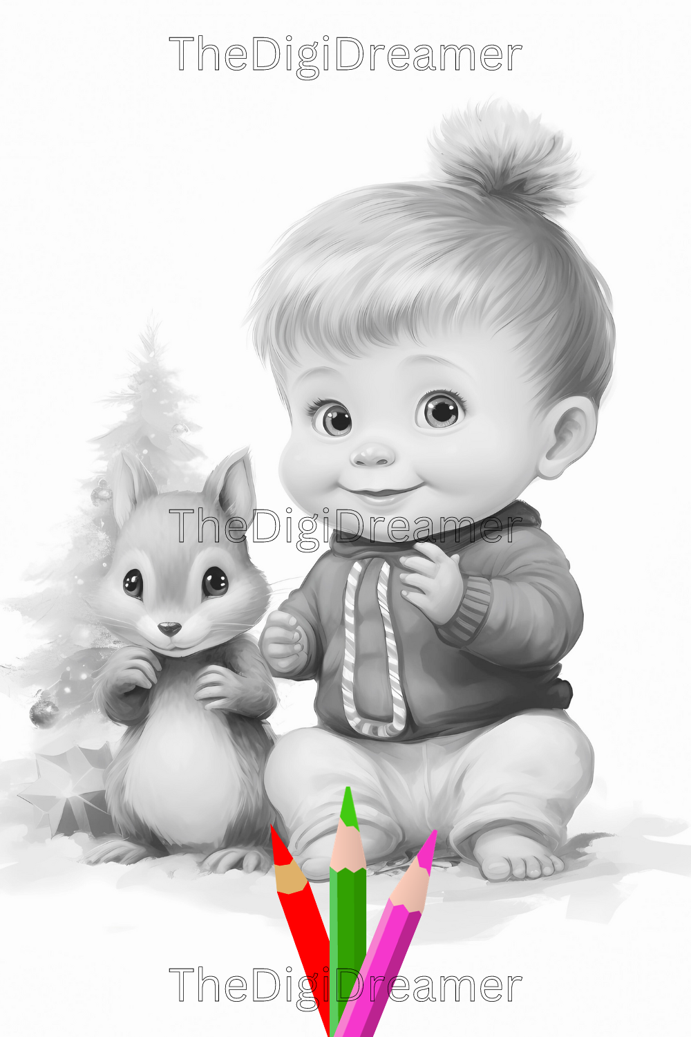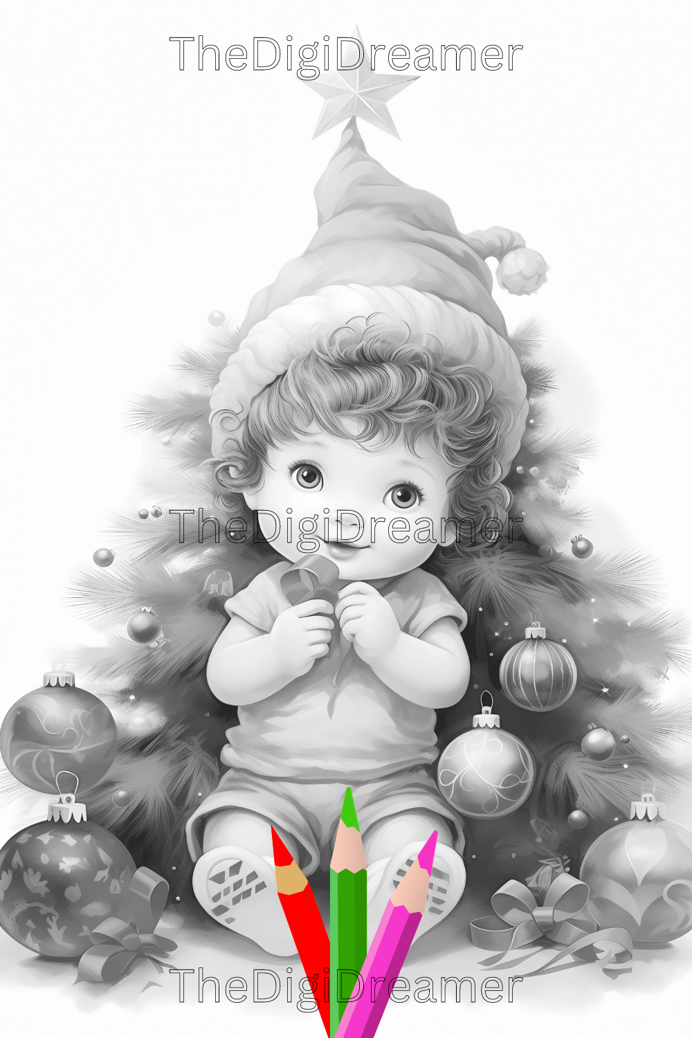 60 Christmas Babies Set 1-Printable Grayscale Coloring Pages, Digital download
