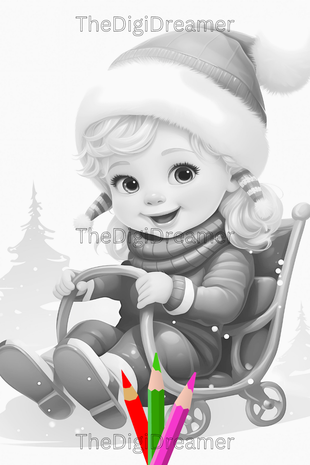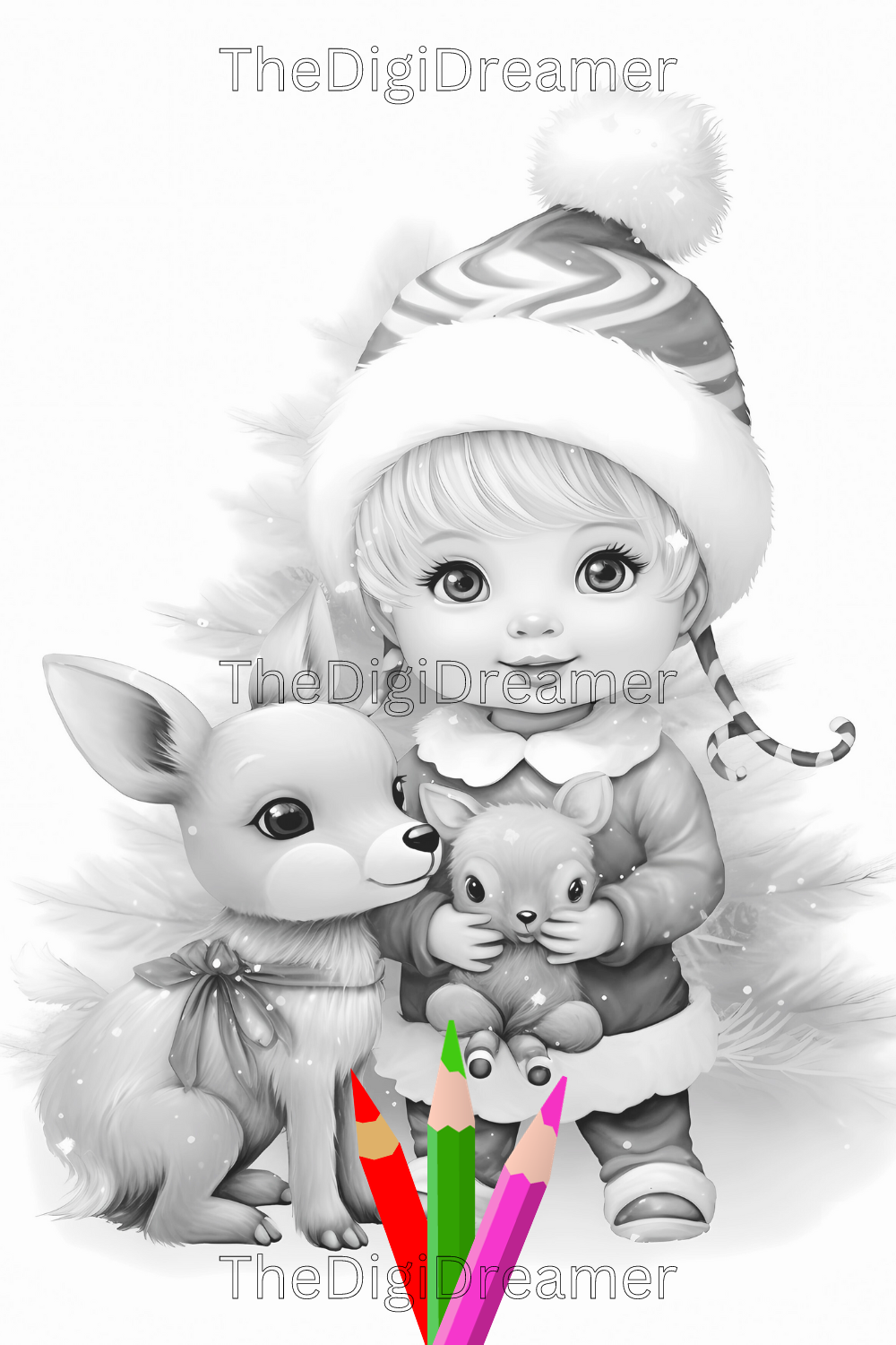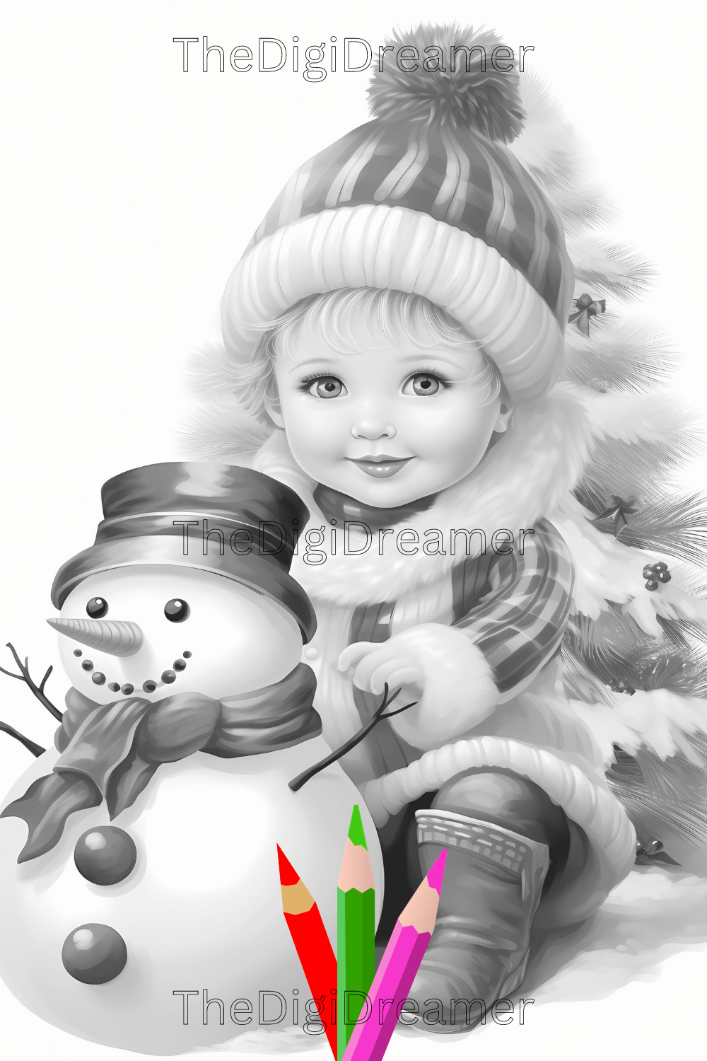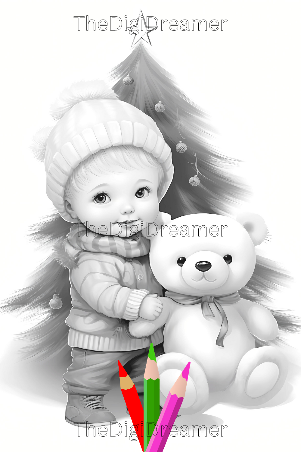 60 Christmas Babies Set 1-Printable Grayscale Coloring Pages, Digital download