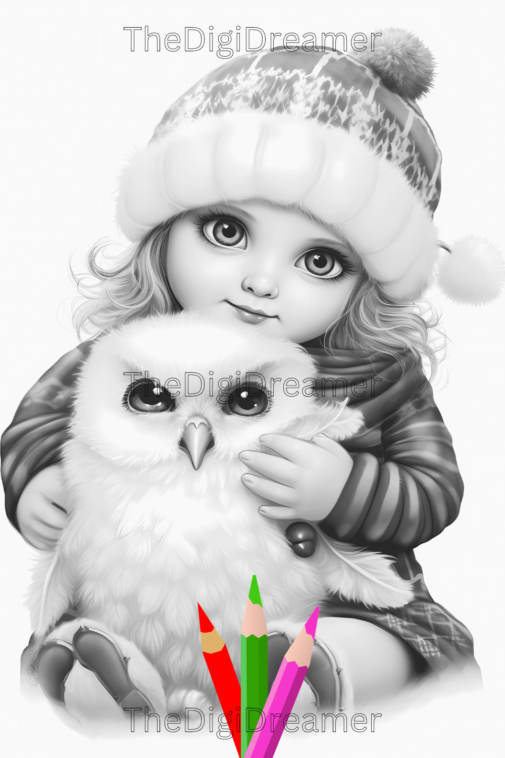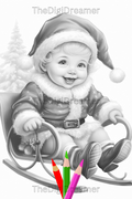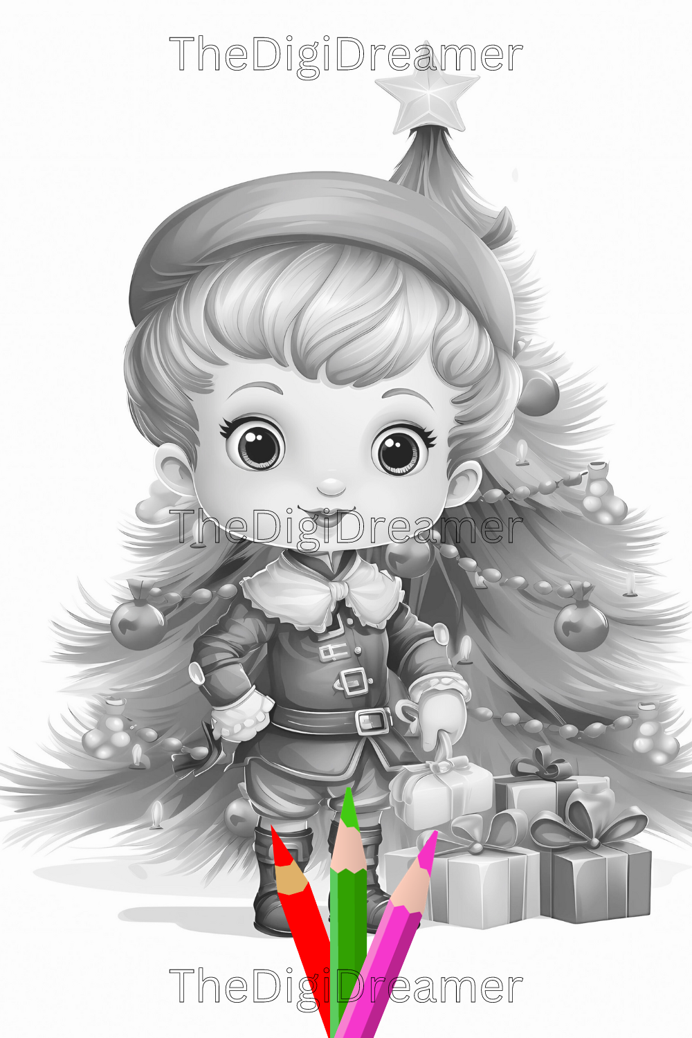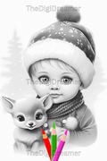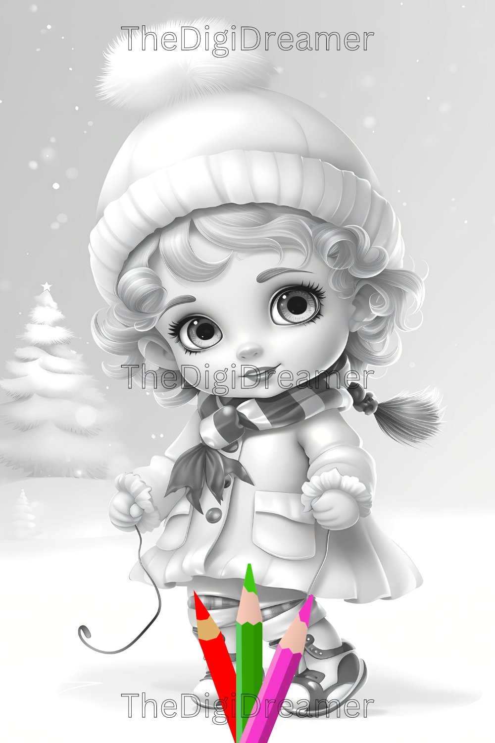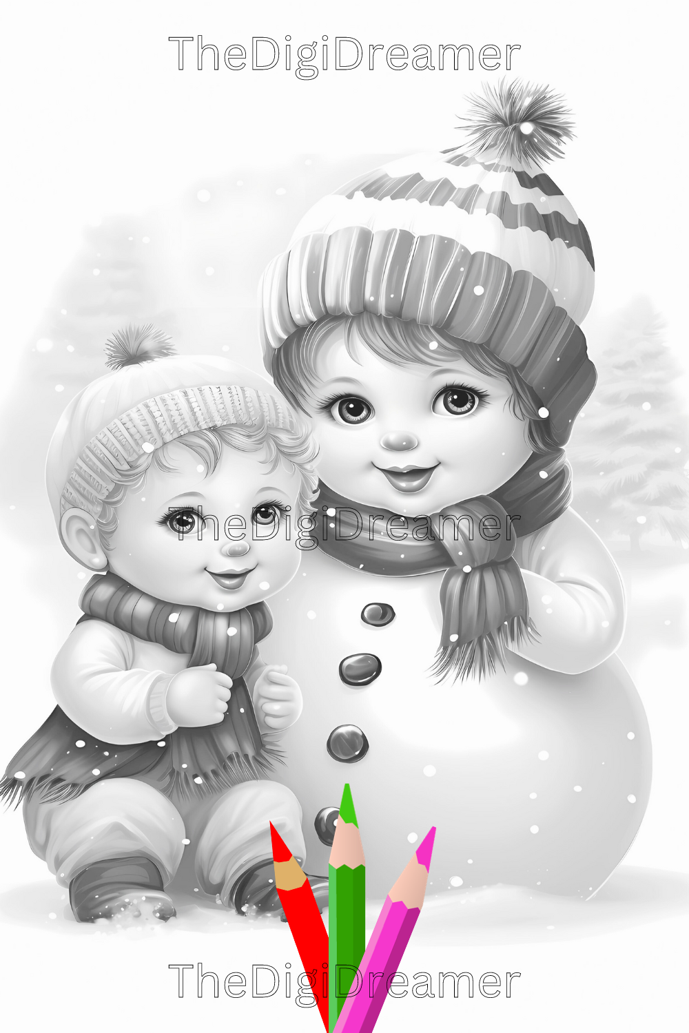 60 Christmas Babies Set 1-Printable Grayscale Coloring Pages, Digital download