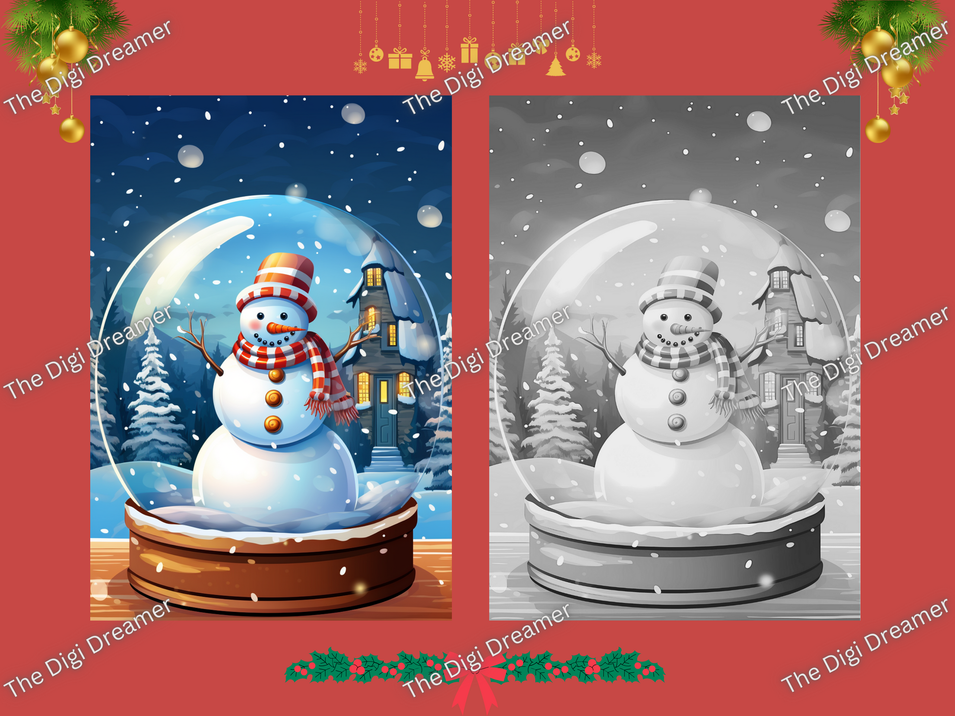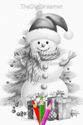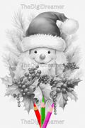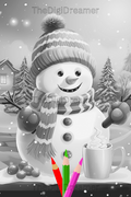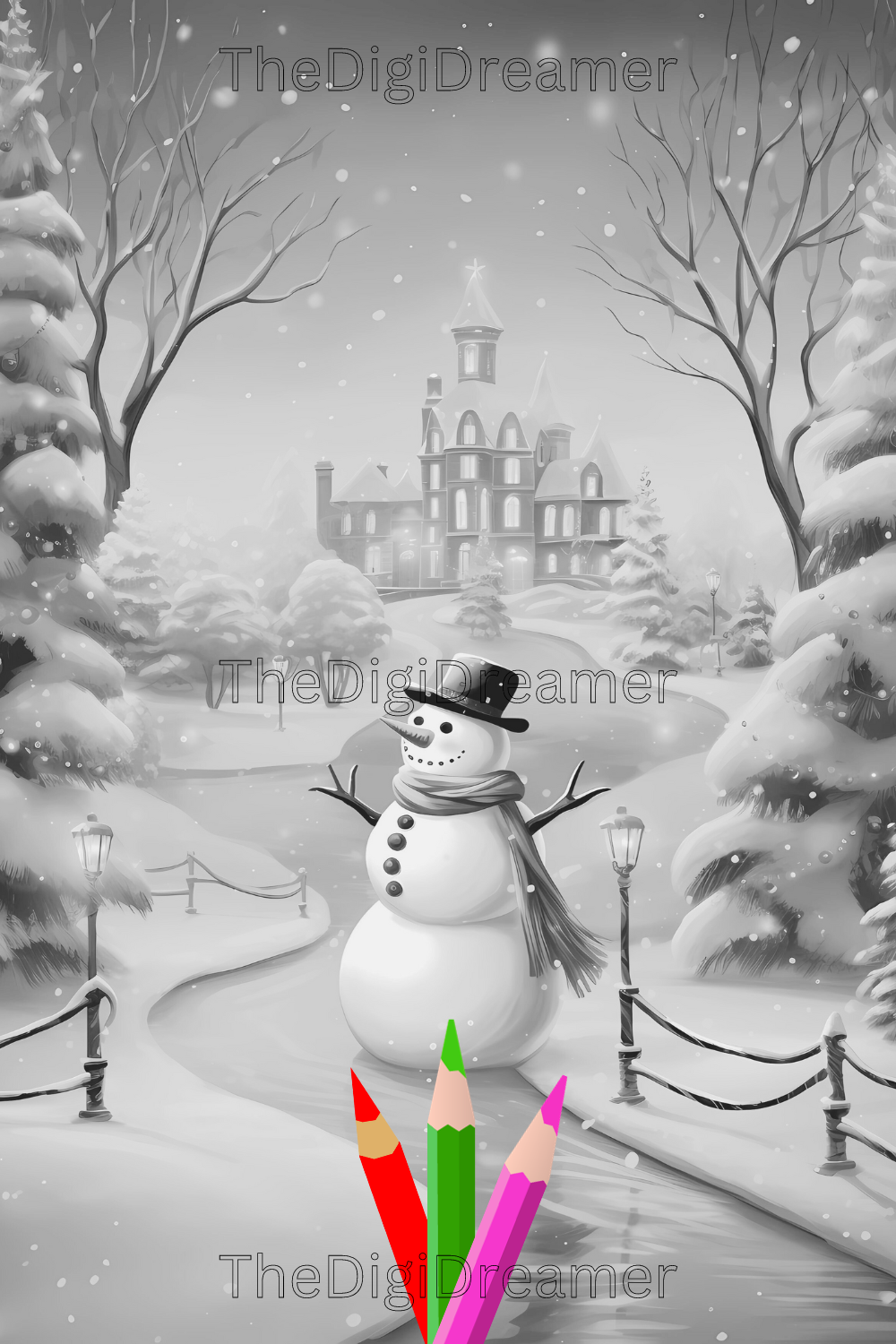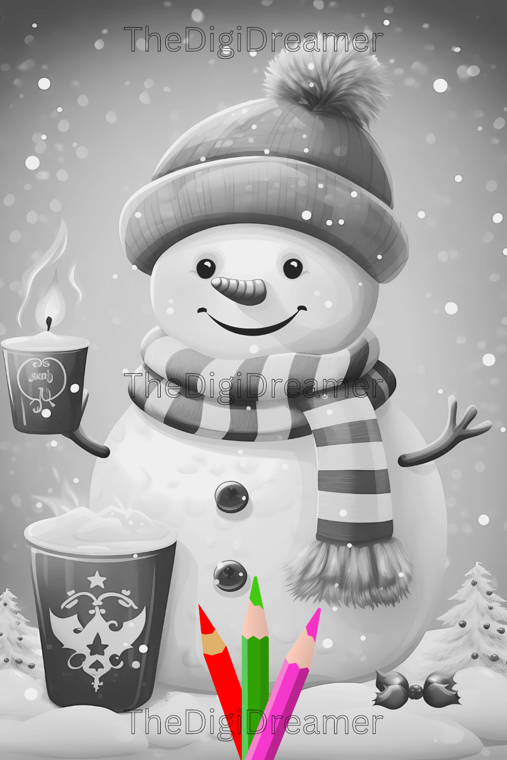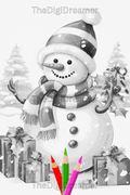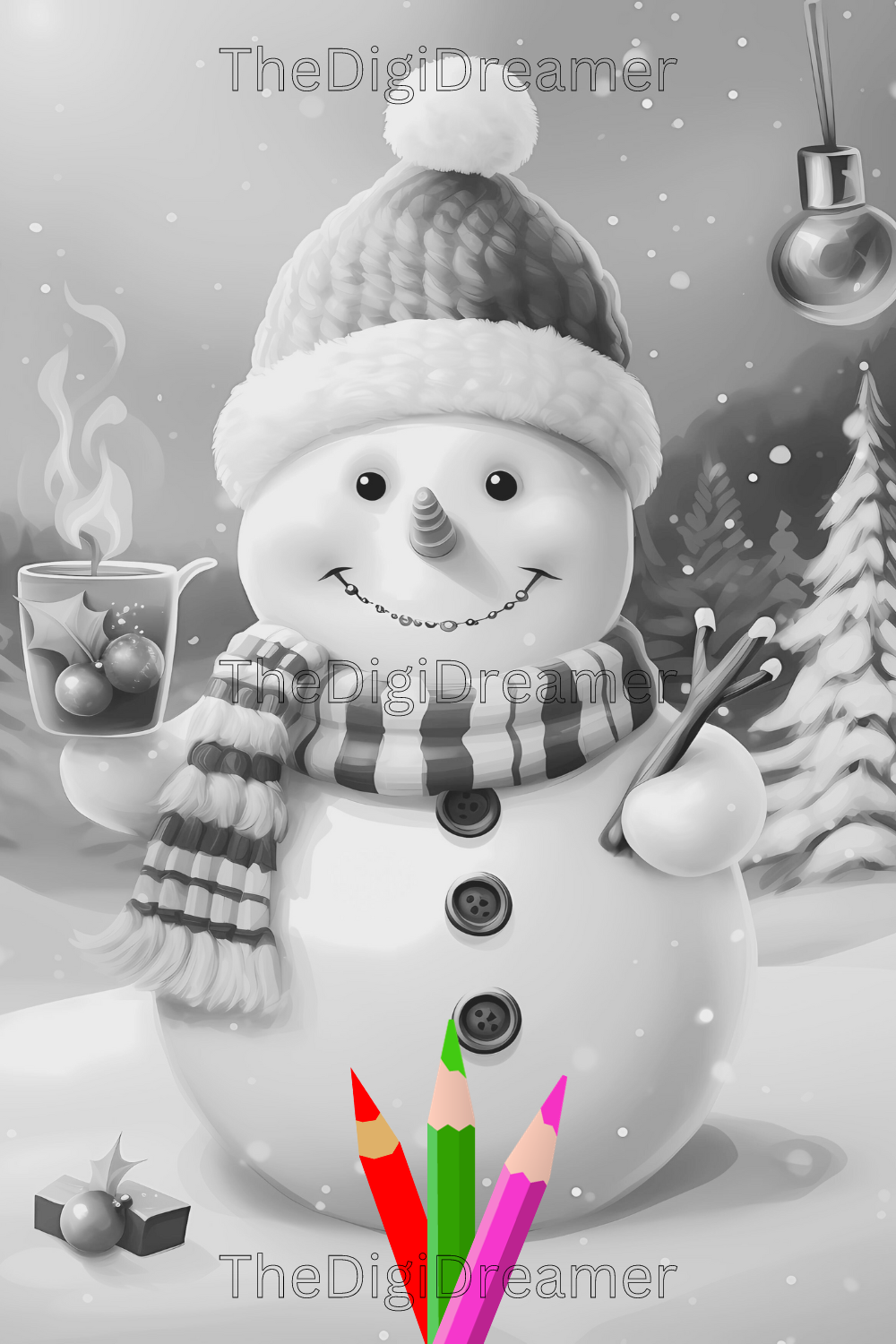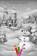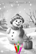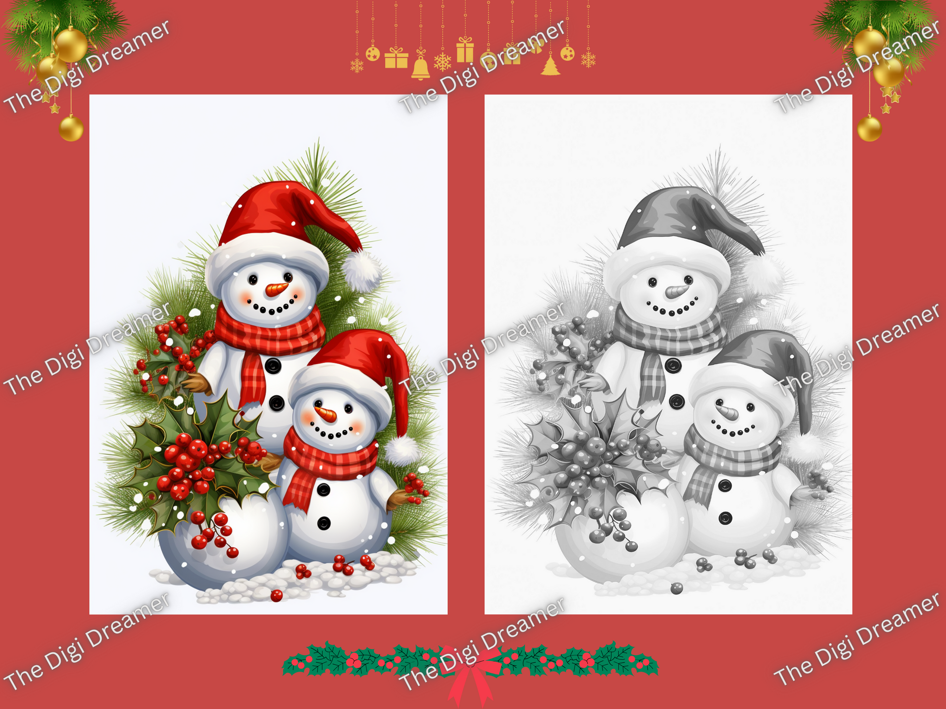 60 Christmas Snowmen Set 2-Printable Grayscale Coloring Pages, Digital download