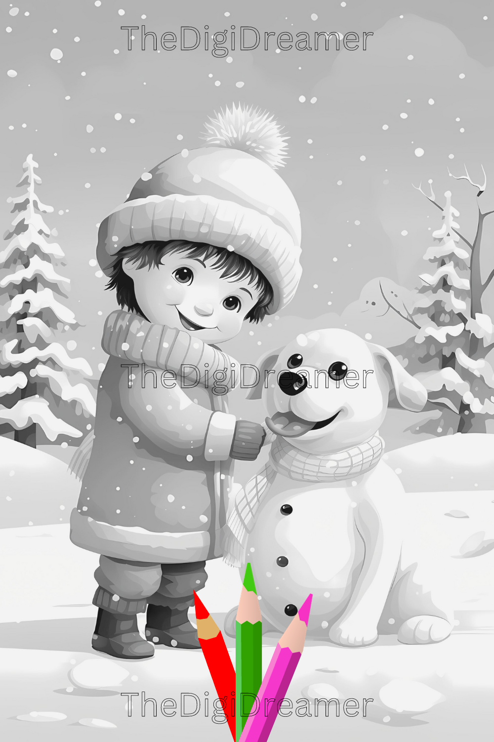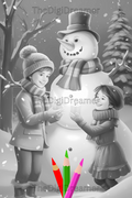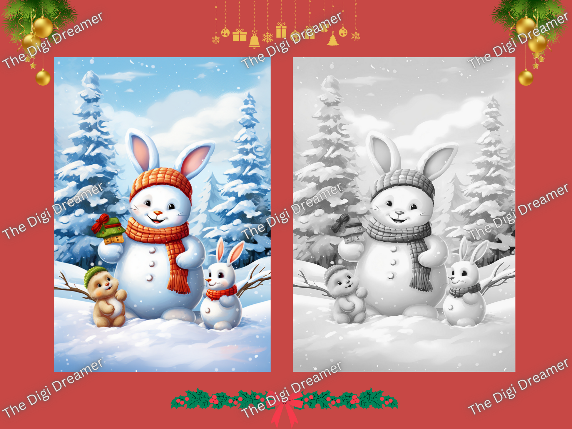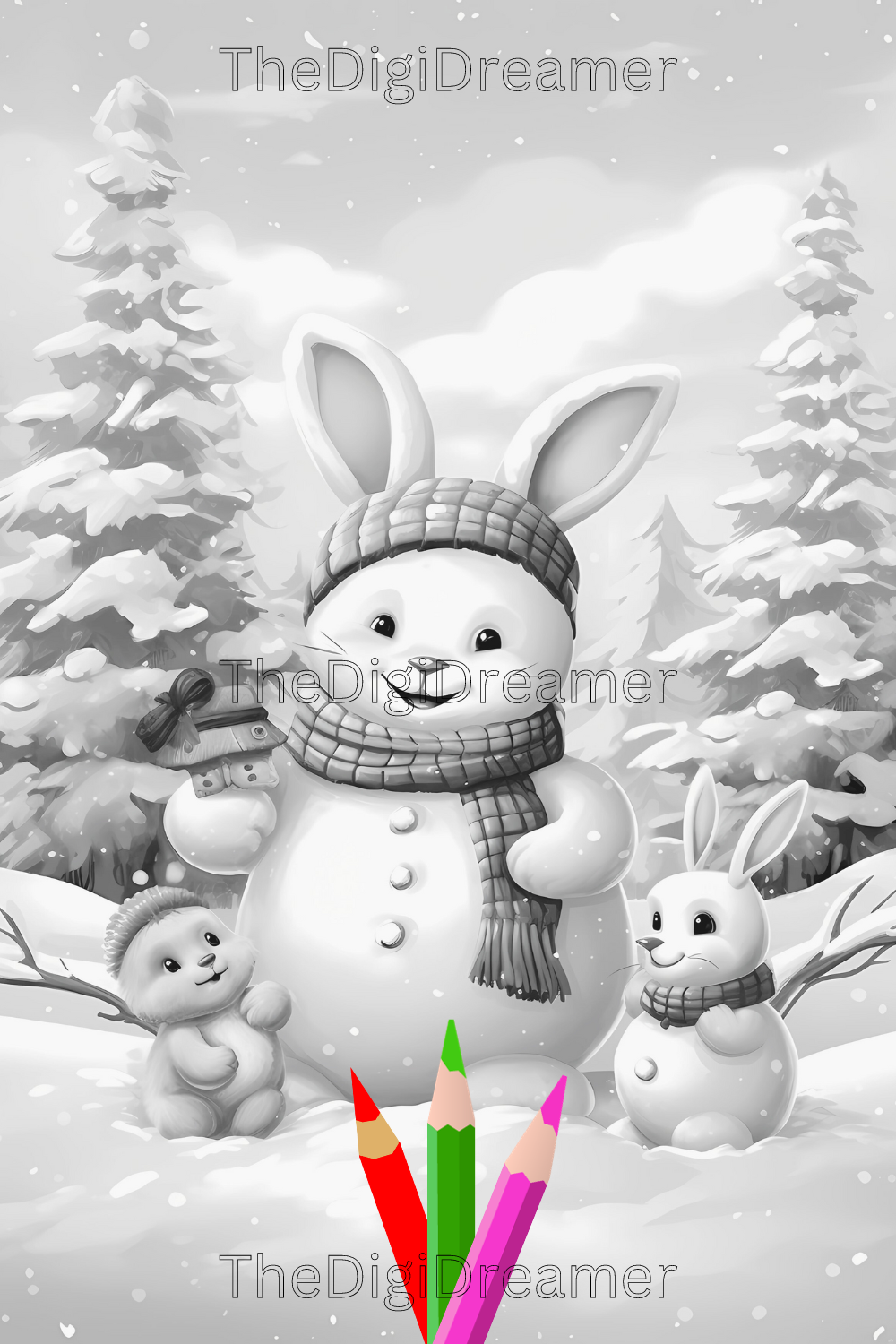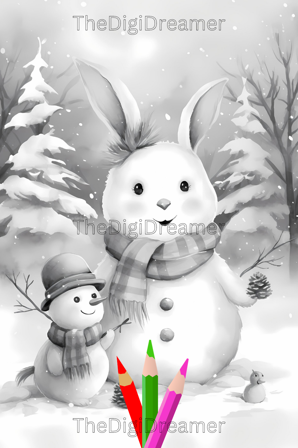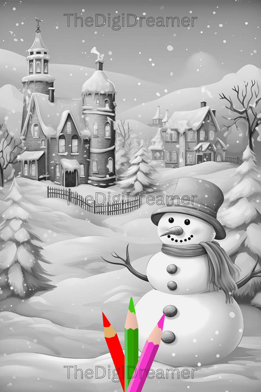 60 Christmas Snowmen Set 2-Printable Grayscale Coloring Pages, Digital download