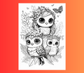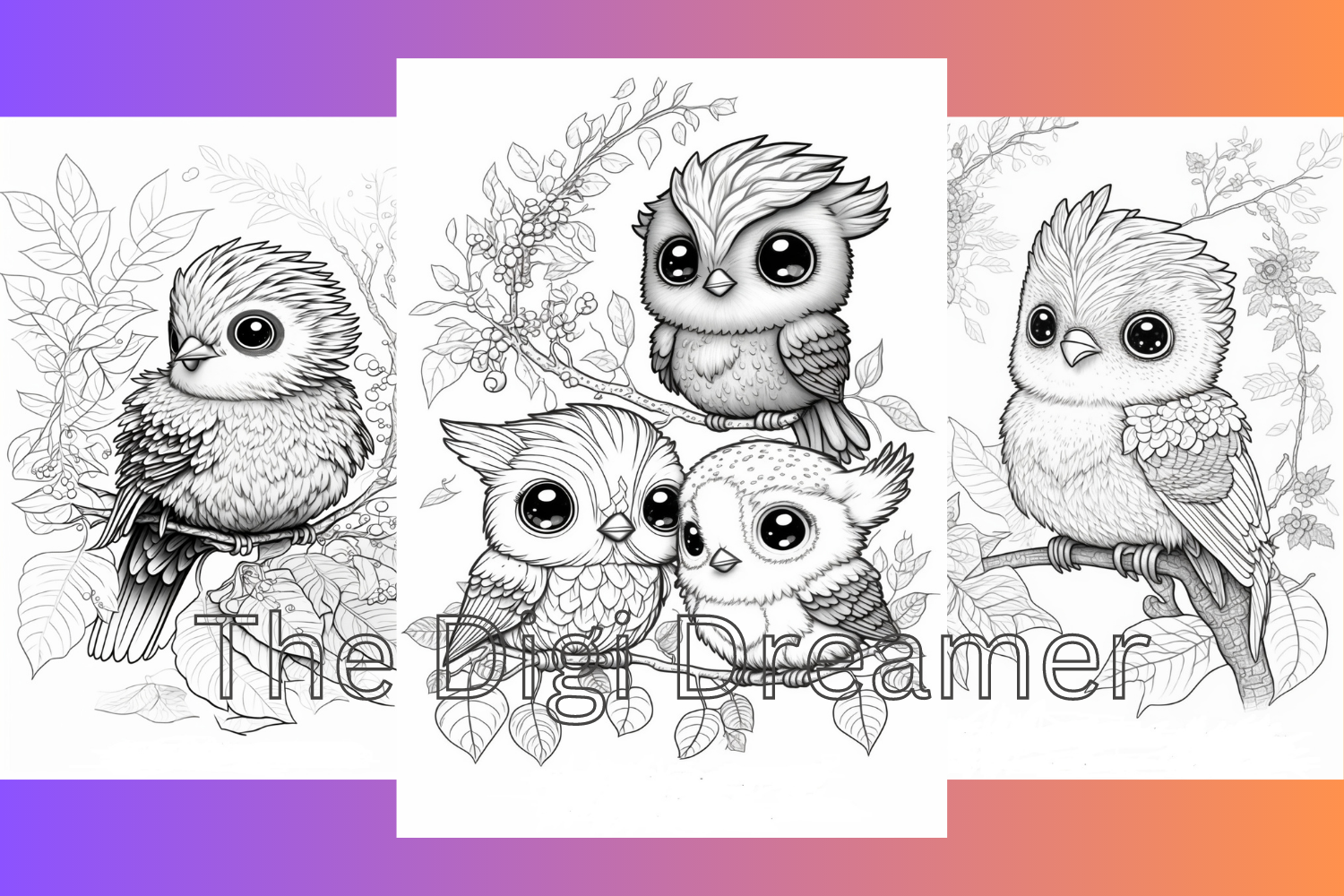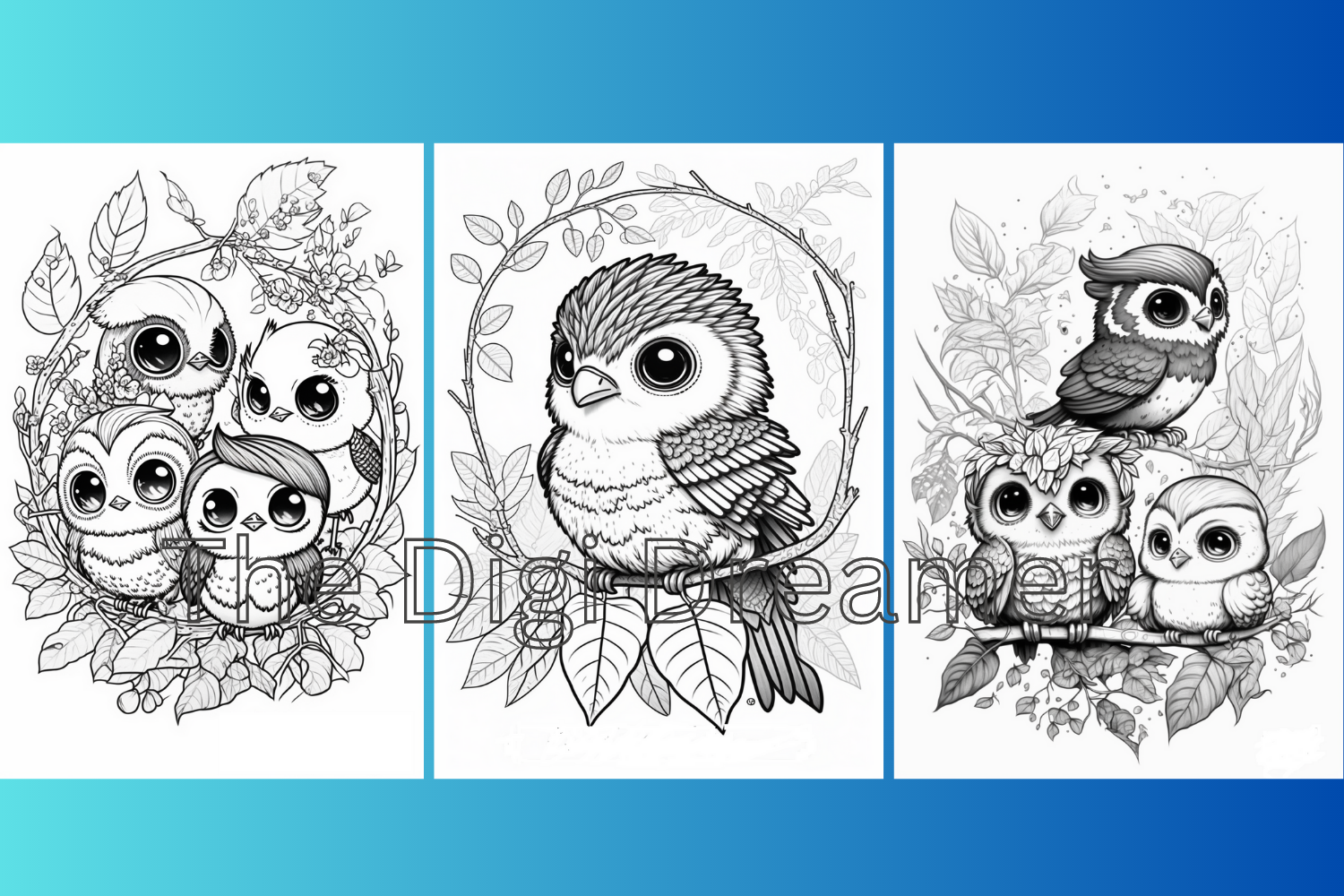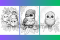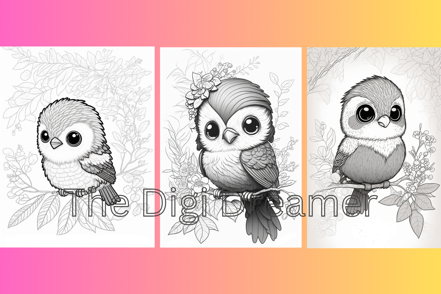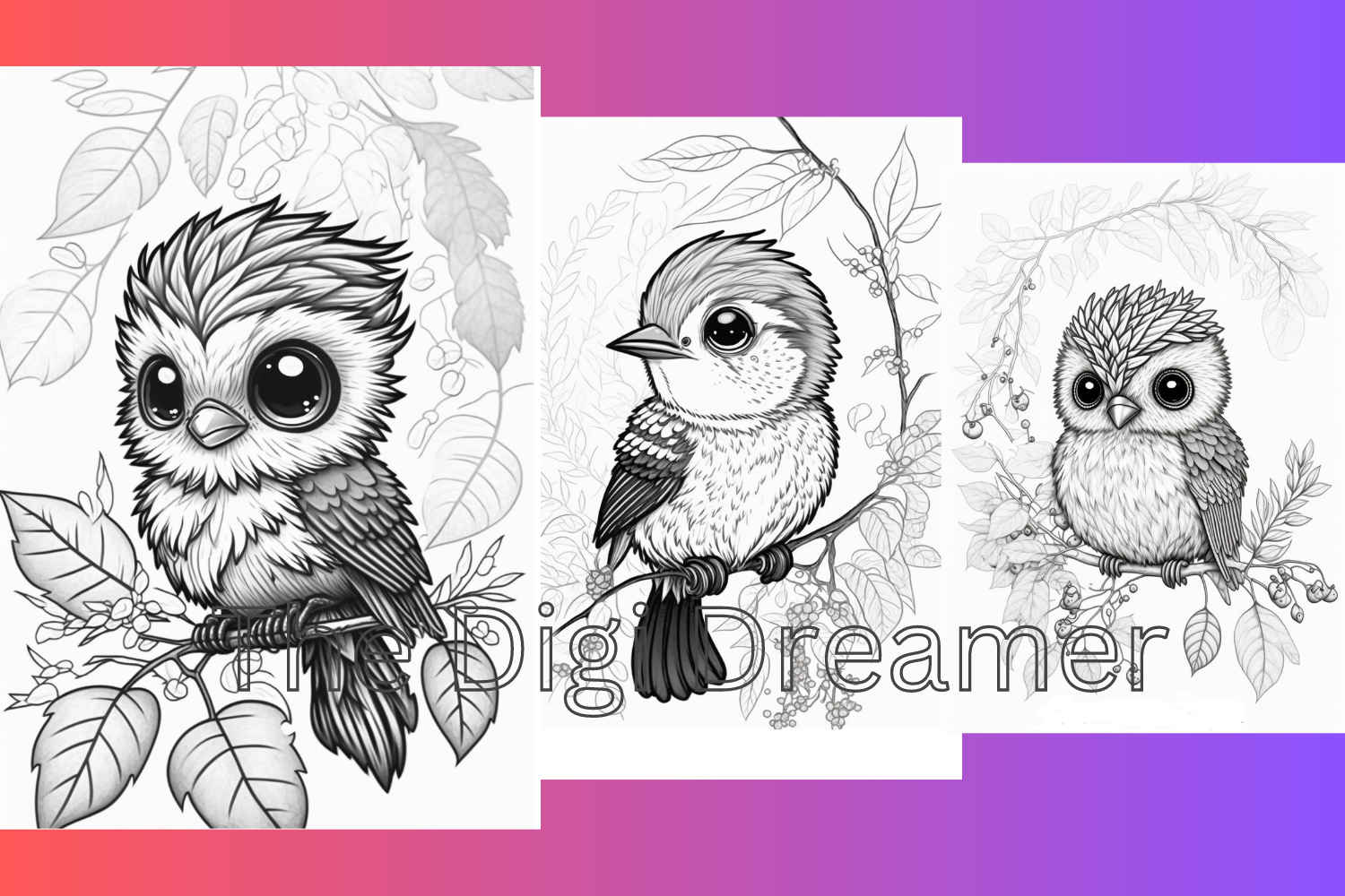 Adorable Cute Chirping Woodland Birds Grayscale Coloring Pages