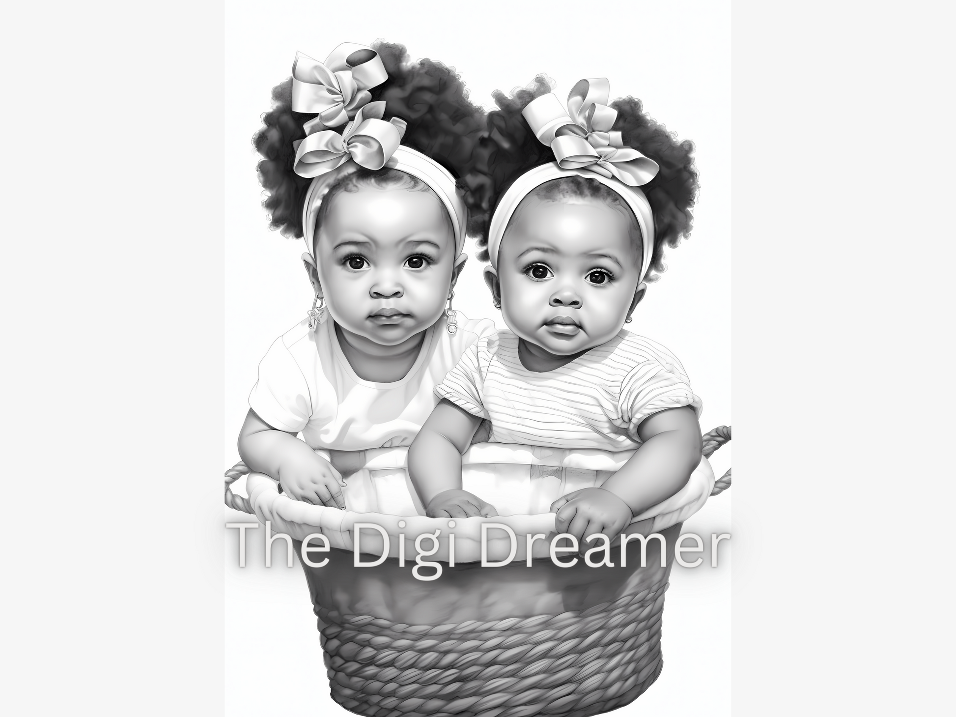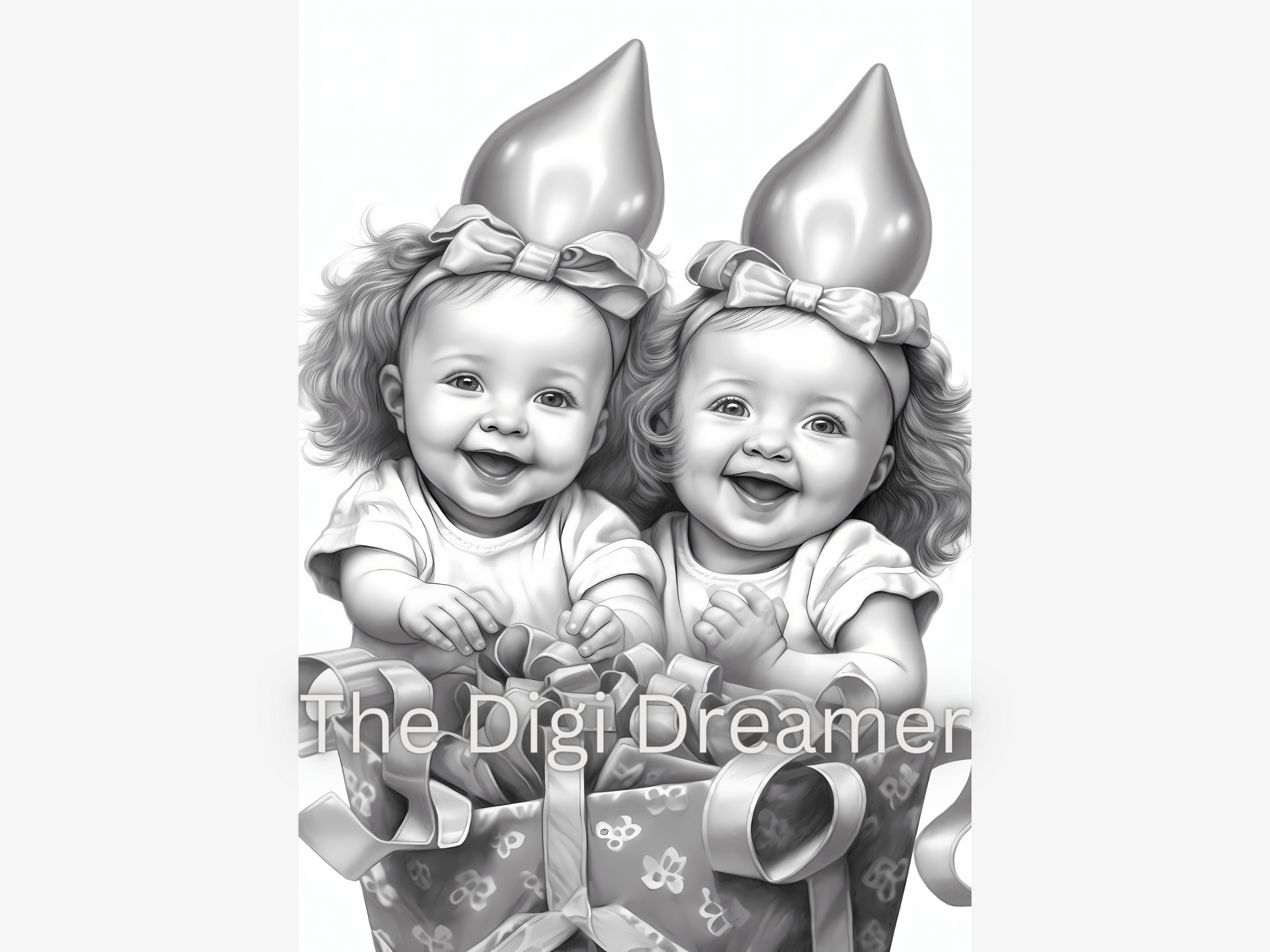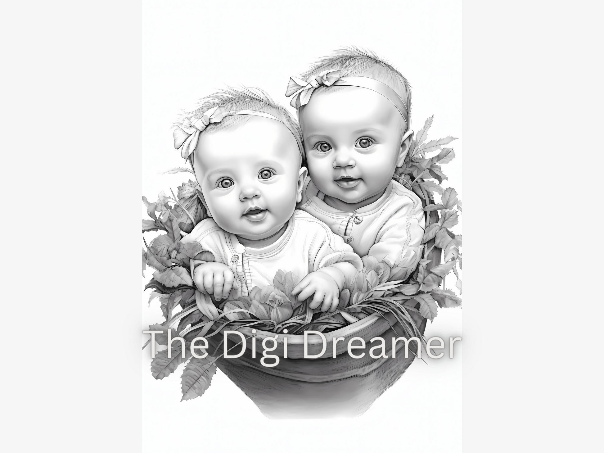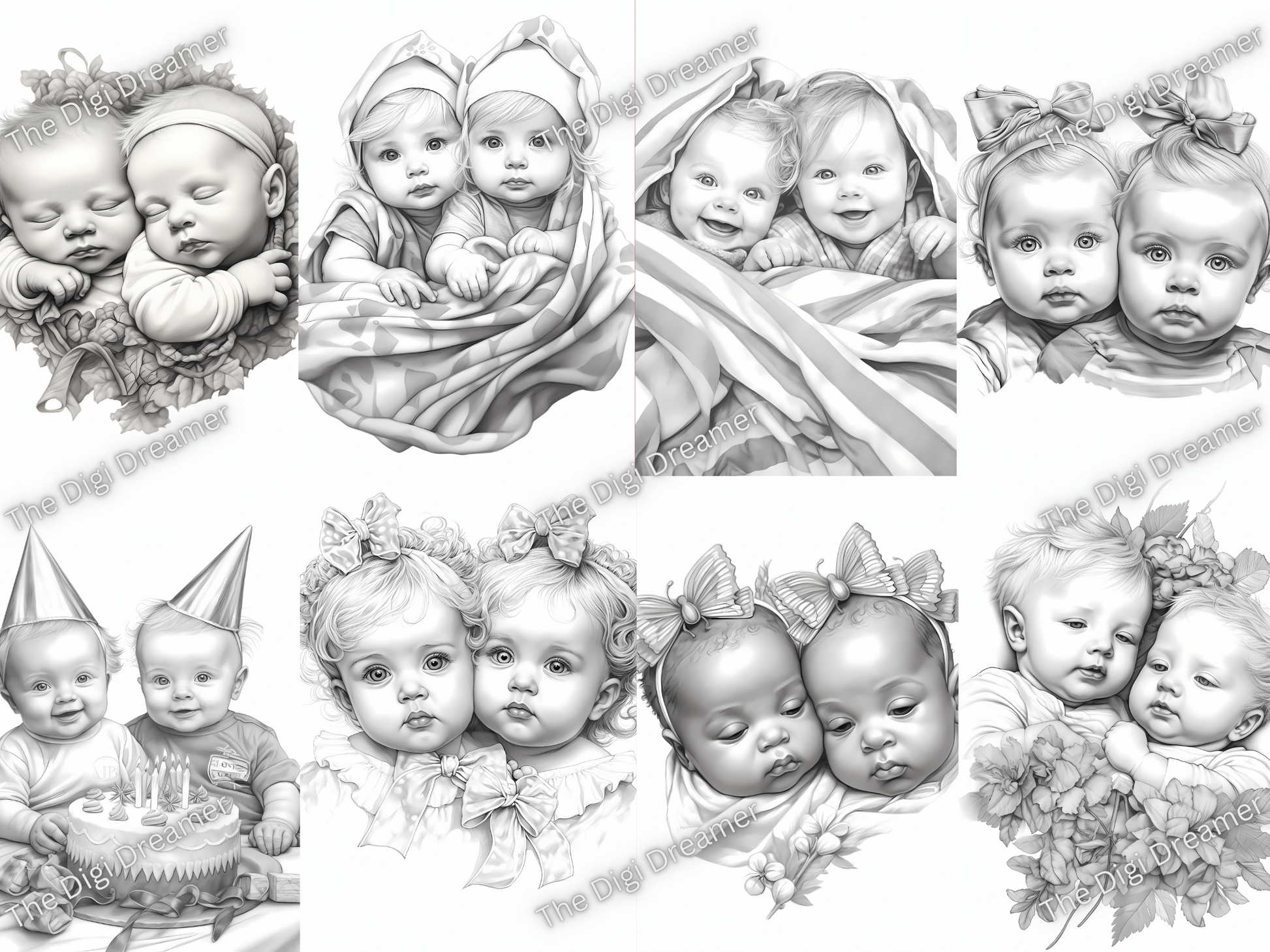 Adorable Twin Babies Grayscale Coloring Pages