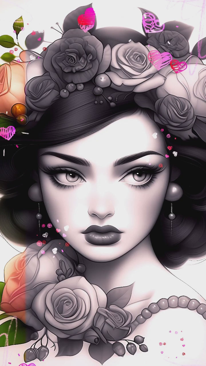 Once completed, your grayscale creation can be framed and displayed as a unique piece of art or given as a thoughtful gift to someone special. The timeless beauty of the girl with roses will surely captivate anyone who beholds it.