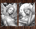 Beautiful Sleeping Fairies Grayscale Coloring Pages For Adults