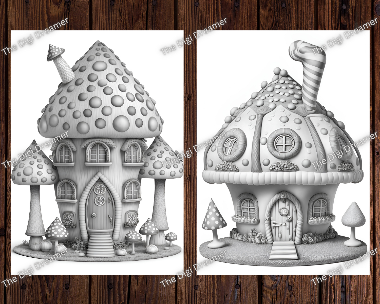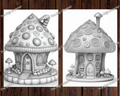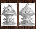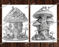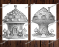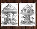 These grayscale coloring pages are also a wonderful gift idea for coloring enthusiasts, friends, or family members who appreciate the magic of candy mushroom houses.