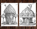 Candy Mushroom Houses Grayscale Coloring Pages For Adults & Kids