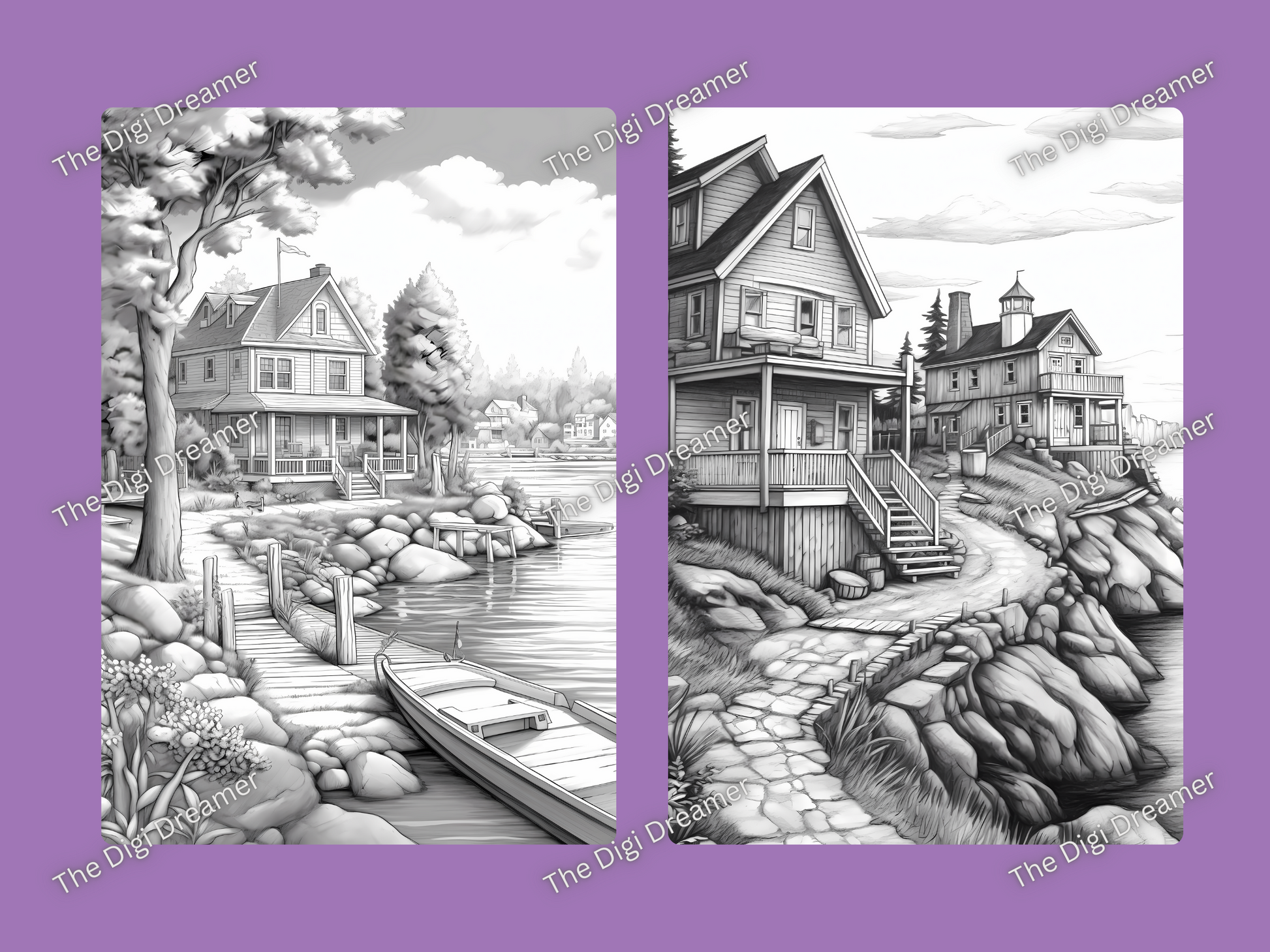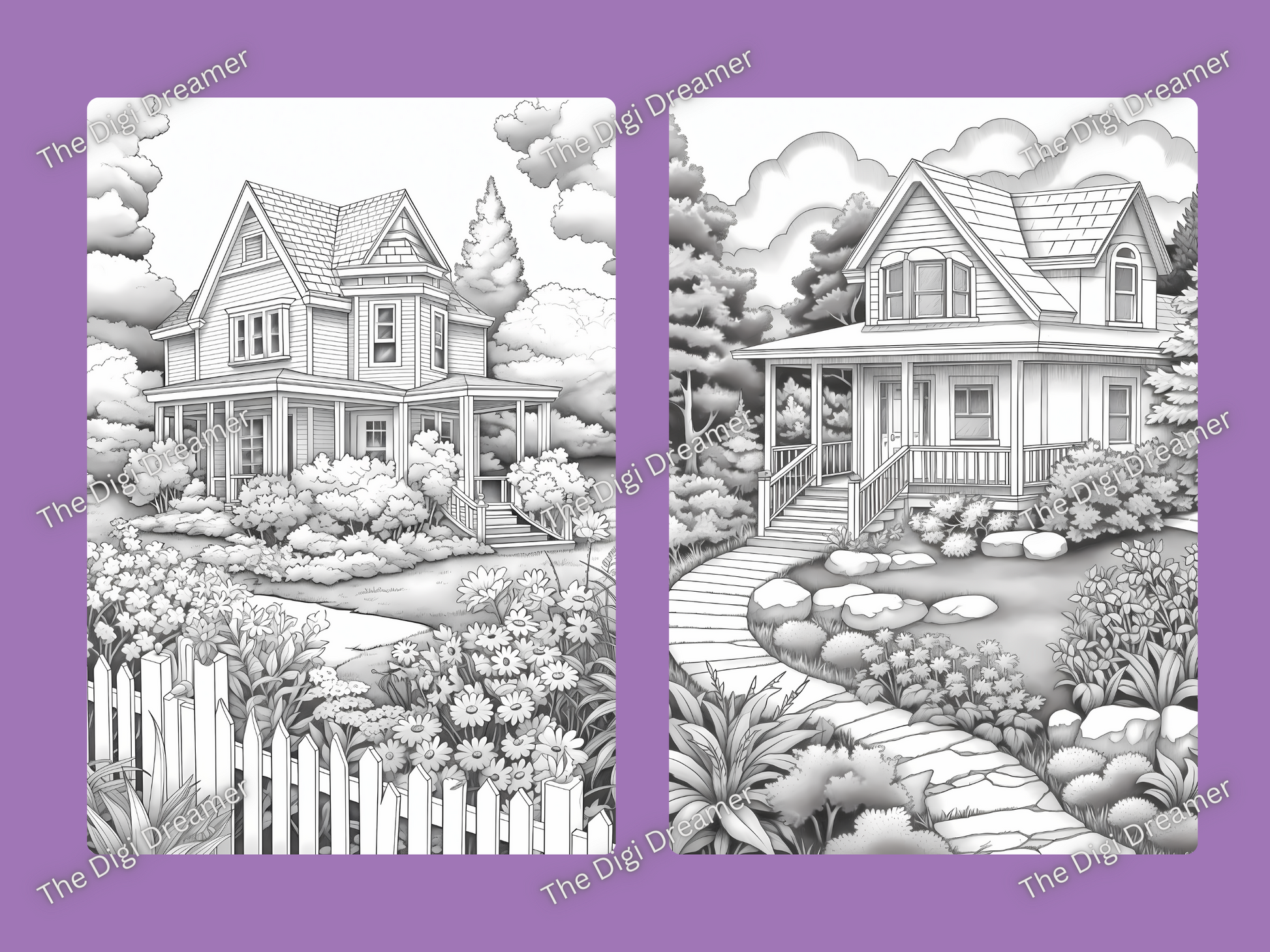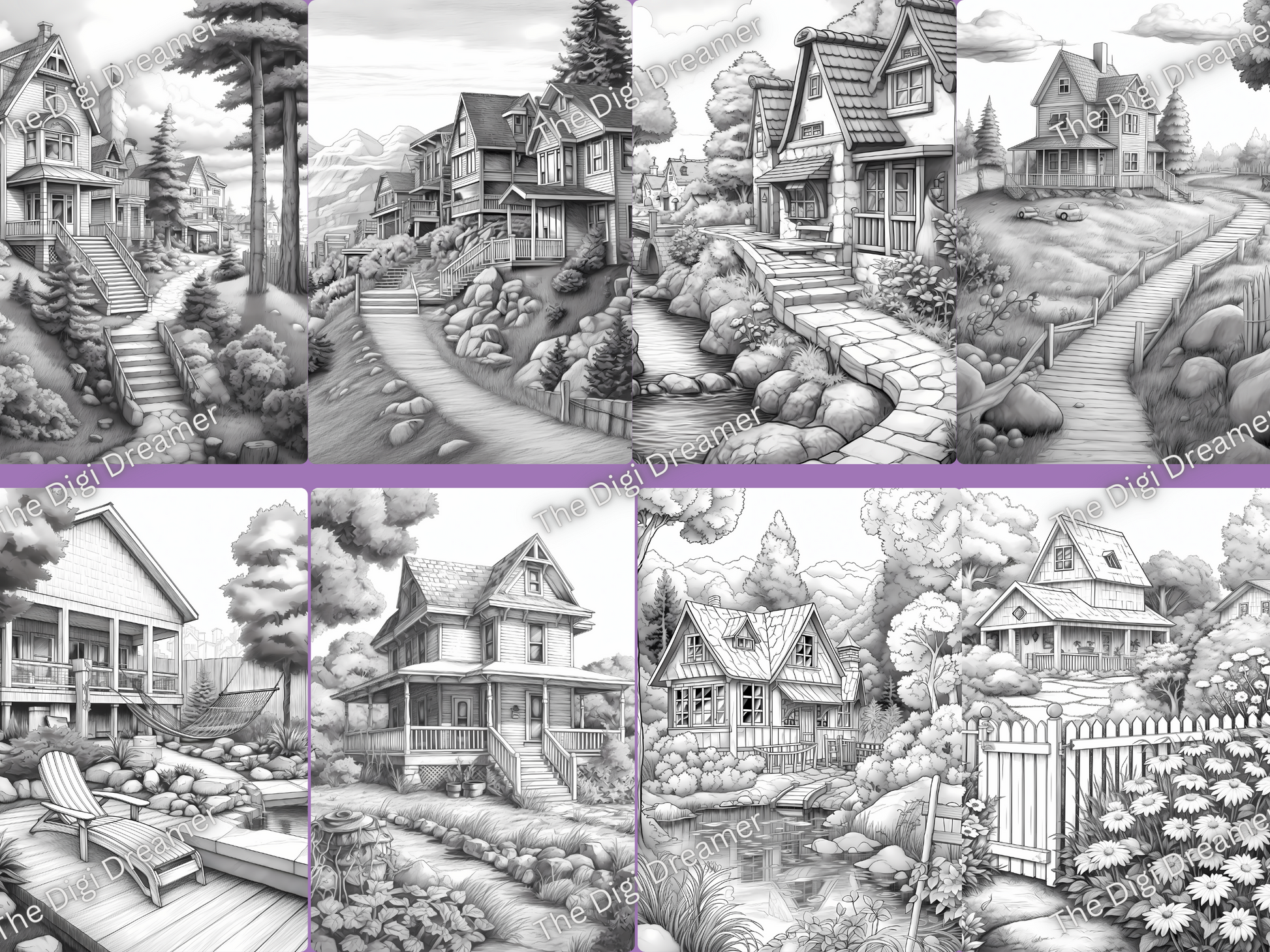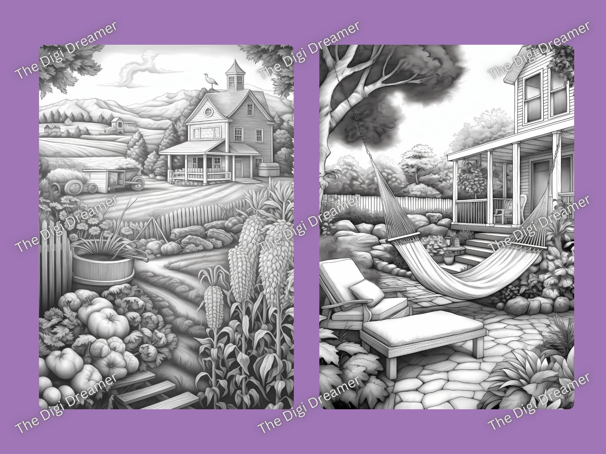 Escape to the tranquil charm of the countryside with our captivating collection of "Countryside Houses" grayscale coloring pages. These digital coloring pages are not only a joy to color but also make wonderful decorative pieces or thoughtful gifts for nature lovers, fans of rustic aesthetics, or anyone seeking a moment of tranquility.
