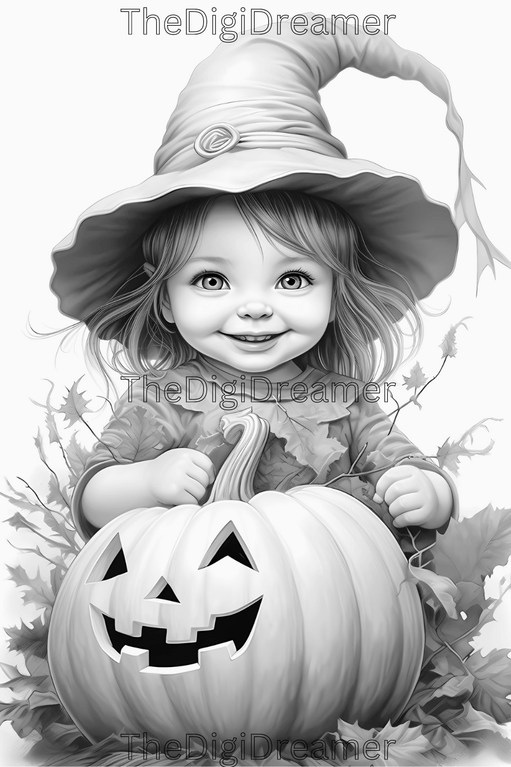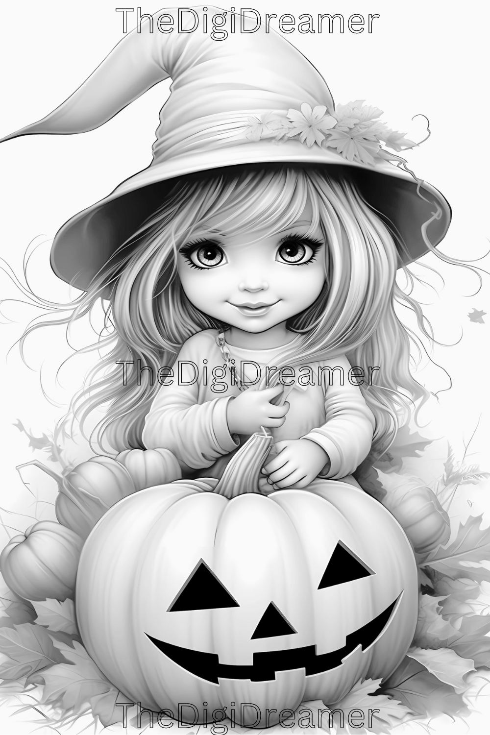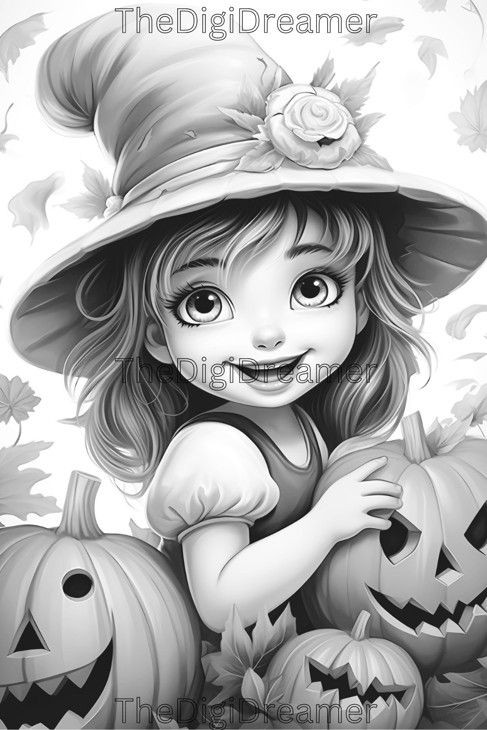 Enter a world of enchantment with our collection of cute witches and Halloween grayscale coloring pages. This coloring book includes 30 coloring pages.
