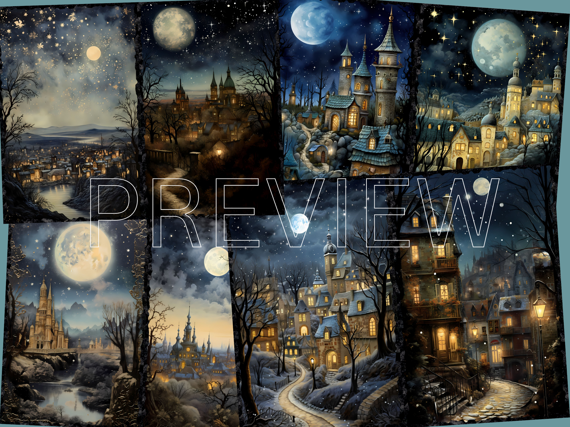 Enchanting Magical Nights-Printable Junk Journal Kit, Journal Pages, ATC Cards, Digital Download