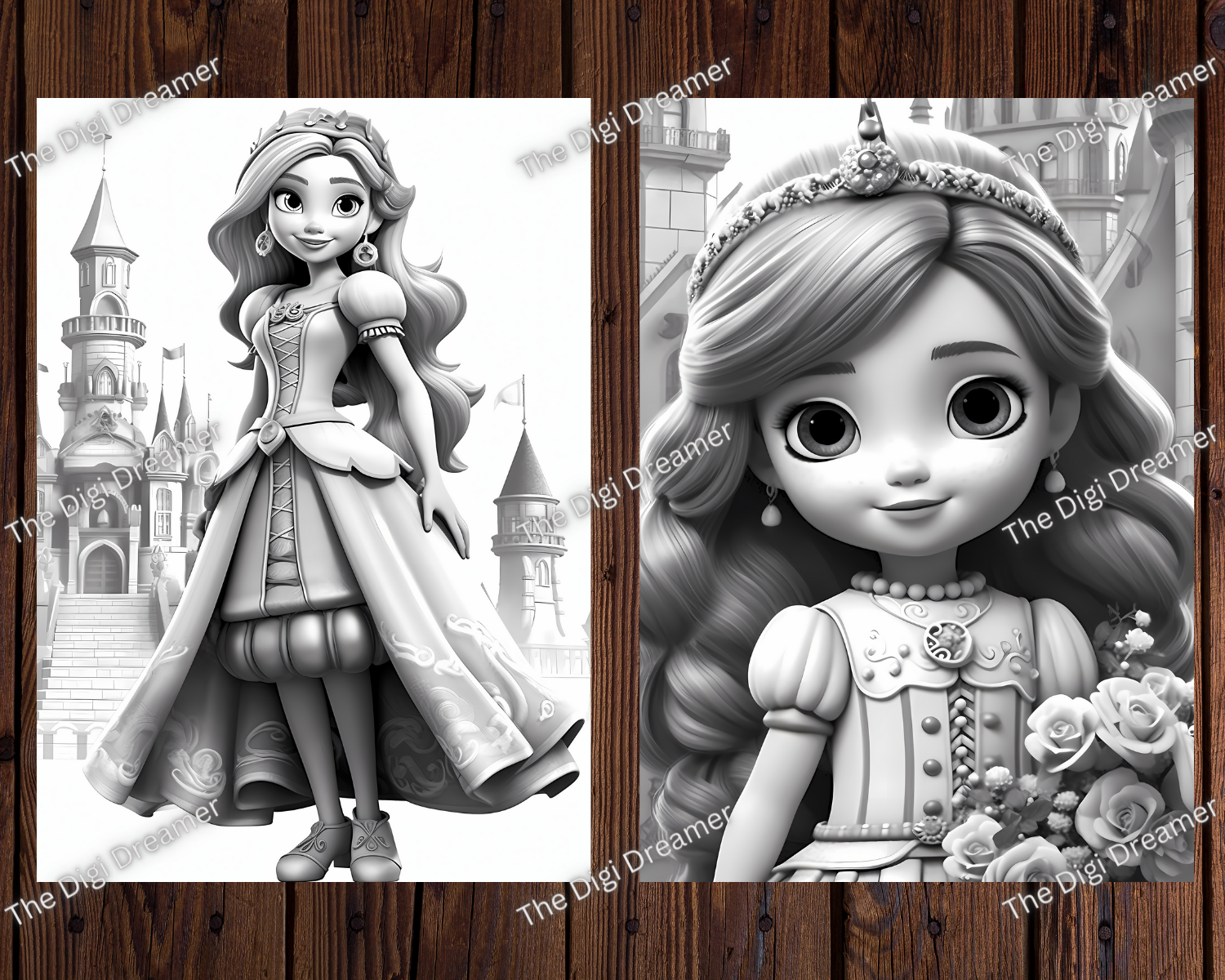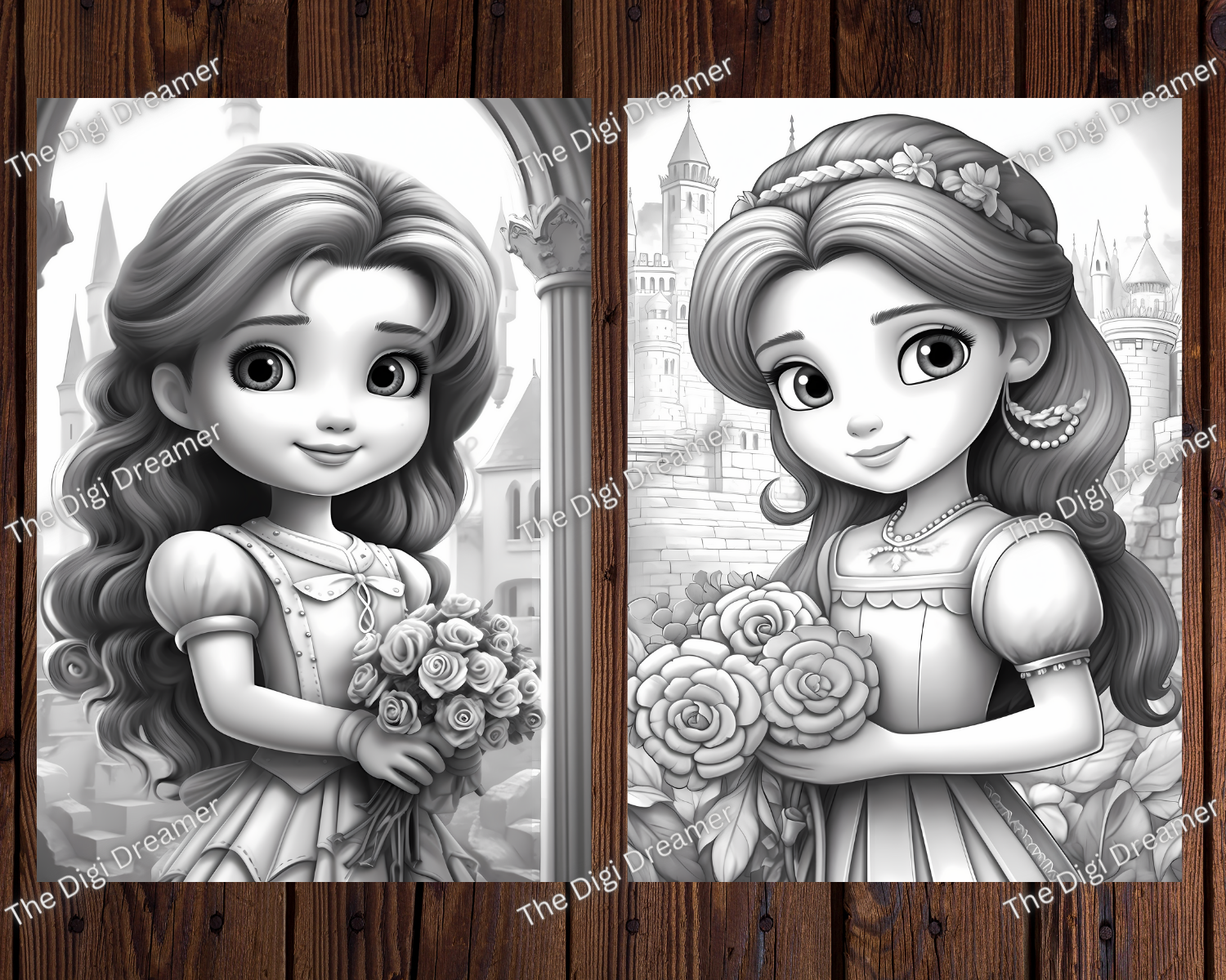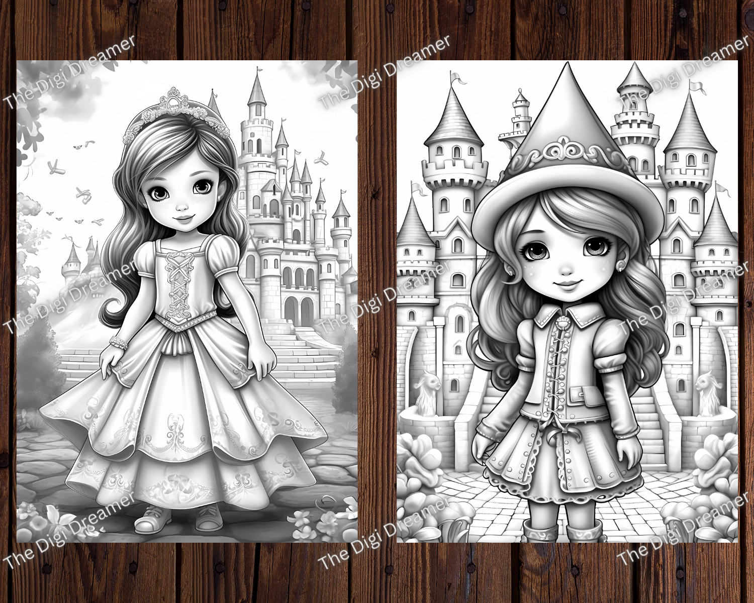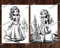 Discover a world of enchantment with our collection of castle princess grayscale coloring pages. This digital download offers a captivating selection of printable coloring pages featuring majestic castles and graceful princesses, all rendered in a stunning grayscale format.