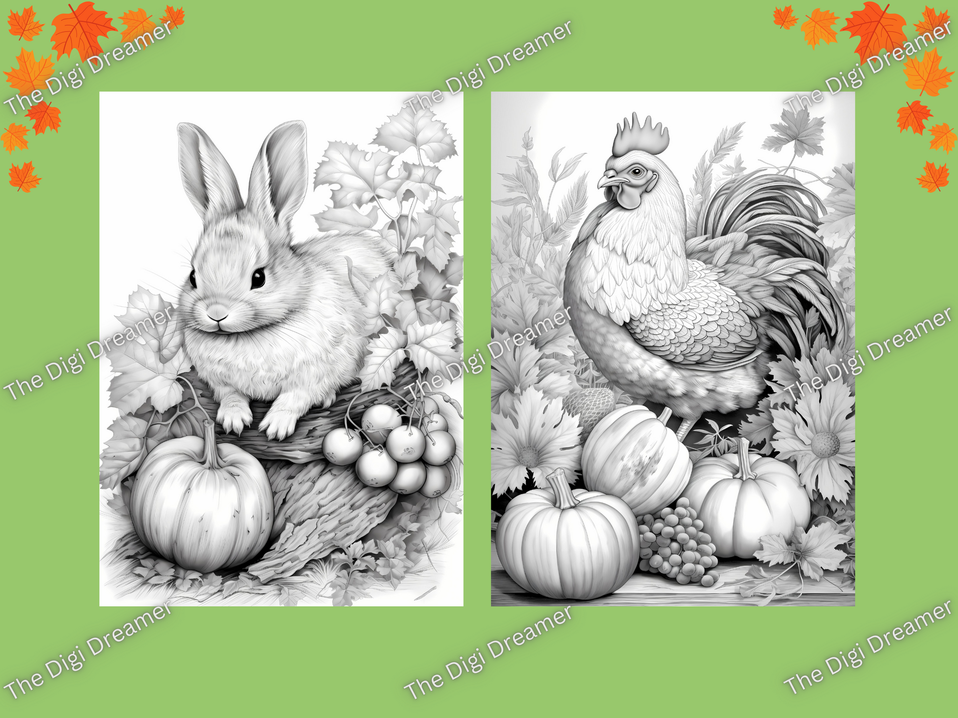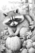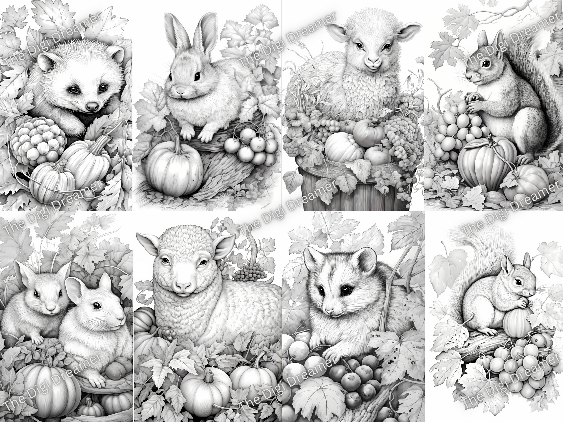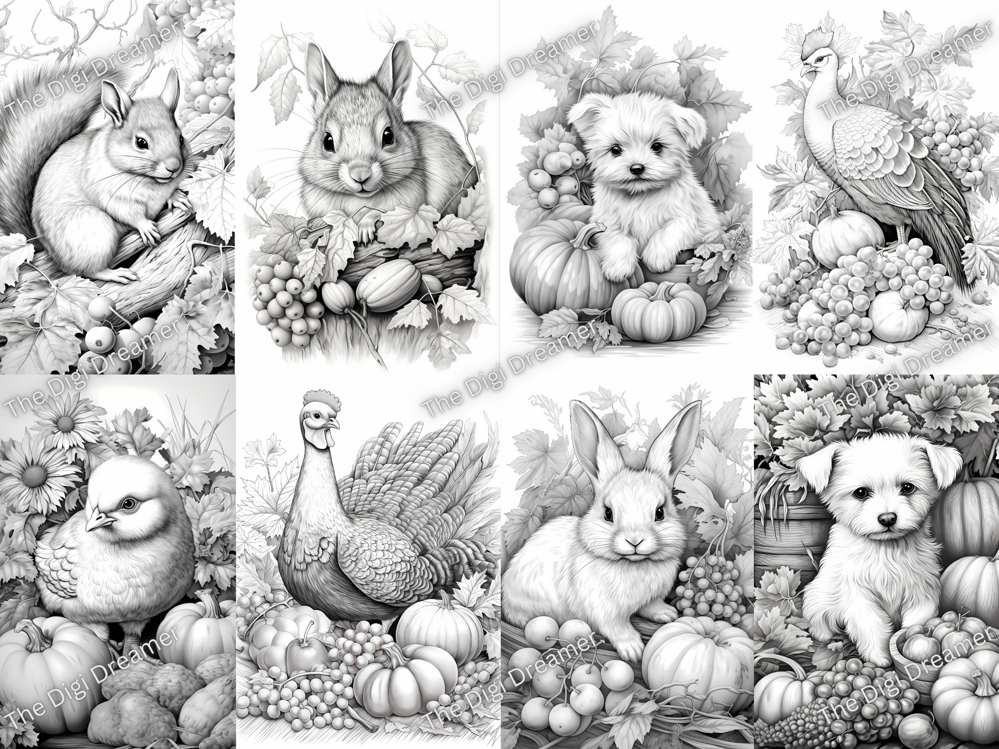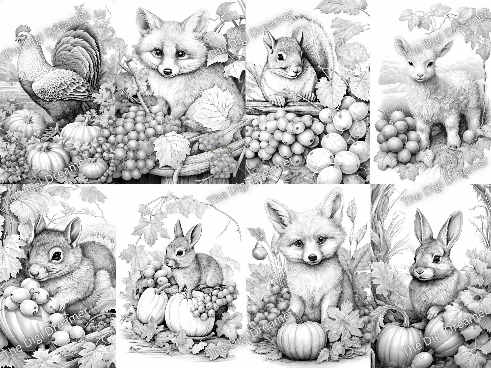 Fall Animals Set2-Printable Grayscale Coloring Pages, Digital download