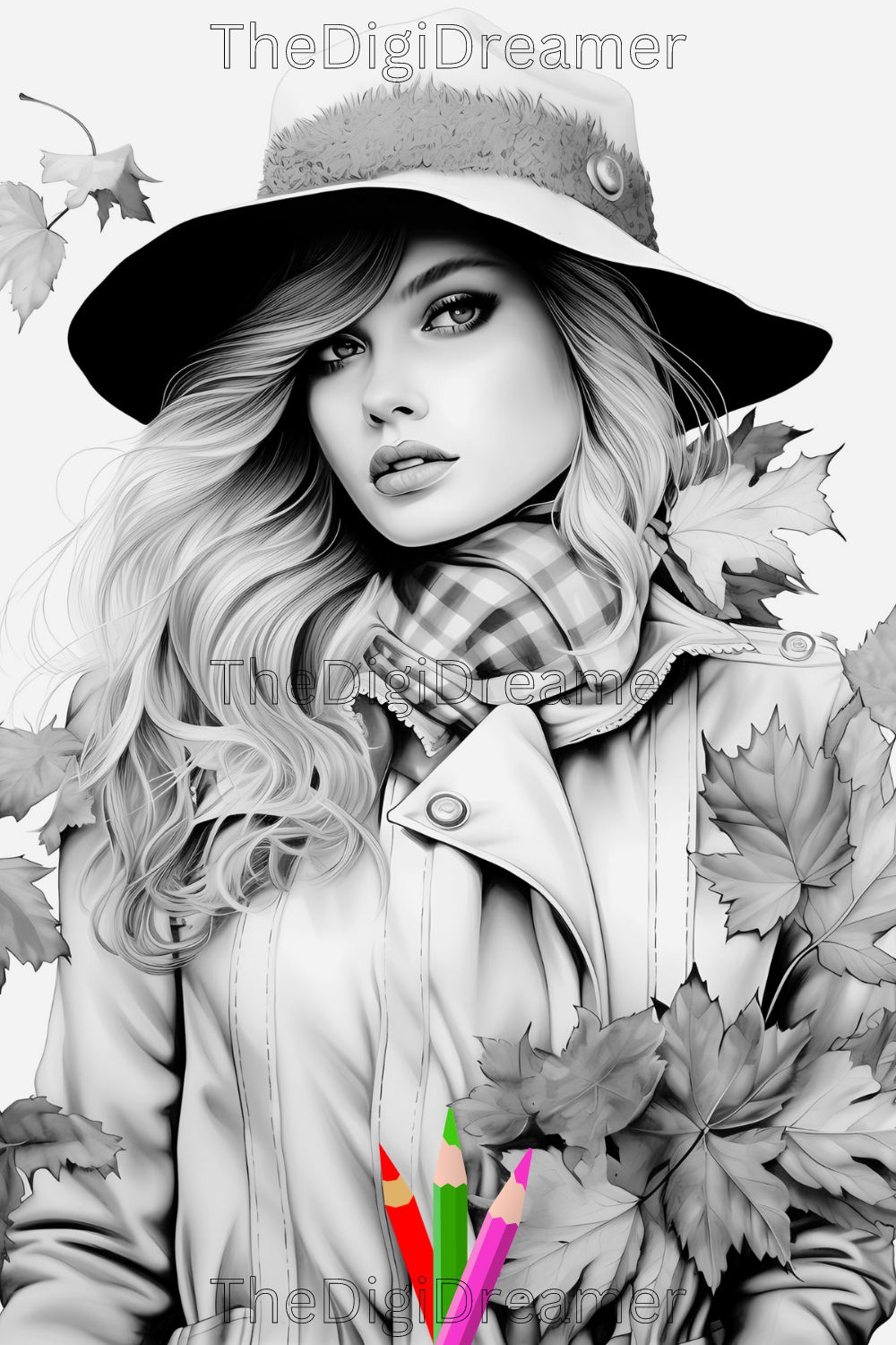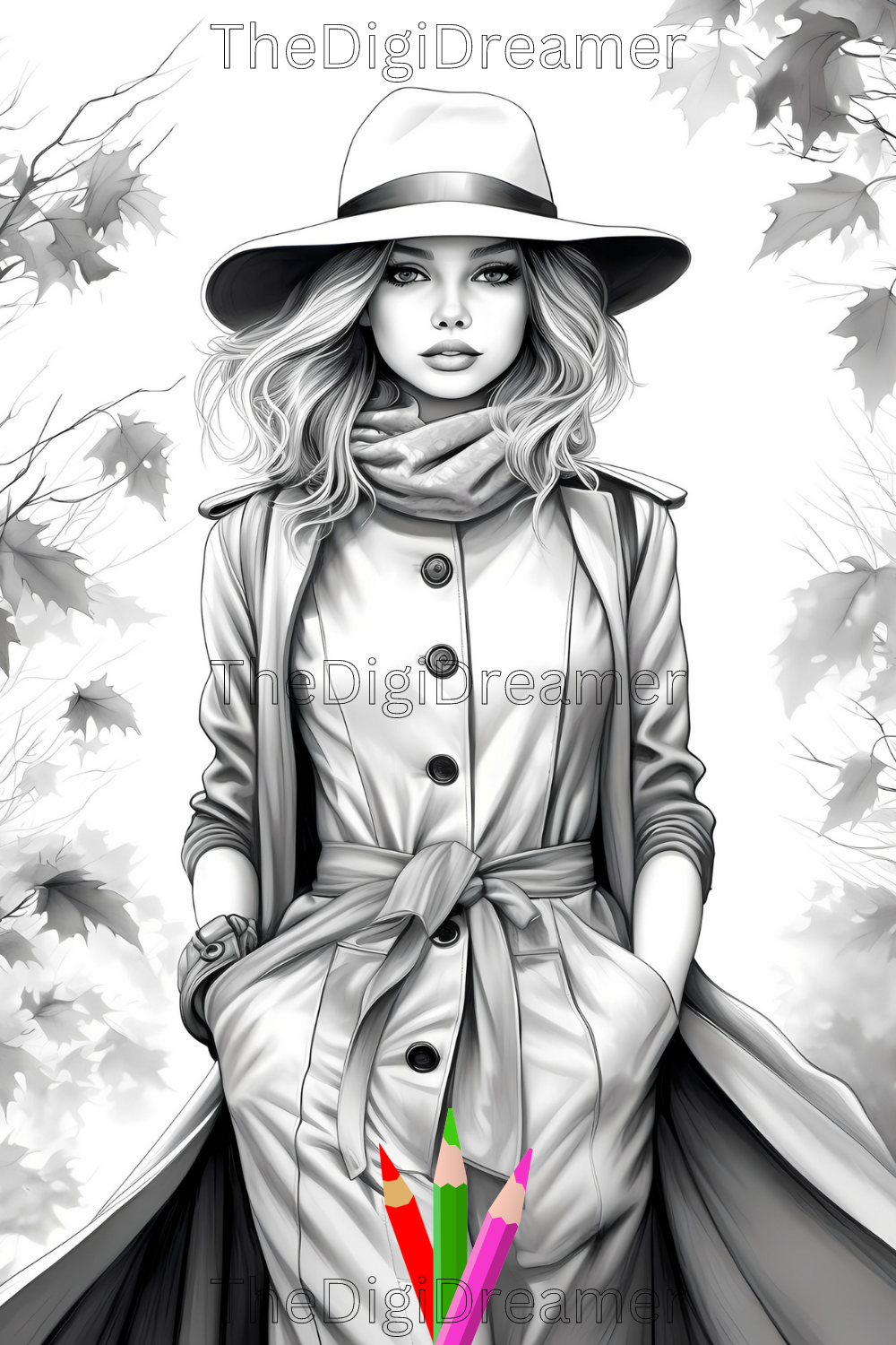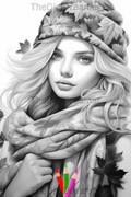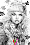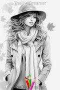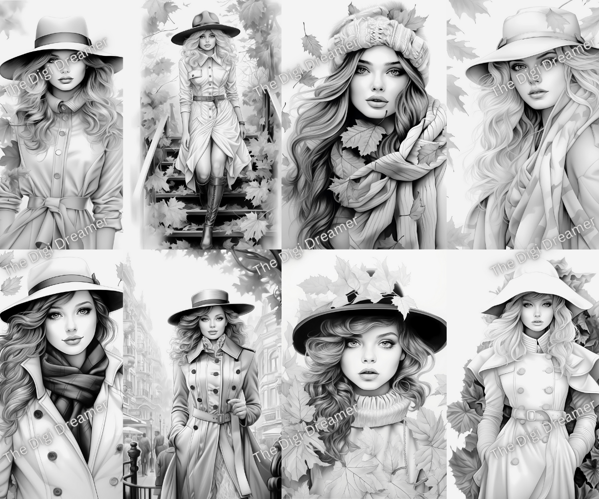Fall Fashion - Printable Grayscale Coloring Pages, Digital download