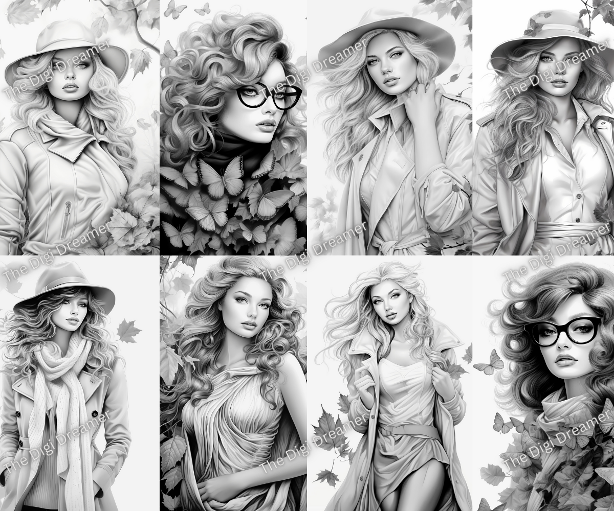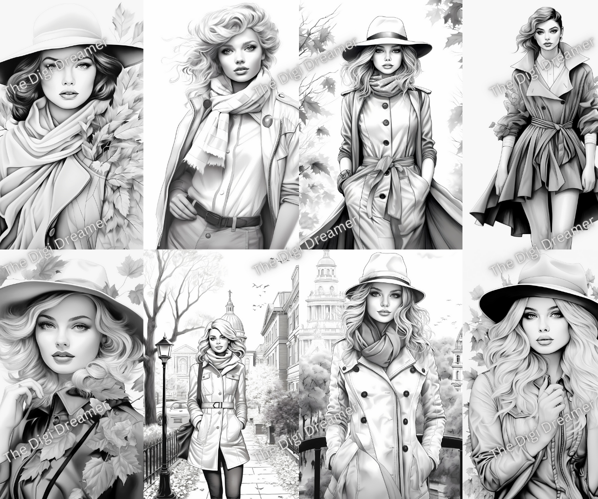 Fall Fashion Coloring Pages: Create Your Stylish Autumn Wardrobe - with our fall fashion-themed coloring pages. Unleash your inner designer as you add color to trendy outfits, cozy sweaters, and chic accessories perfect for the season. Get ready to showcase your artistic flair with these fashionable fall coloring pages. Download and start coloring today! This coloring book includes 40 coloring pages.