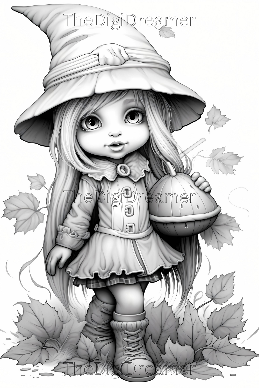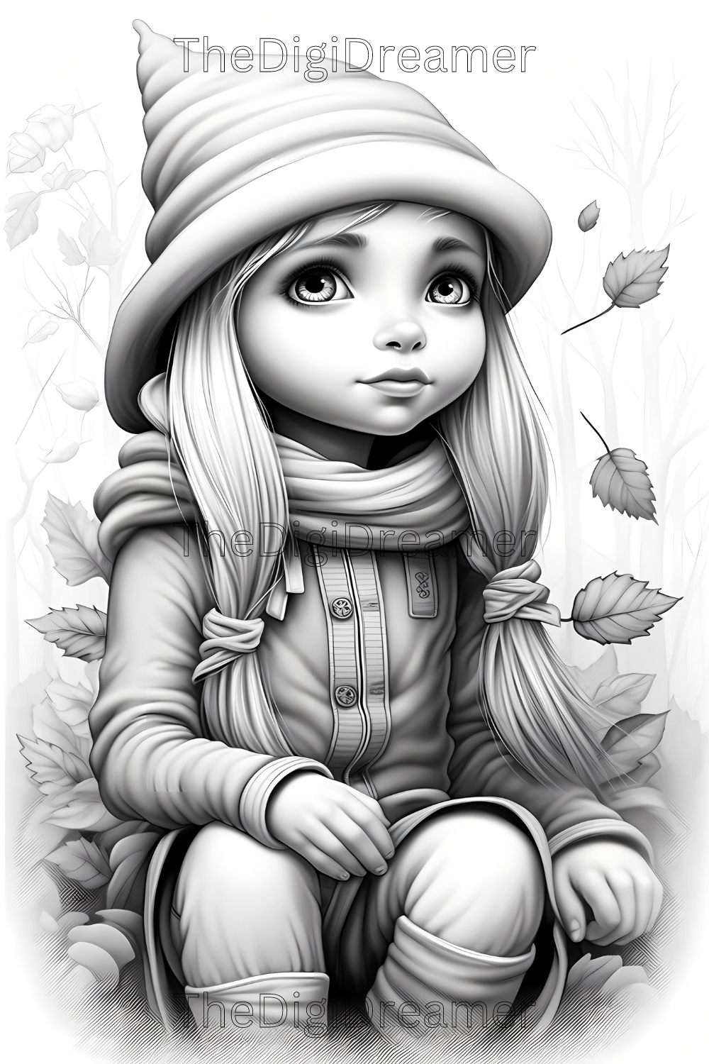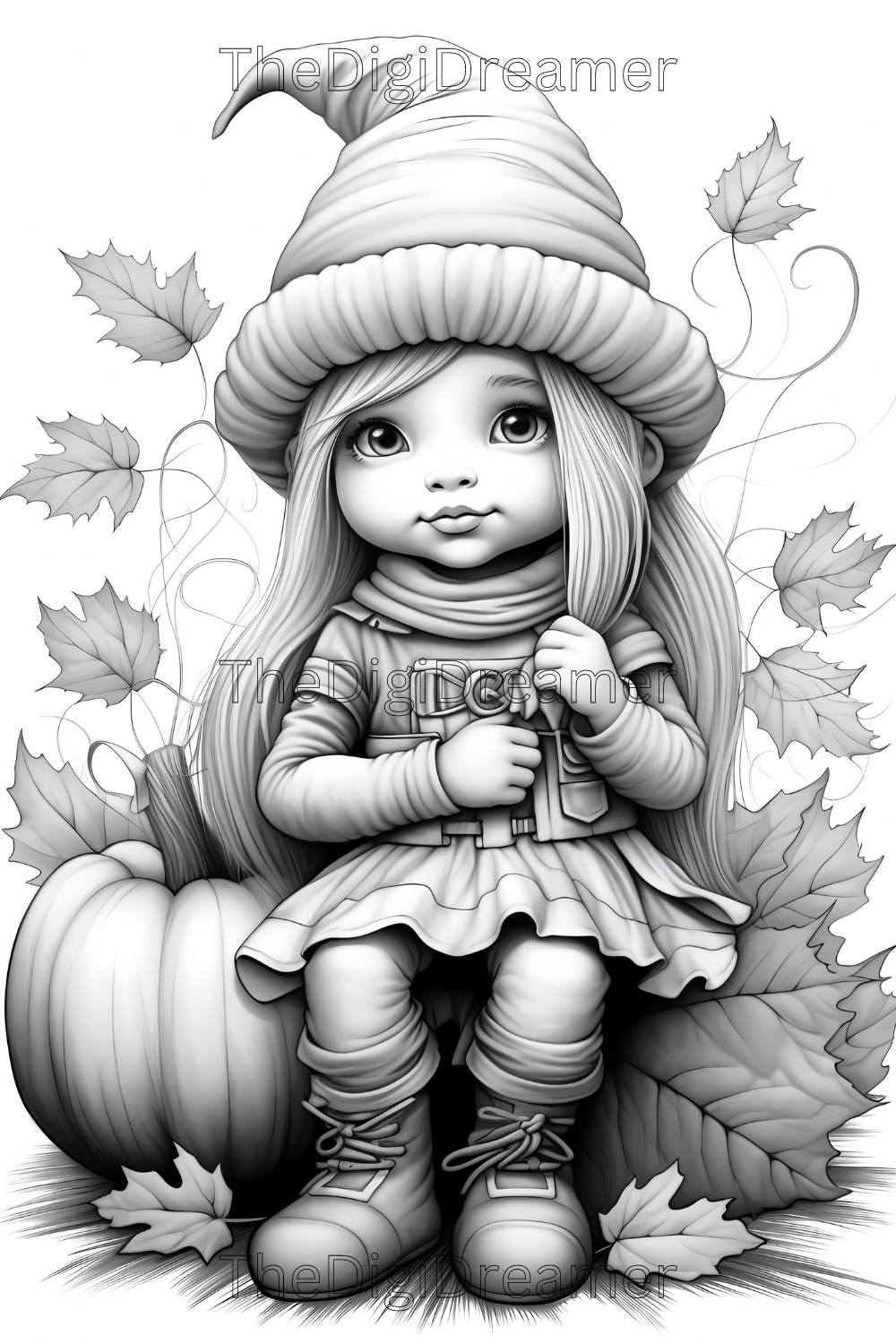 Embrace the cozy charm of autumn with our grayscale fall gnome girls coloring pages. This delightful collection showcases adorable gnomes in whimsical fall settings, perfect for both novice and experienced colorists. This coloring book includes 35 coloring pages.
