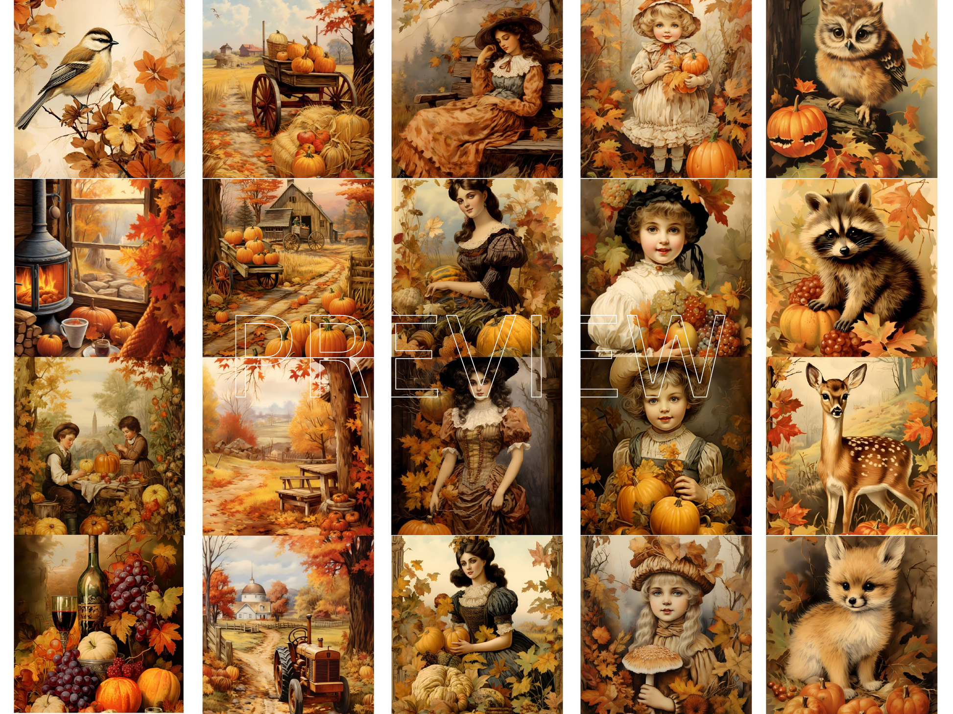 Explore our Fall Junk Journal Kit for beautifully designed journal pages, journal cards, ATC cards, etc., Get inspired by autumn's colors and create stunning seasonal crafts and scrapbooks with our handpicked collection. Perfect for crafters, scrapbookers, and DIY enthusiasts, this kit includes everything you need to craft a one-of-a-kind journal or scrapbook for the autumn season of the year.