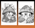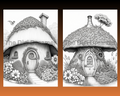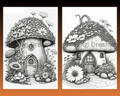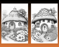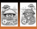 Fantasy Mushroom Hobbit Houses Grayscale Printable Coloring Pages