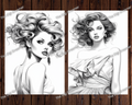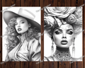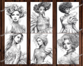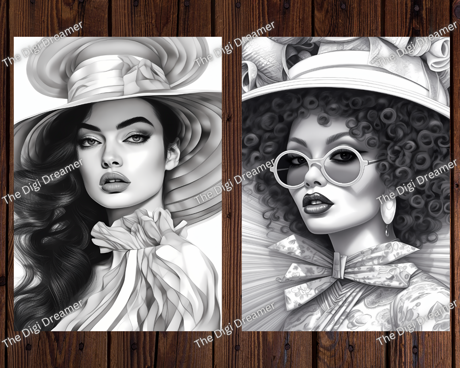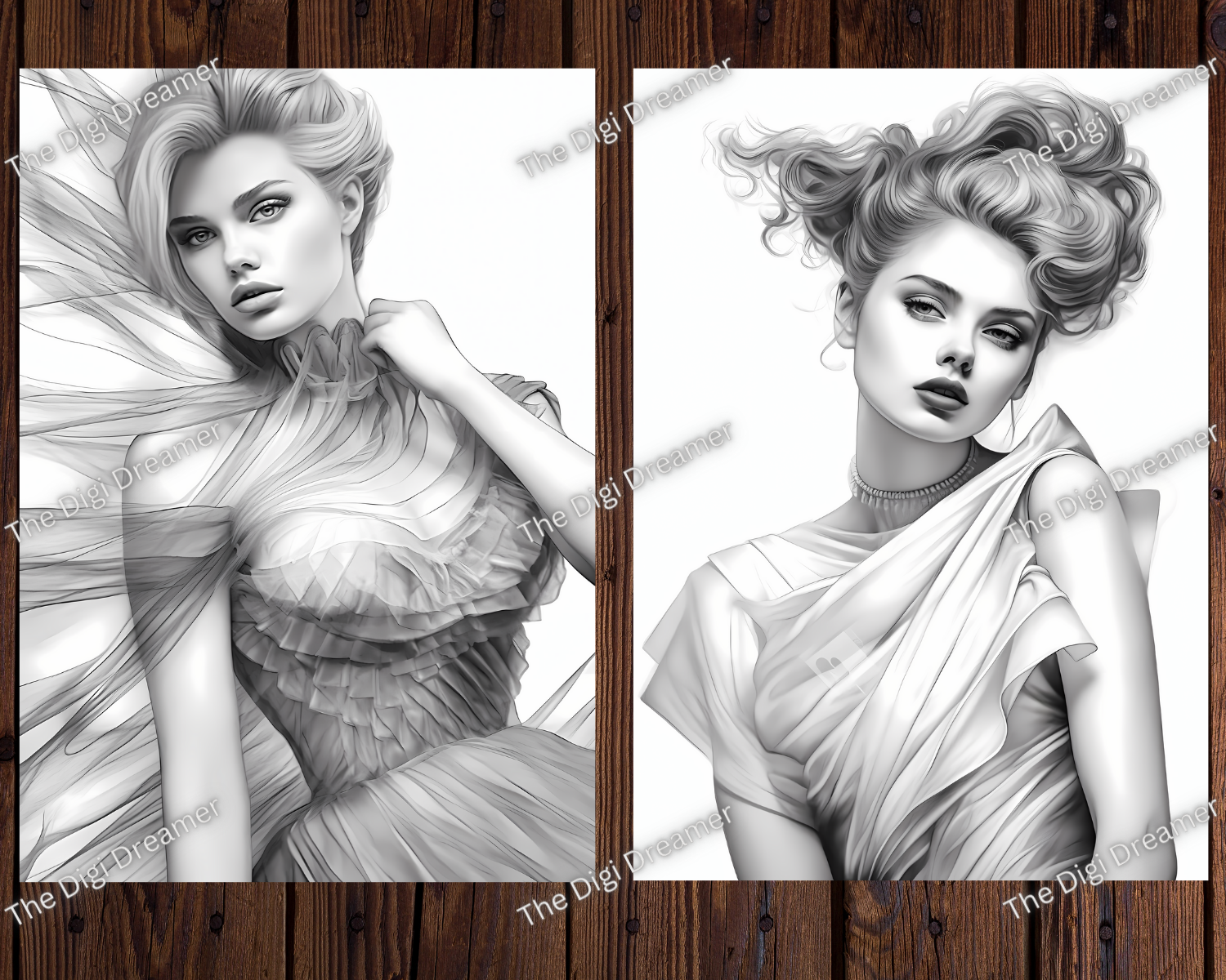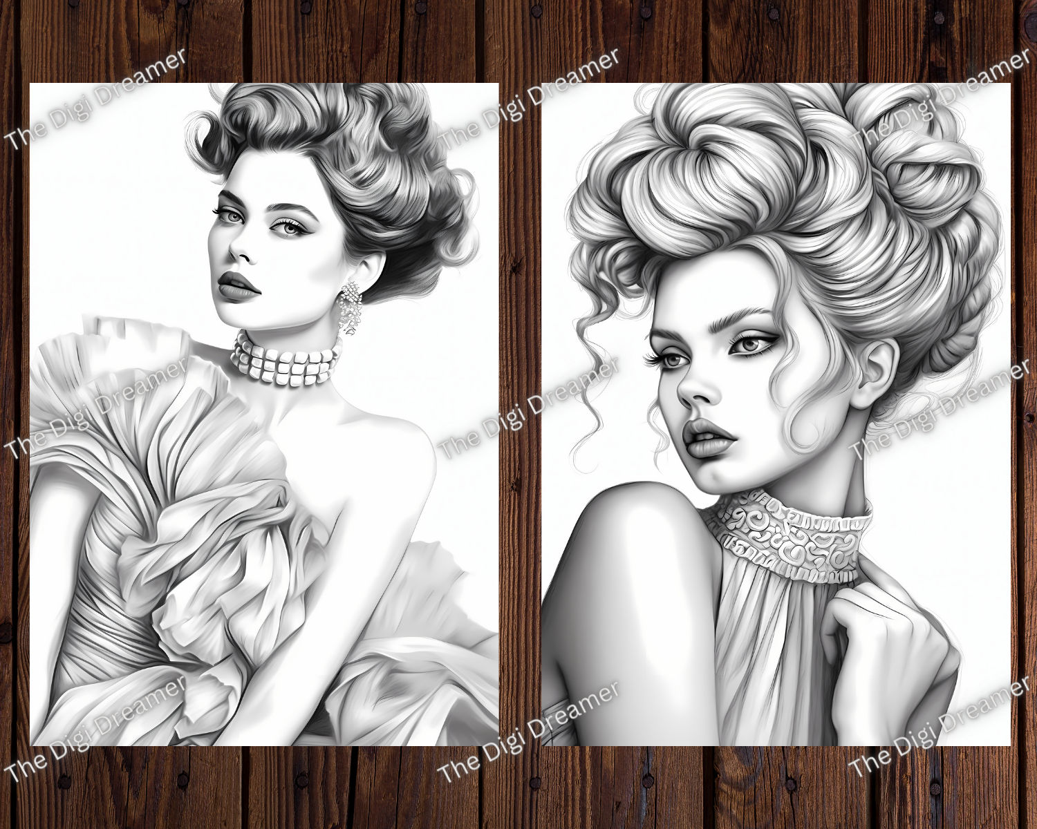 Unleash your creativity with our collection of fashionable photoshoot women grayscale coloring pages. This digital download includes a set of high-quality printable coloring pages featuring elegant women's portraits captured in a stylish and artistic grayscale format. Immerse yourself in the therapeutic process of coloring as you bring out the beauty and personality of each woman in grayscale.