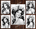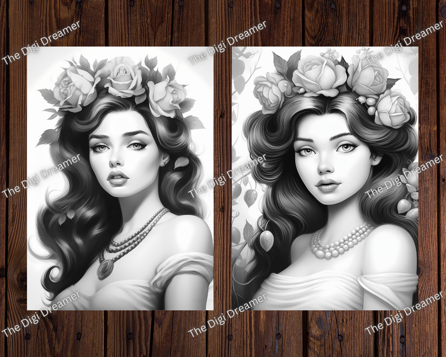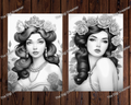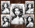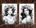 Flower Queens Grayscale Coloring Pages For Adults