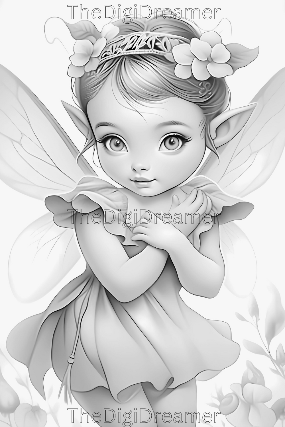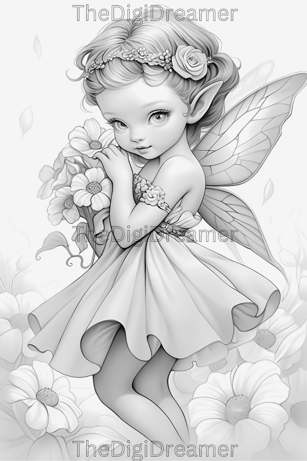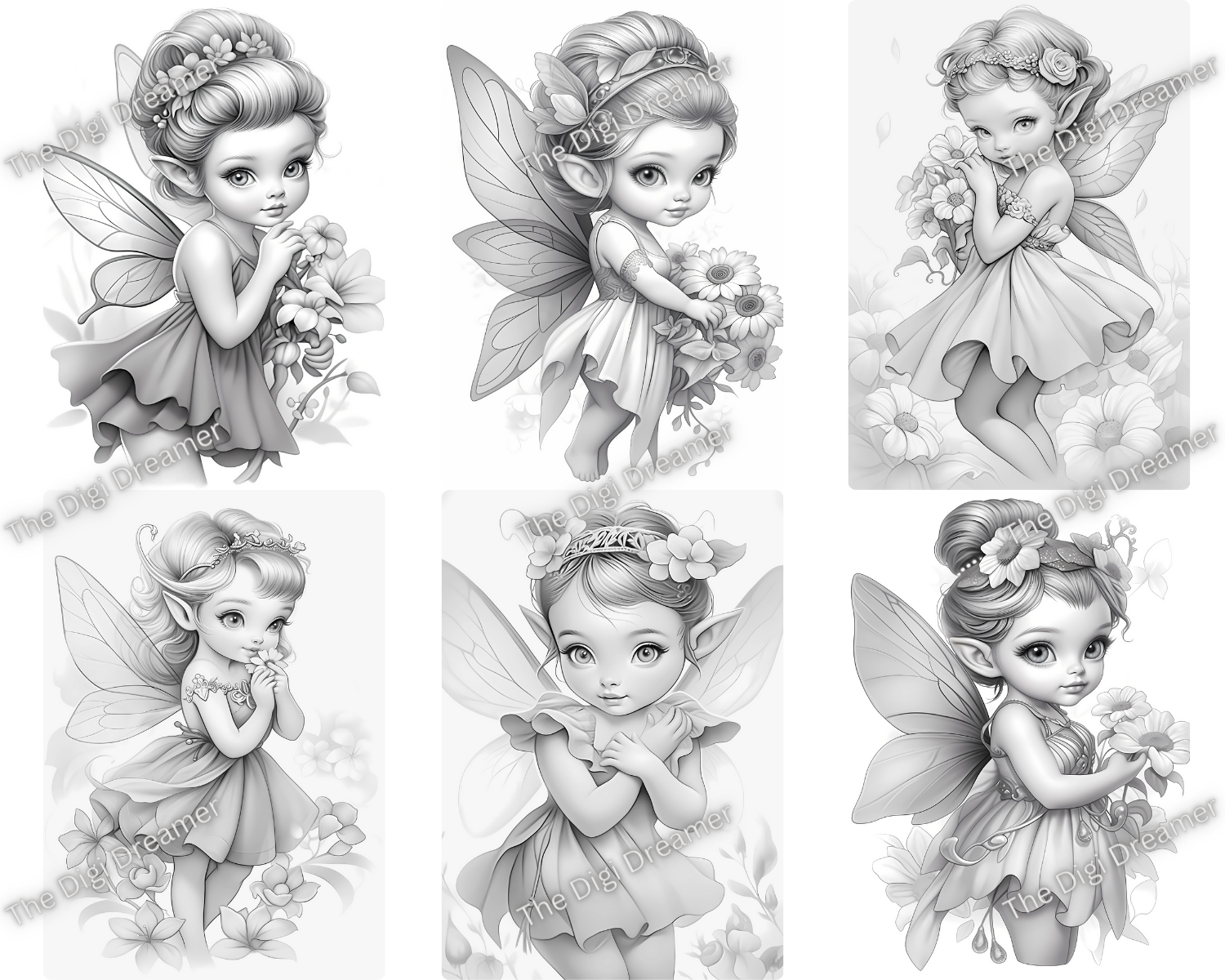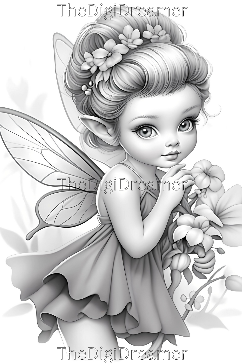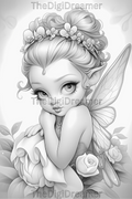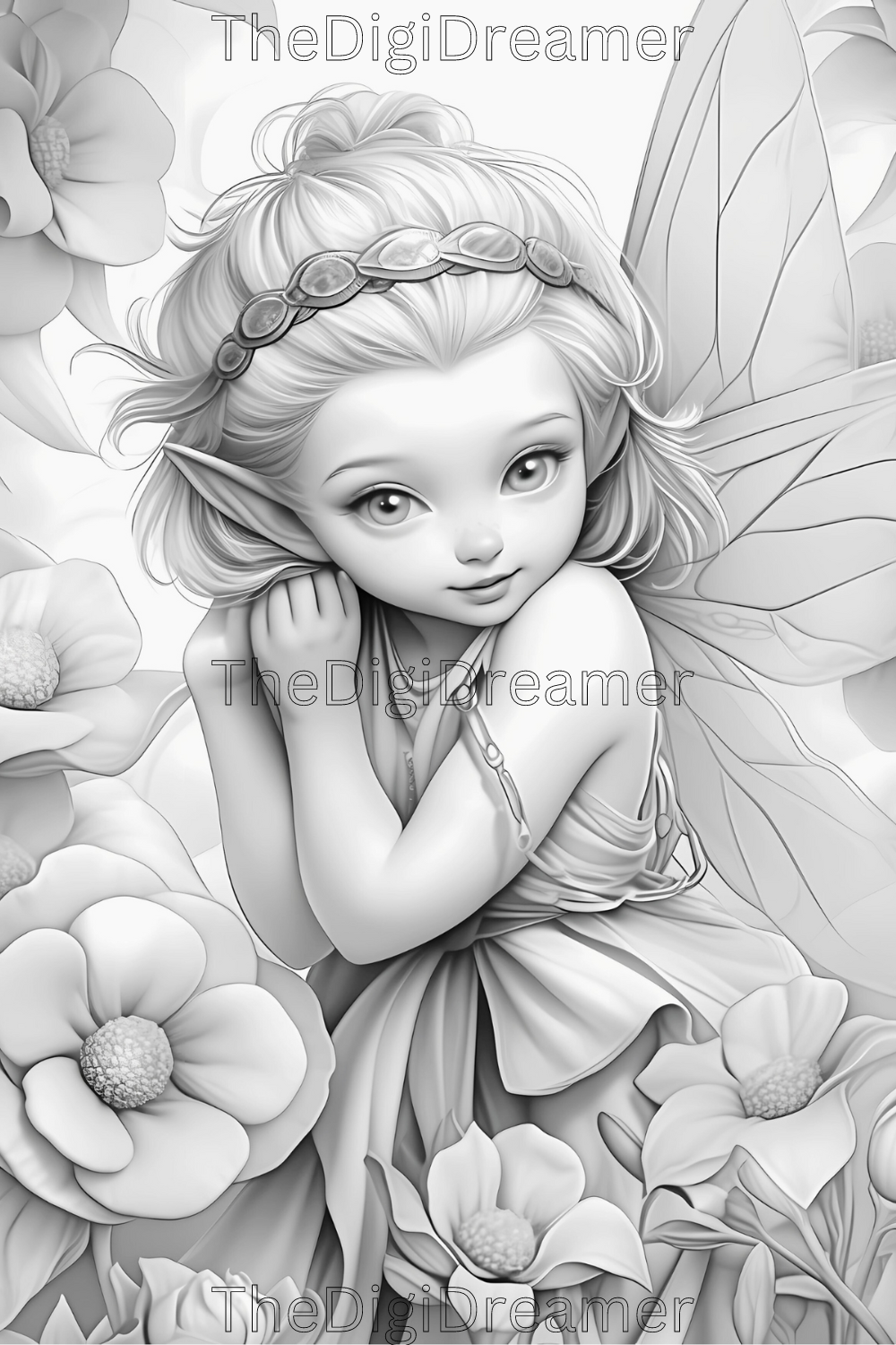 Immerse yourself in the magical world of these garden elf fairies amidst enchanting flowers. Each page is a window into a realm of fantasy and charm. Lose yourself in the calming and meditative process of grayscale coloring. Share the enchantment with friends and family by gifting them these delightful grayscale pages. Perfect for fairy enthusiasts, these pages make for a thoughtful and imaginative present.