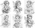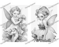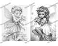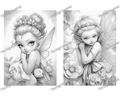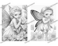 Garden Elf Fairies Grayscale Printable Coloring Pages, Digital Download